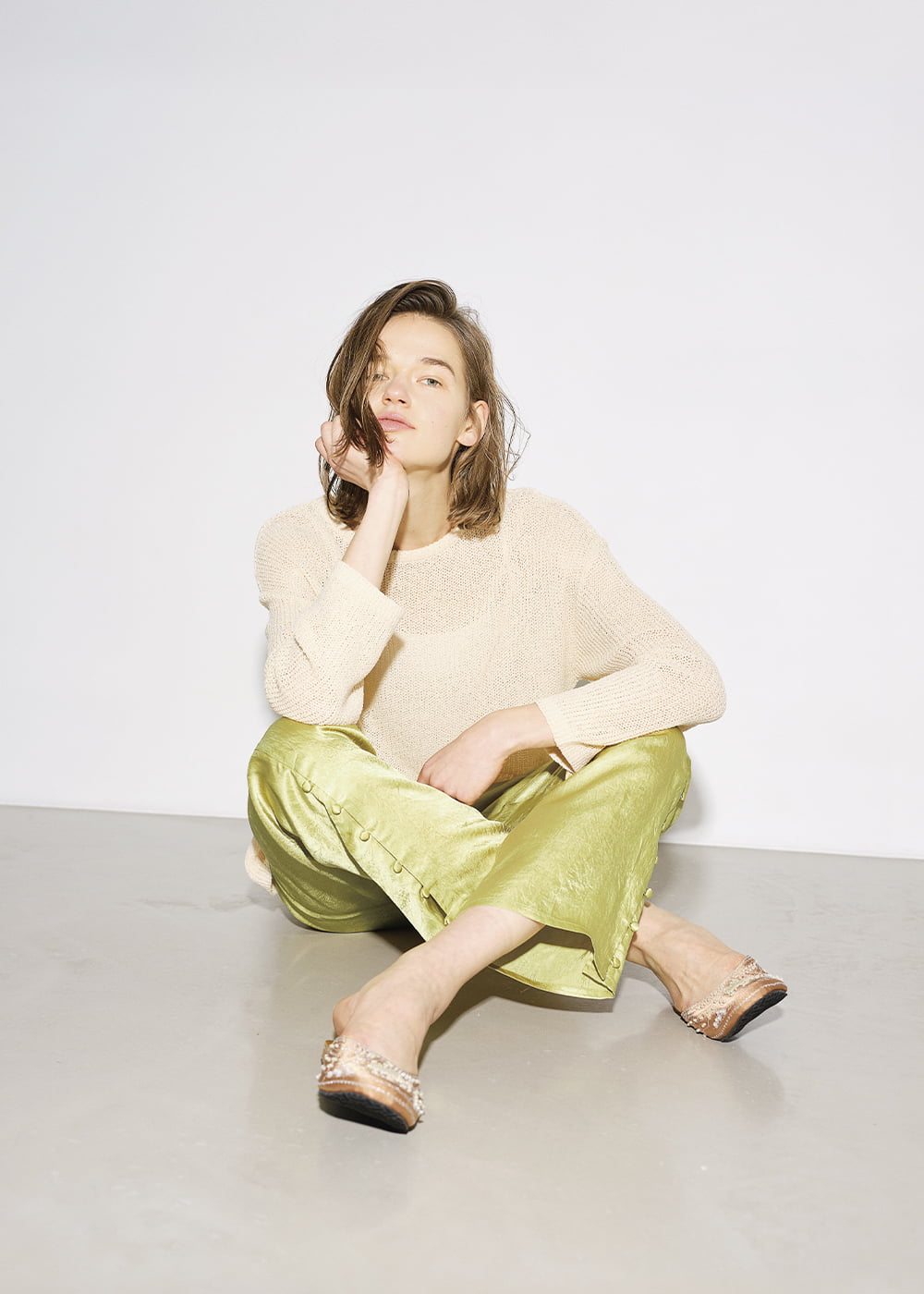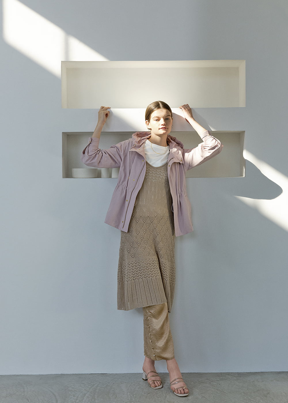 身につければ気持ちが上向く、そんなウェアを思い浮かべながら光が通り抜けるような軽やかなファブリック、やさしい印象のペールカラーを中心に展開。
