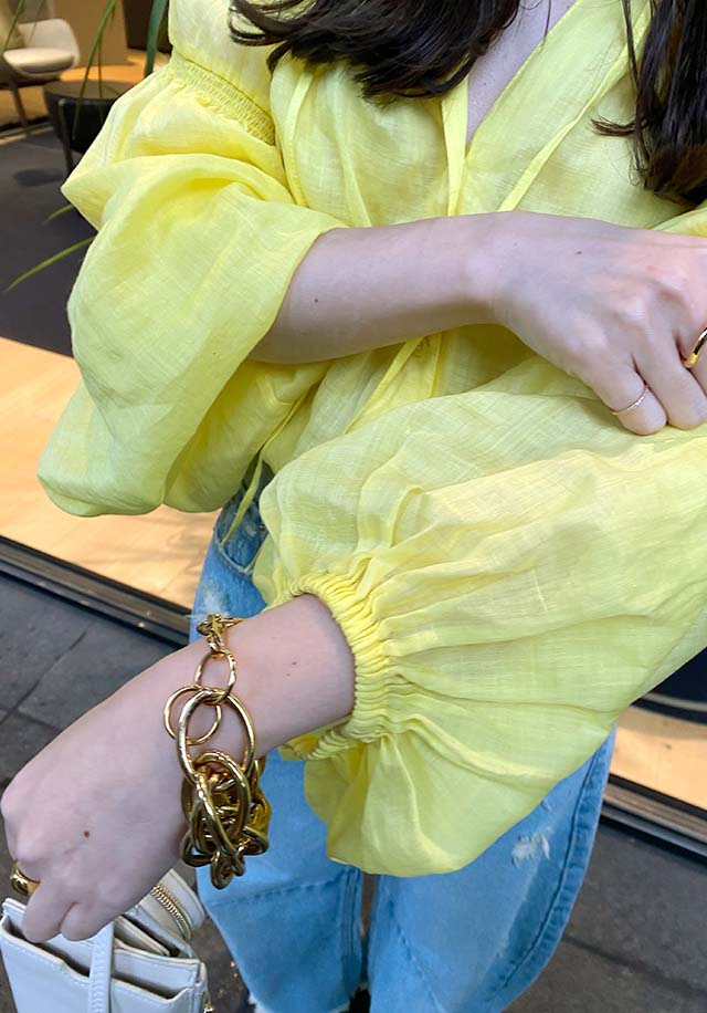 袖口のゴム仕様と、袖に施されたギャザーで程よいボリューム袖に◎