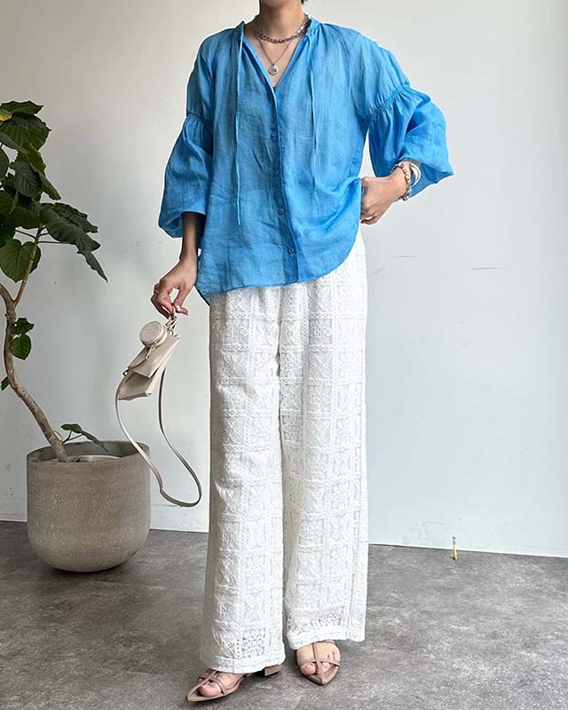甘すぎず、カジュアル過ぎないオトナブラウス。 ストレスフリーな軽い着心地で、羽織りいらずで夏まで活躍!!