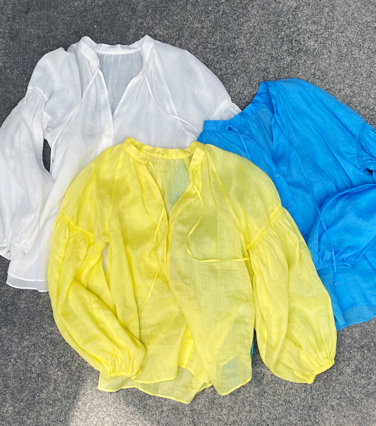 イエローの他にも、オフホワイトとブルーをご用意