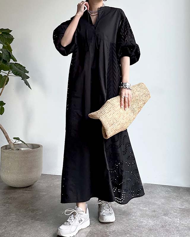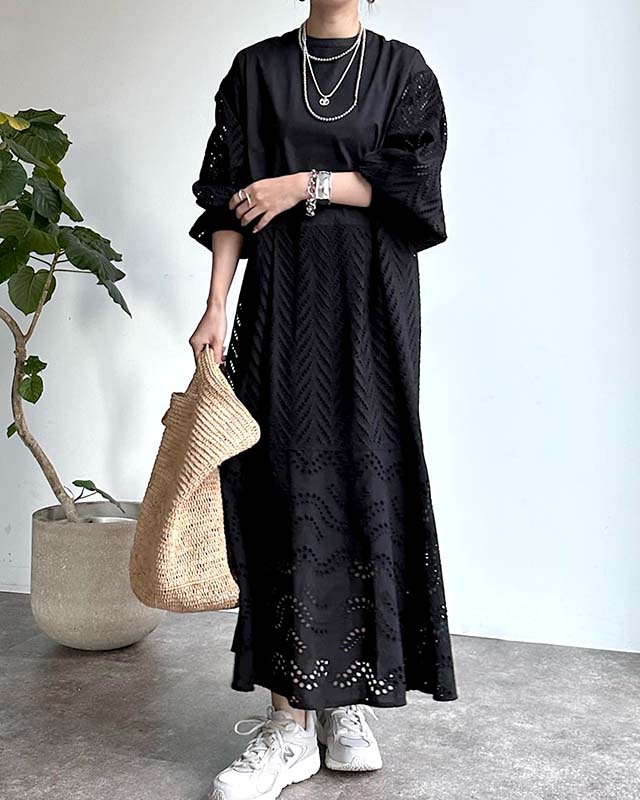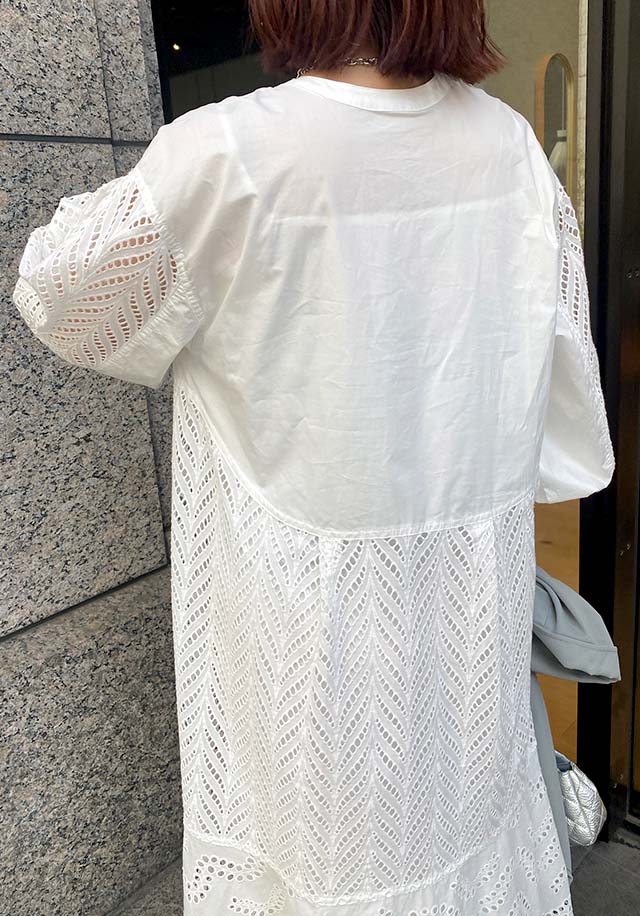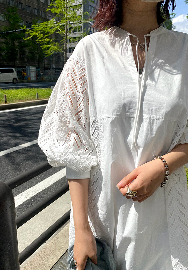 お袖レースの切替袖口はゴム仕様で捲し上げやすい◎