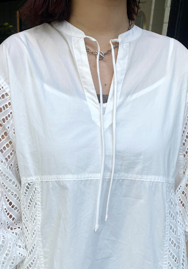 スキッパーデザインで首元シャープな印象バックスタイルの切替
