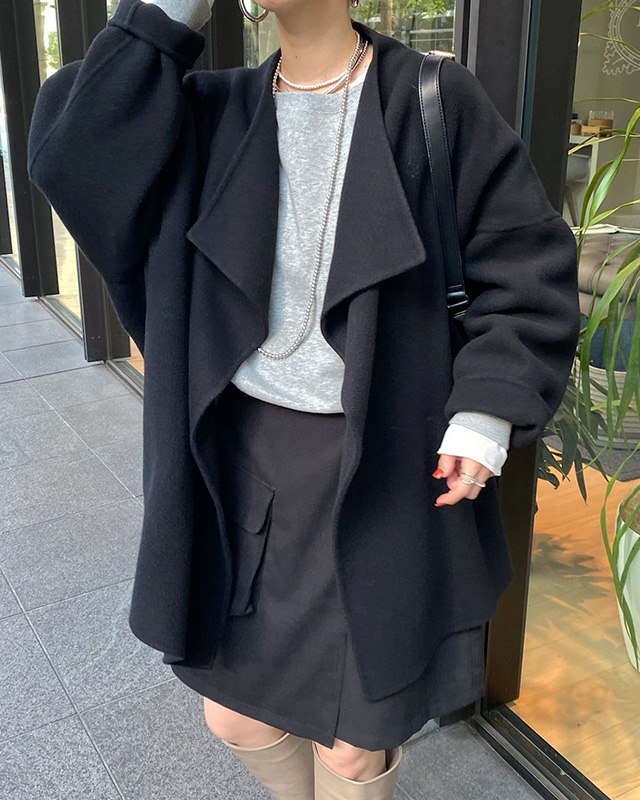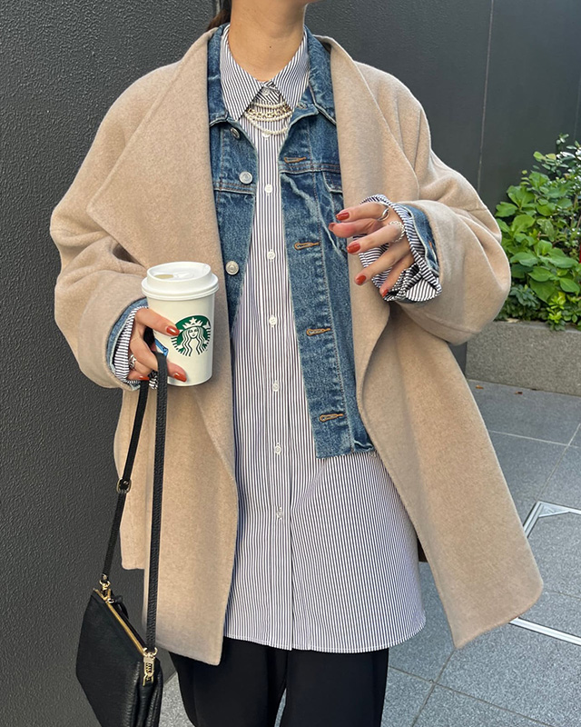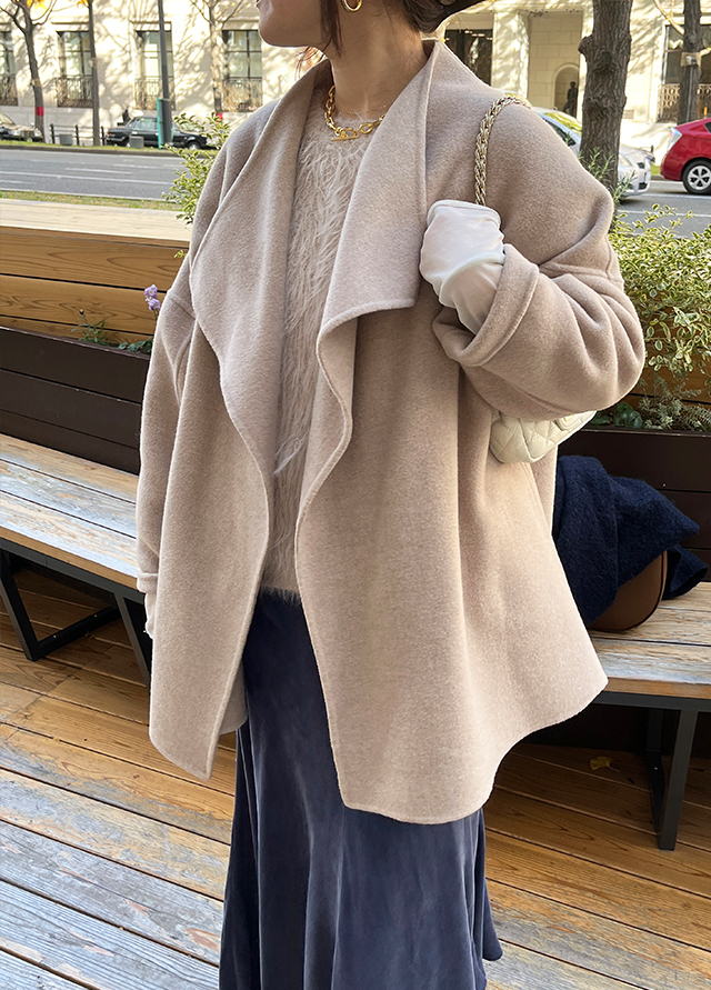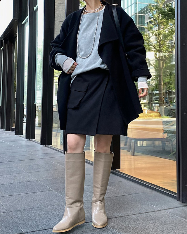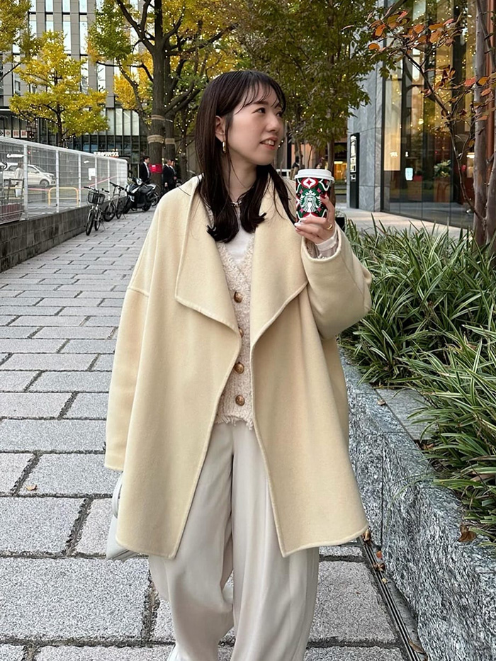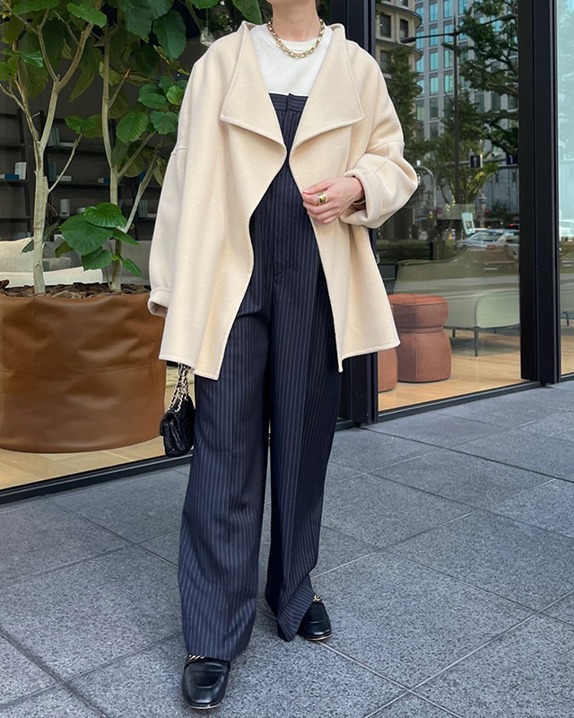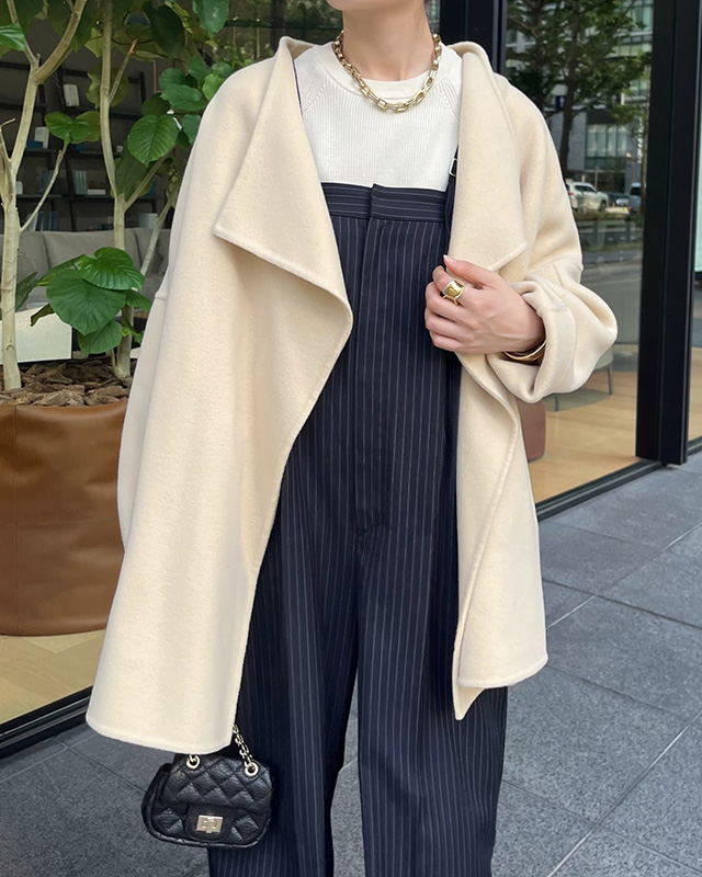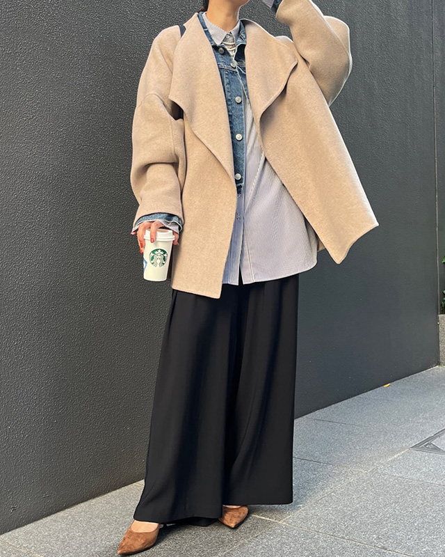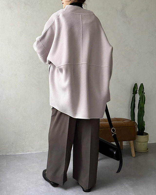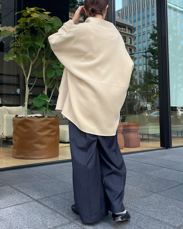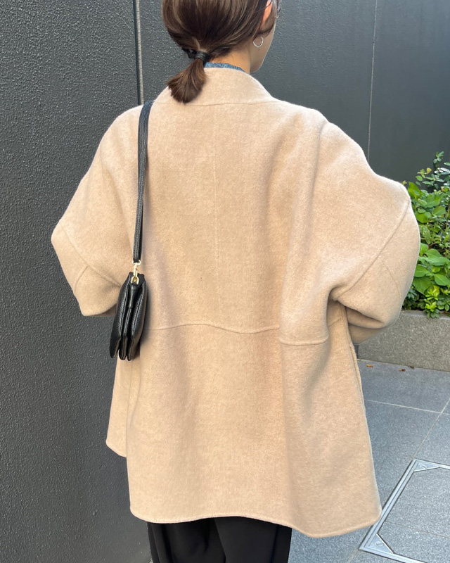 立体感のでるシルエットに仕上げているので、どの角度から見ても抜かりない印象。 身幅も広く、でもごわつかないため、厚手のニットと合わせた真冬コーデにもぴったりです。