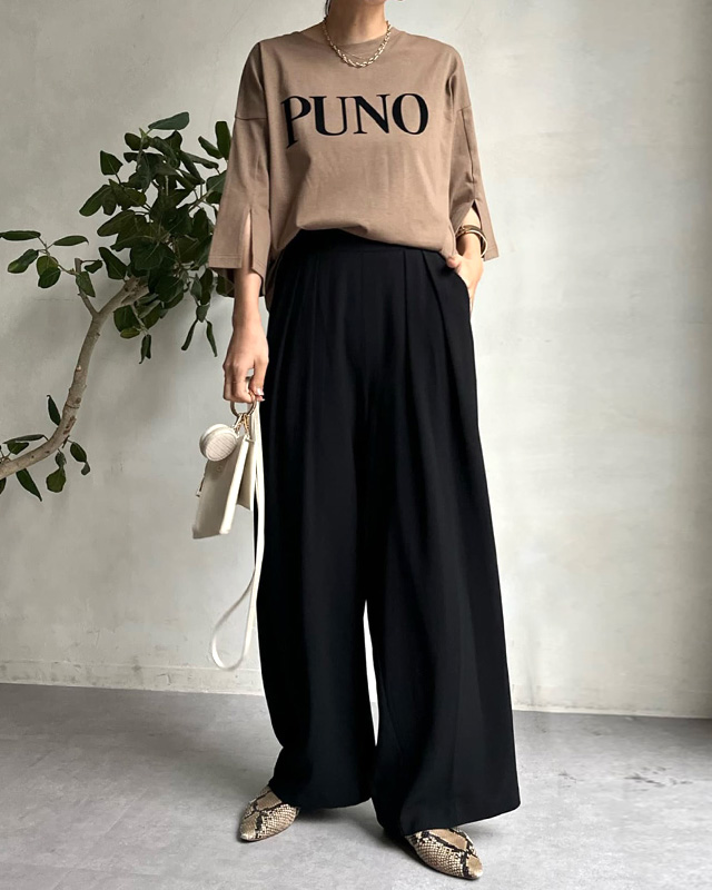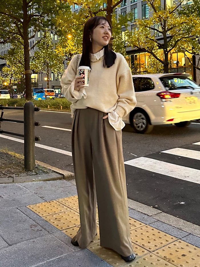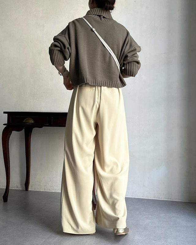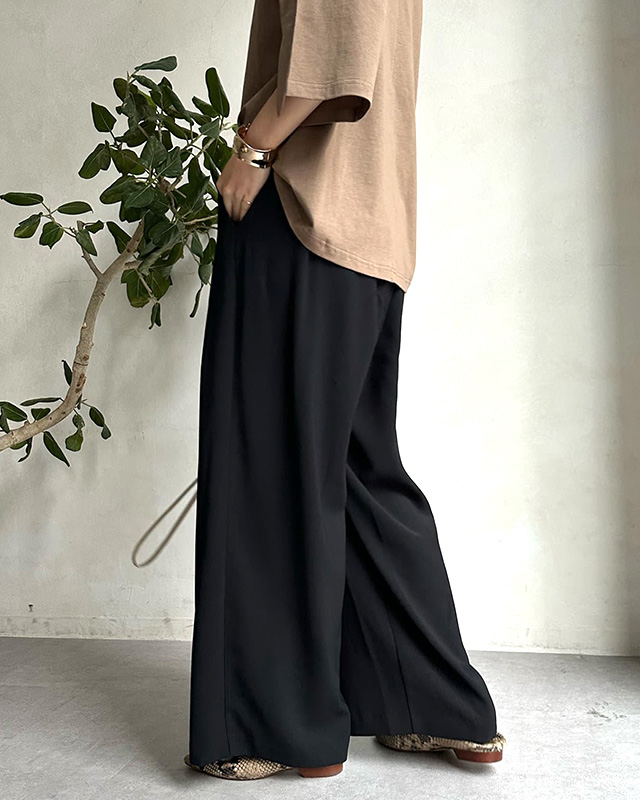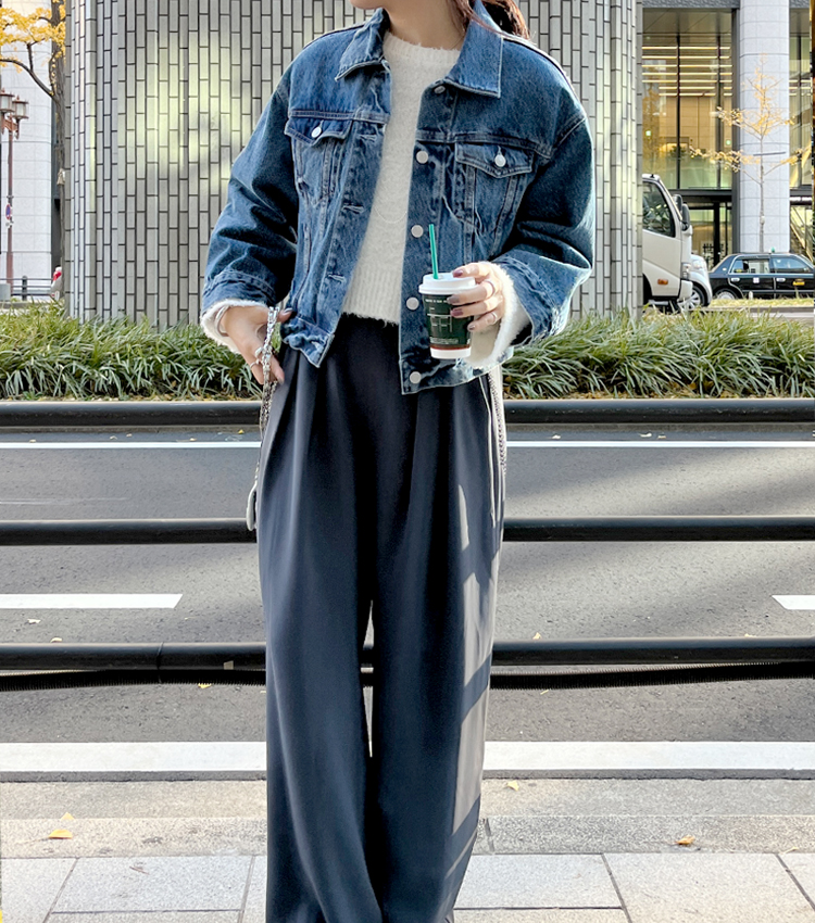 ワイドシルエットながらも細見えしてくれるので、様々な着こなしにフィット。