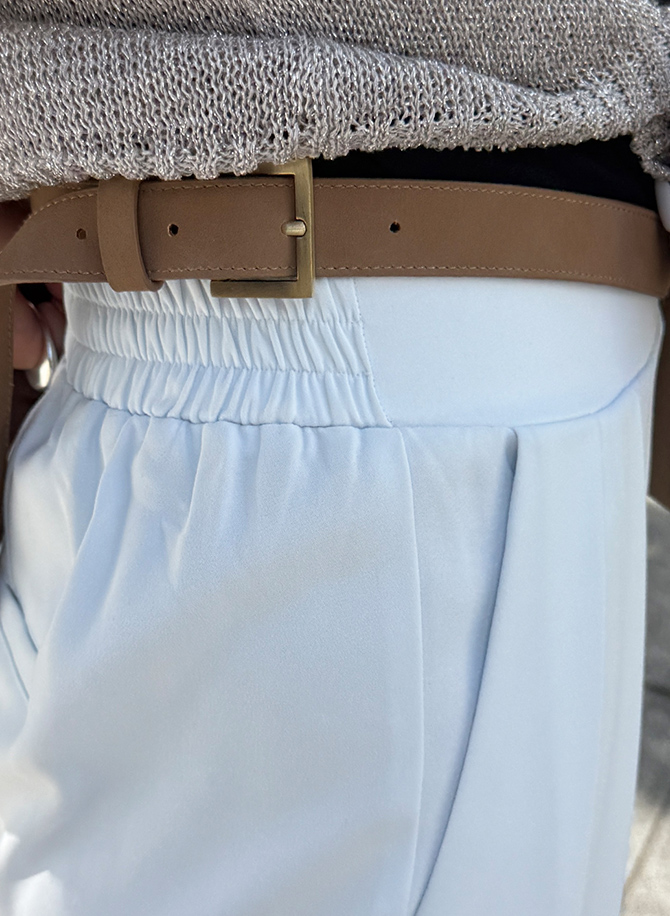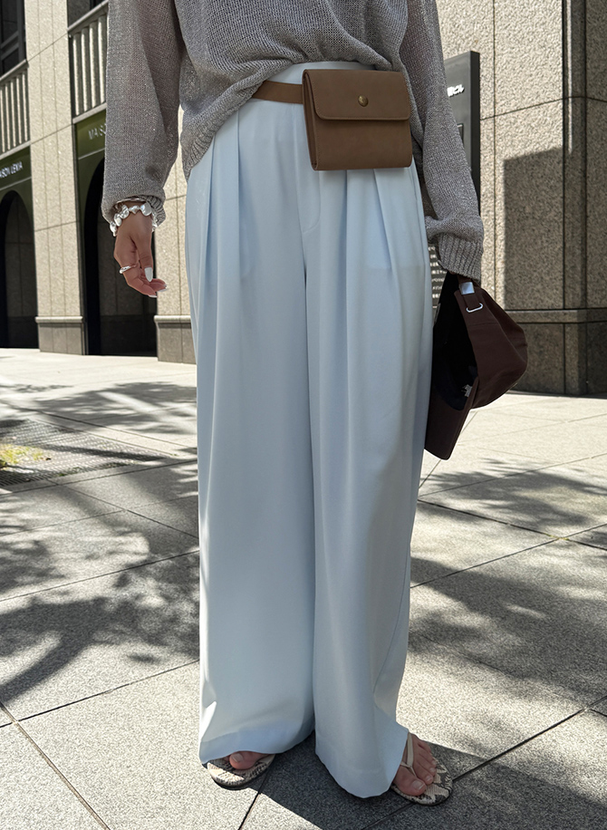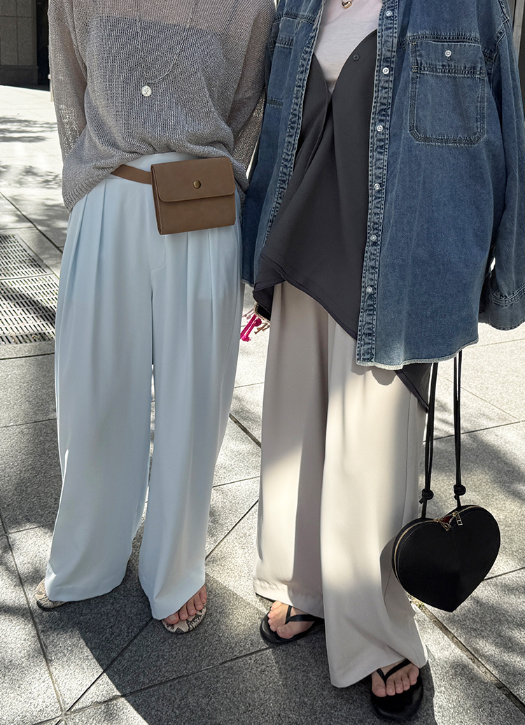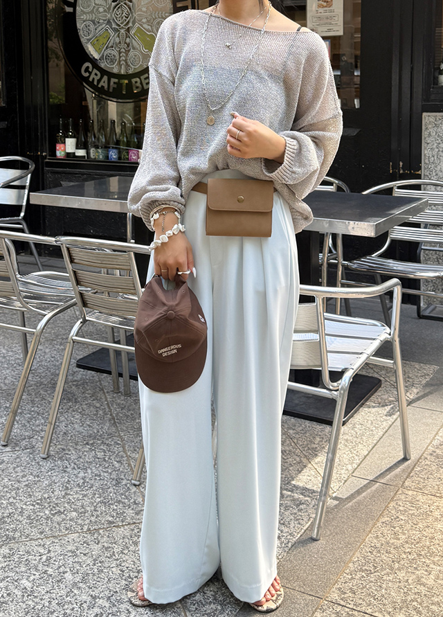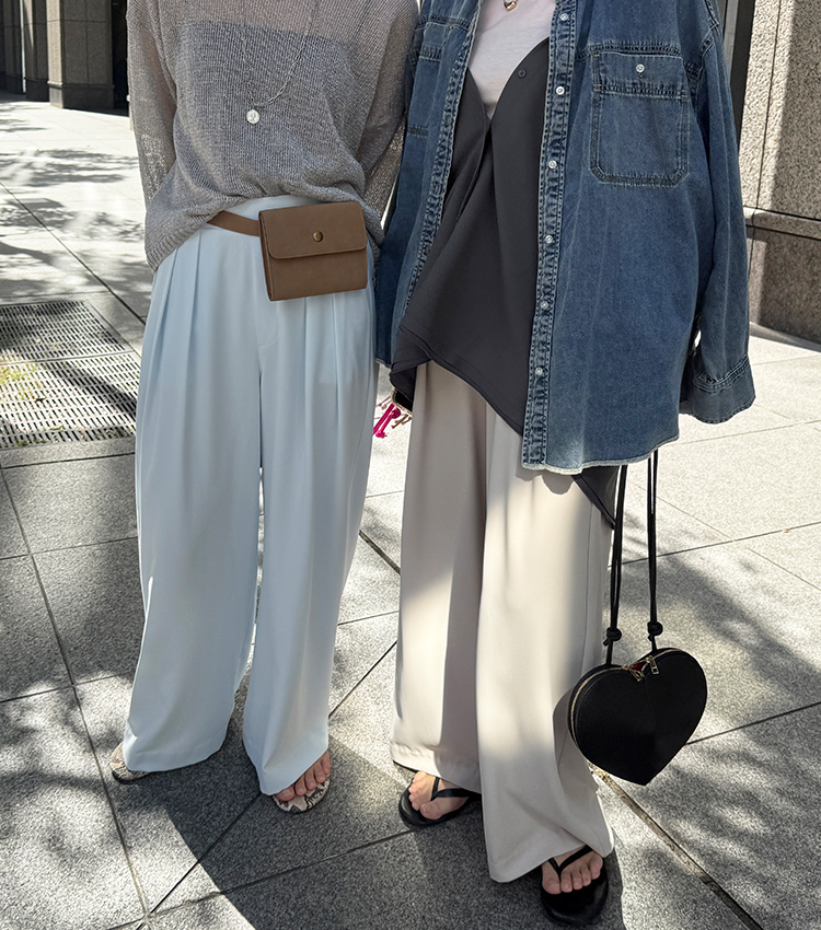 DOUDOUのロングセラーアイテムである、タックワイドパンツ。