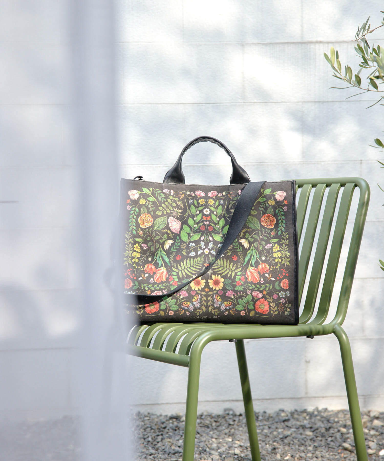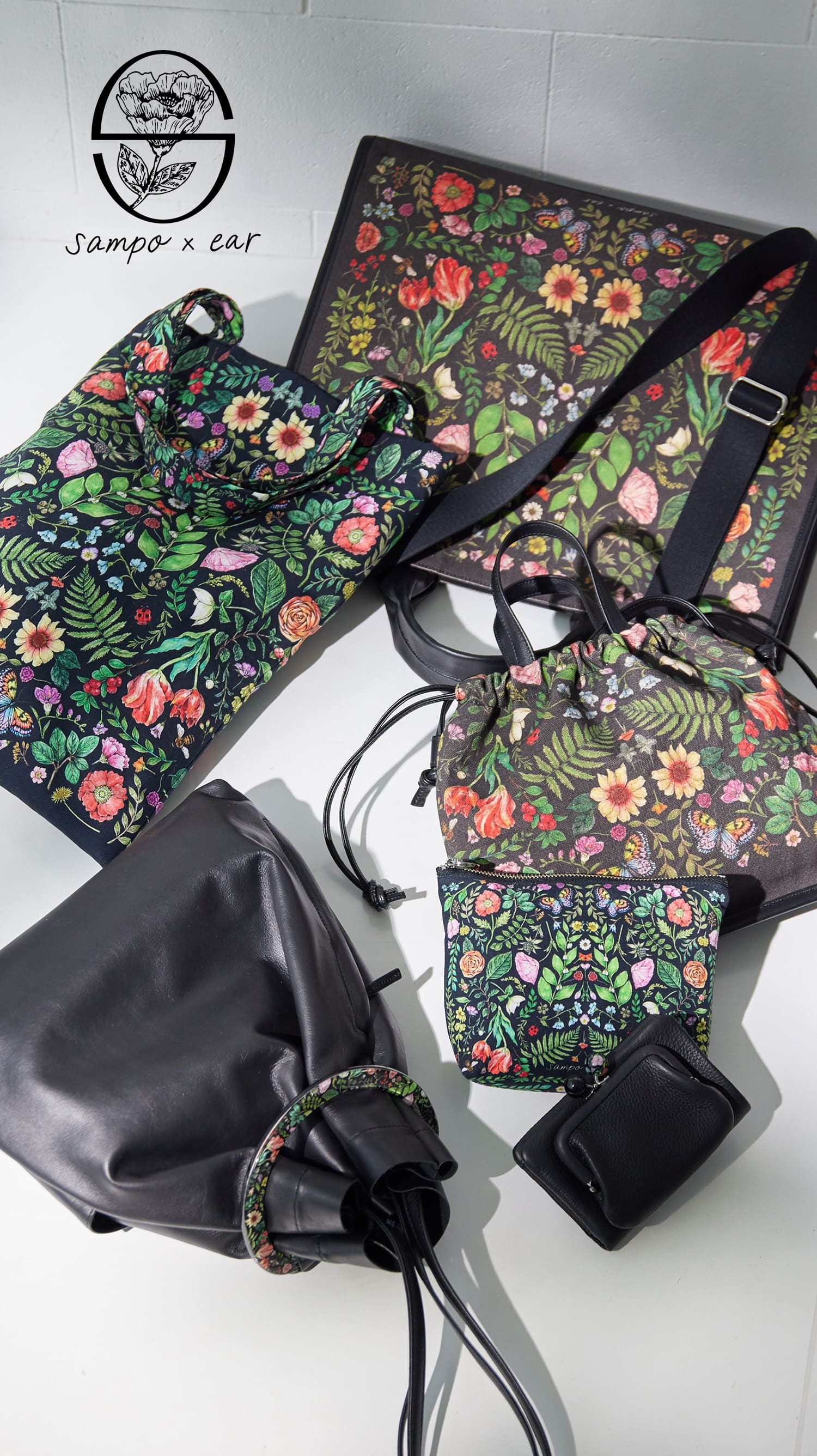 earではこれからの季節にぴったりな花柄や植物、自然をモチーフにした柄をセレクト。バッグやレインコートなどに落とし込みました。