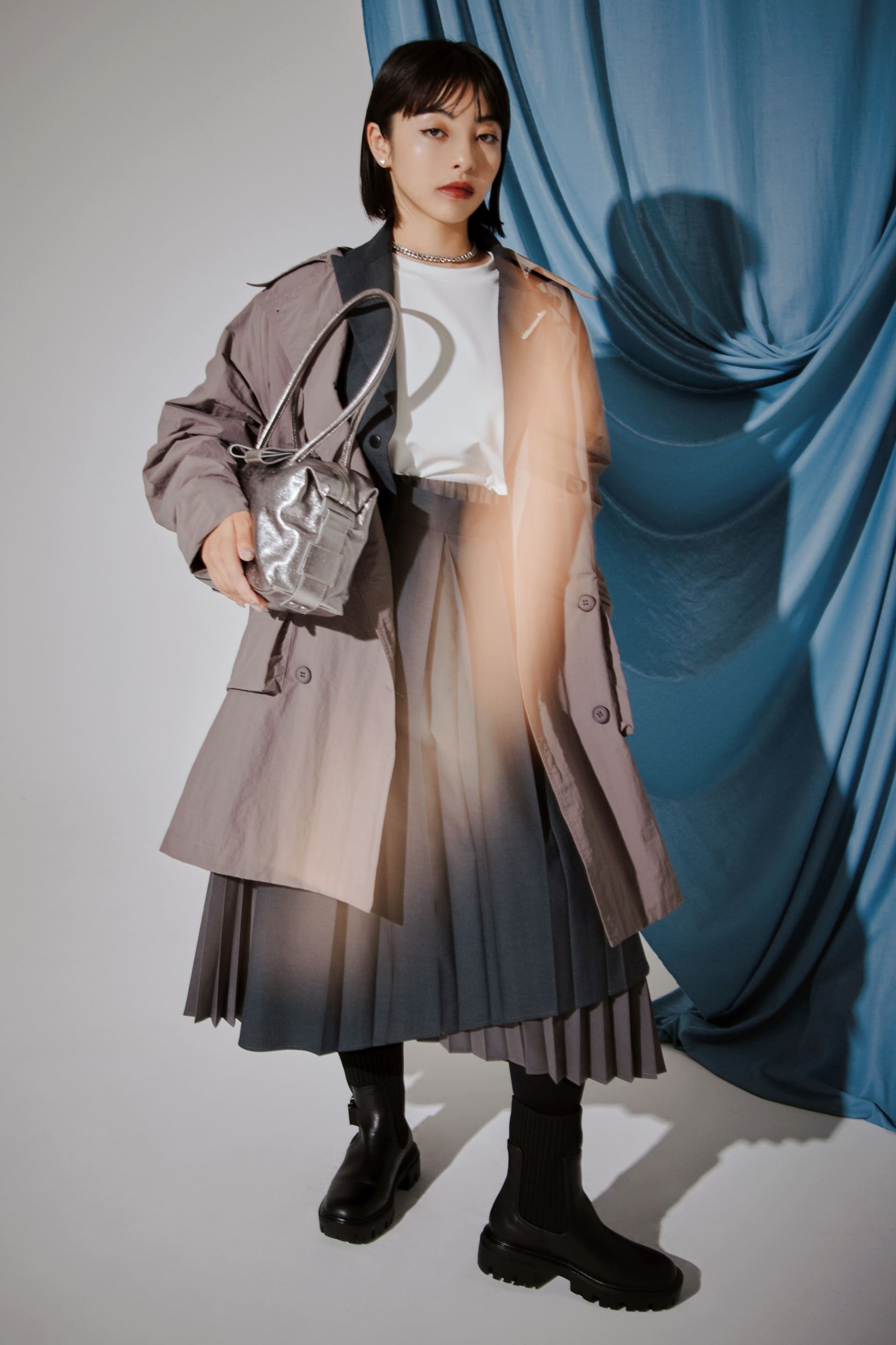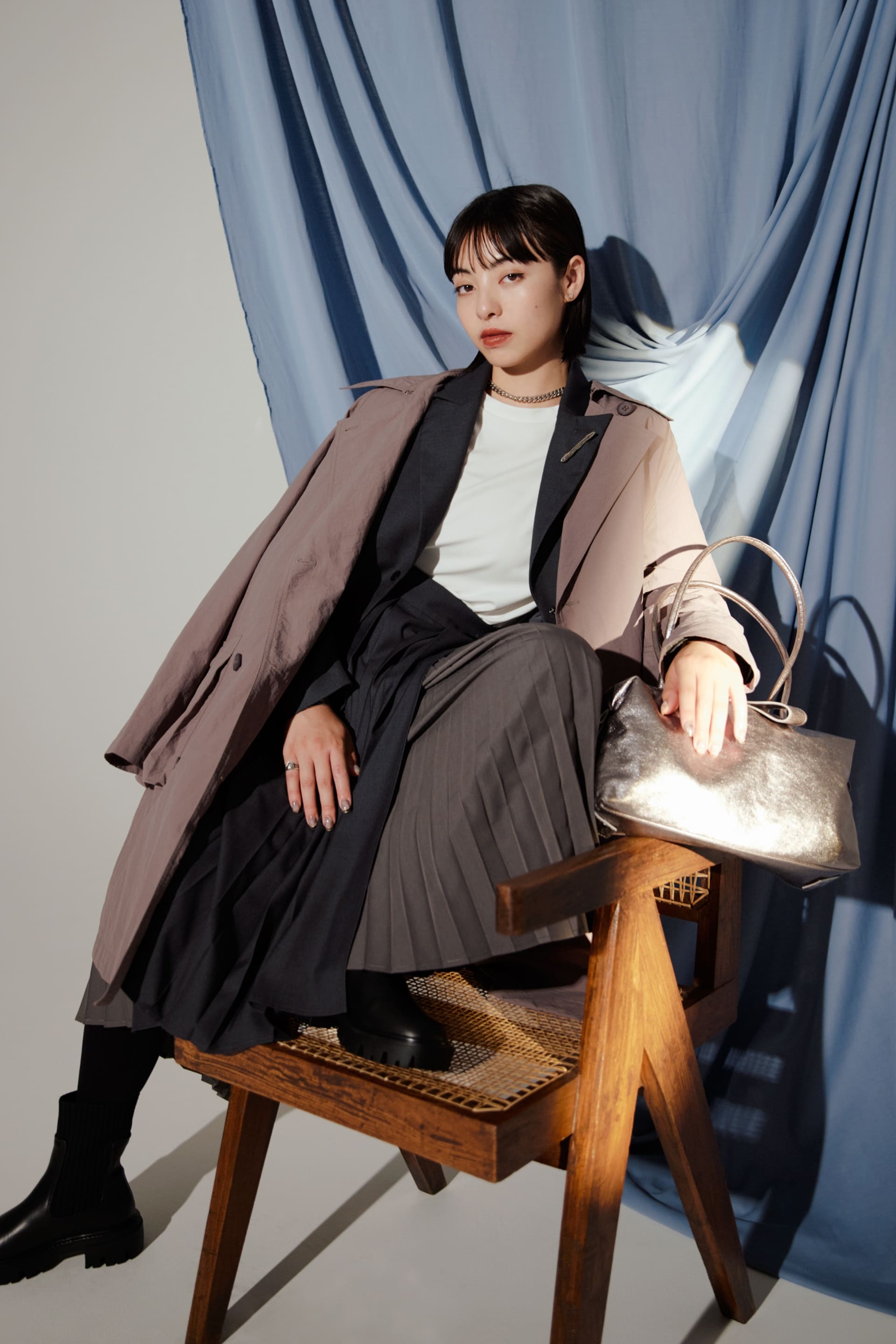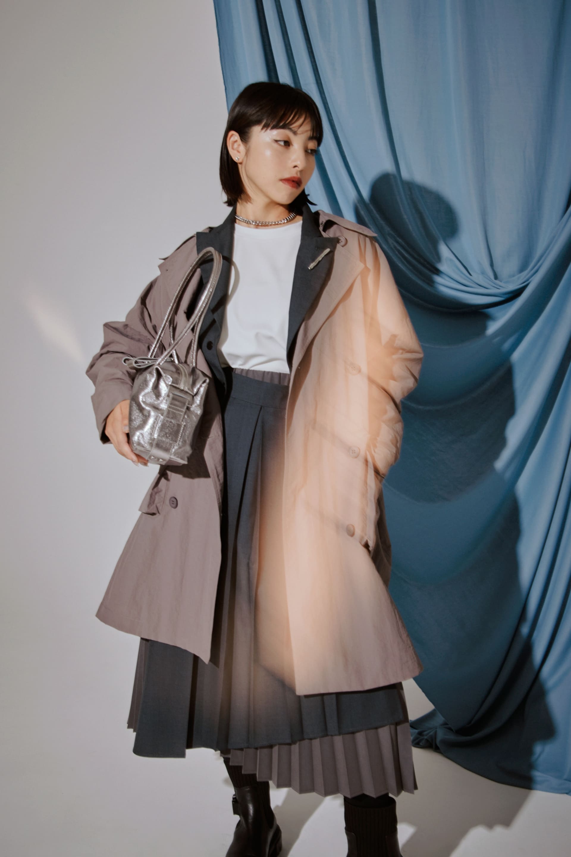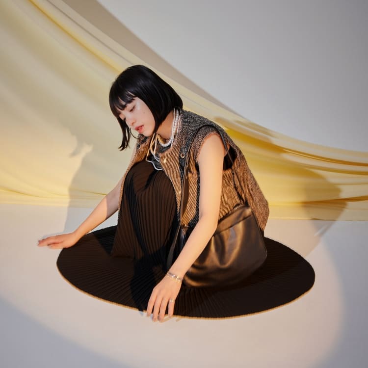 異なる表情のプリーツを組み合わせたことによって生まれる揺れ感が魅力です。