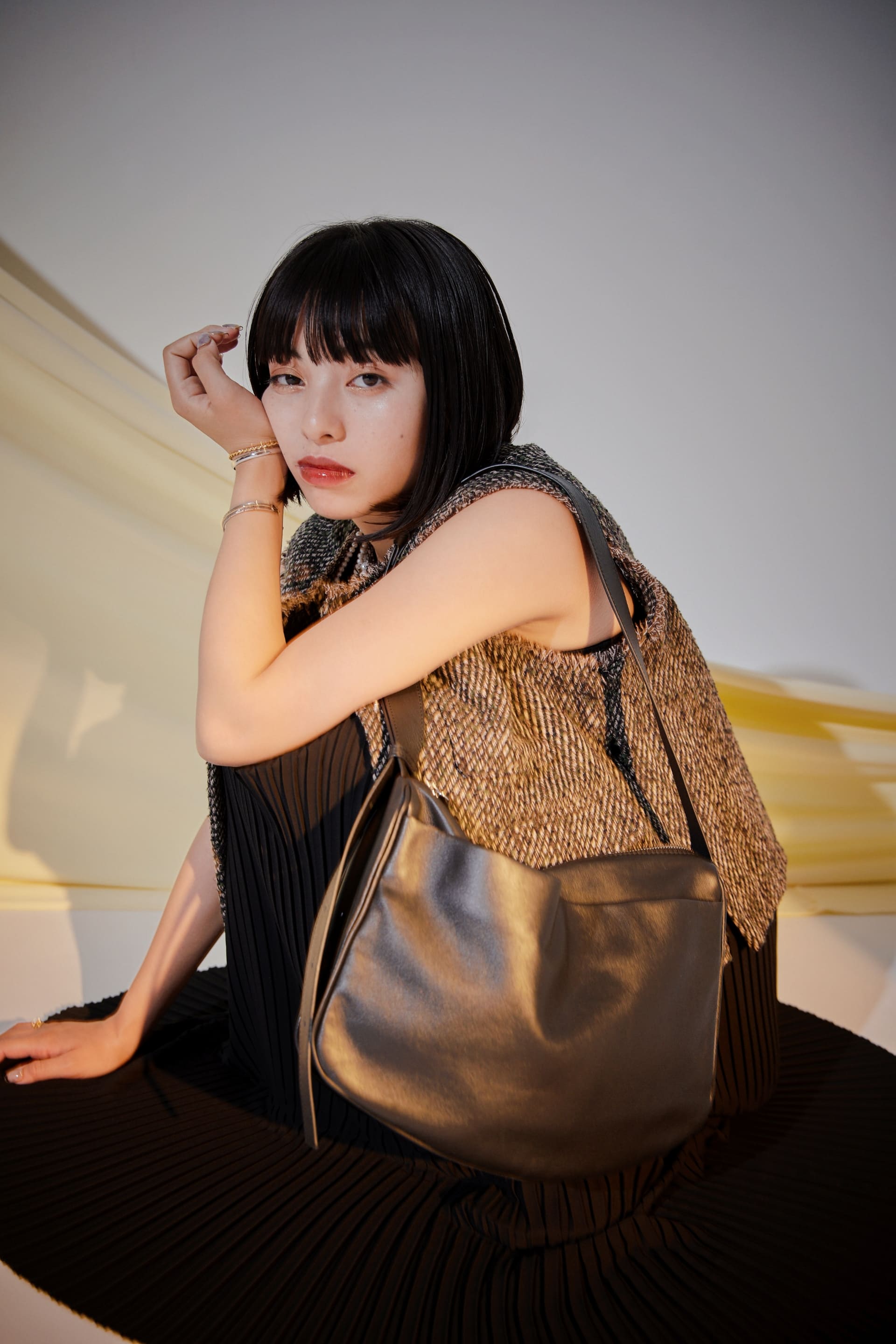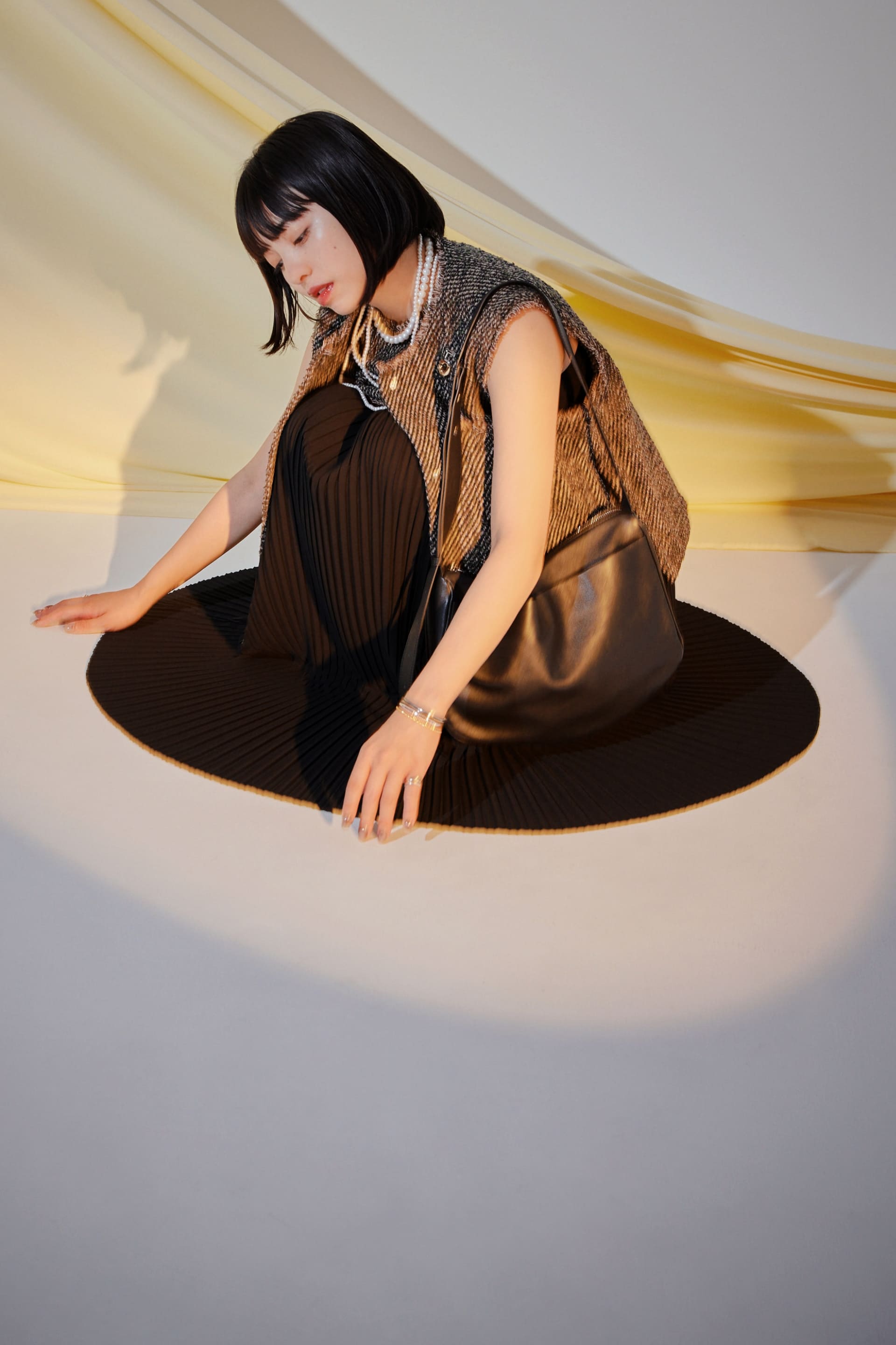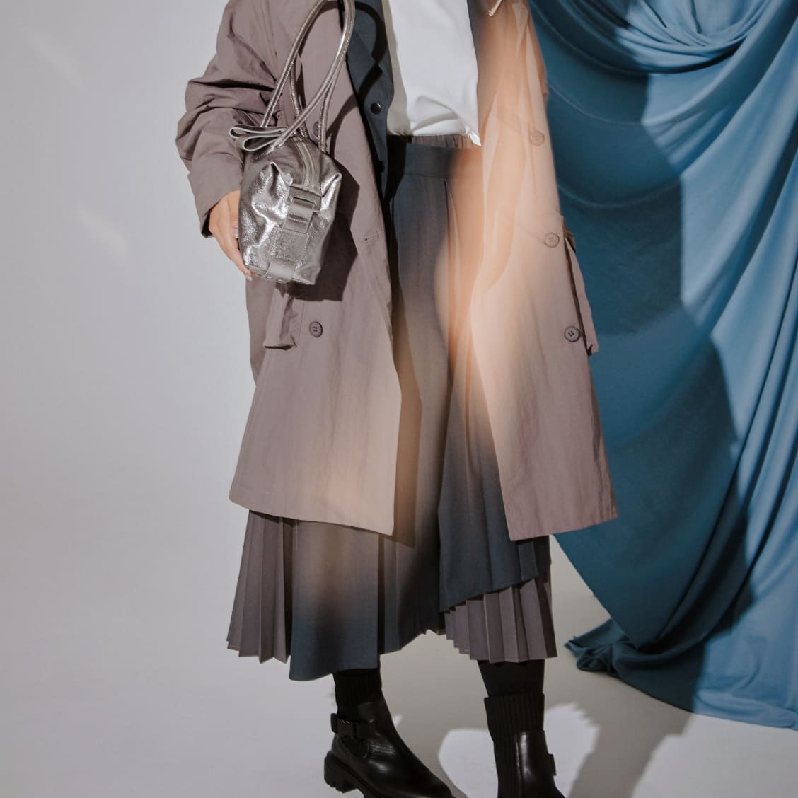 異なる表情のプリーツを組み合わせたことによって生まれる揺れ感が魅力です。