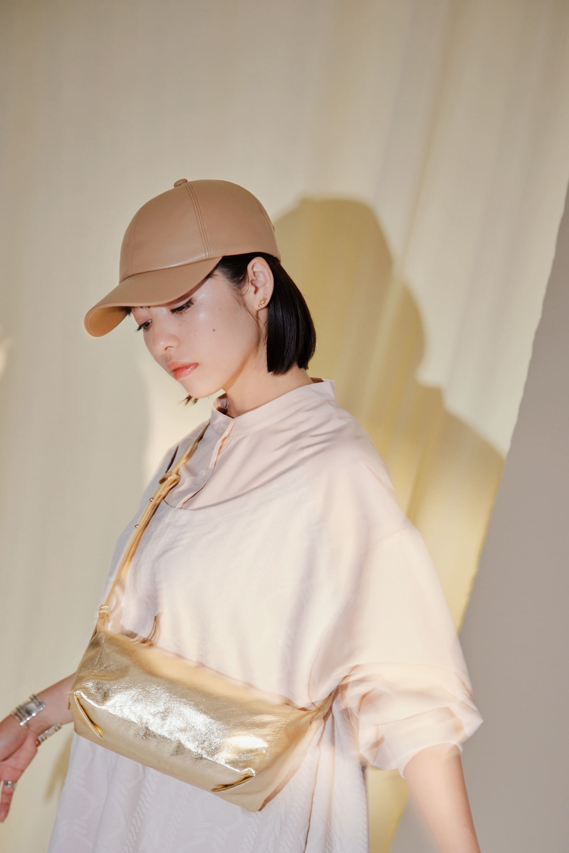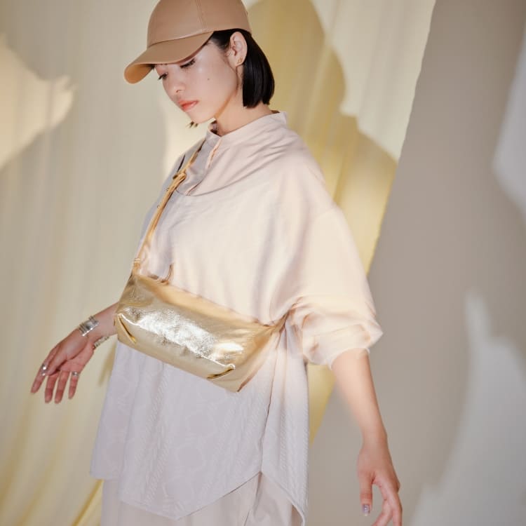 ハリ感と柔らかさを兼ね備えた光沢感のあるゴートレザーを使用したミニマルなショルダーバッグ。 調節可能でありながら金具の使用を極力抑えたショルダーベルトでより洗練された印象に。