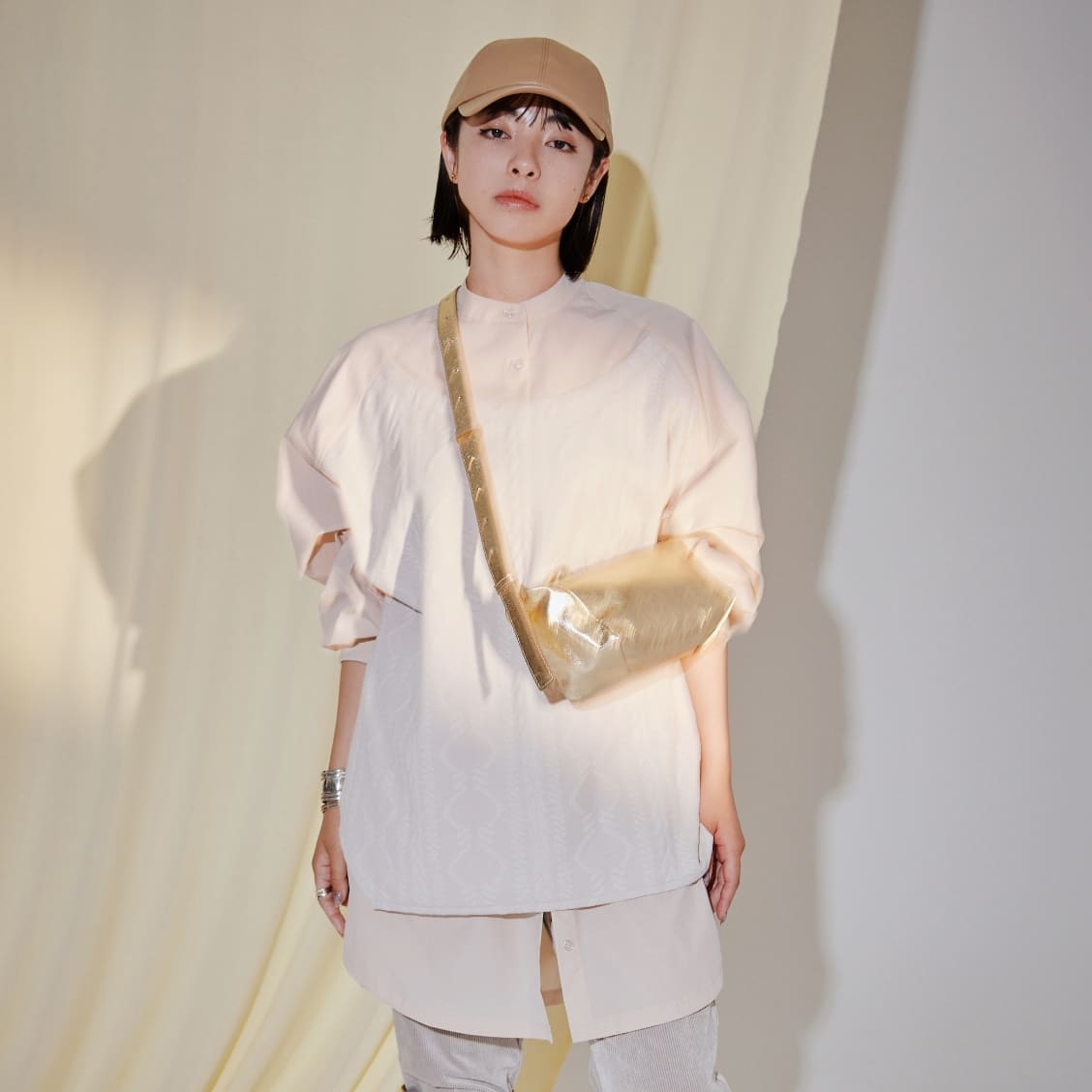 ドロップショルダー、ゆったりしたサイズ感、広めの袖口でストレスフリーな着心地。
