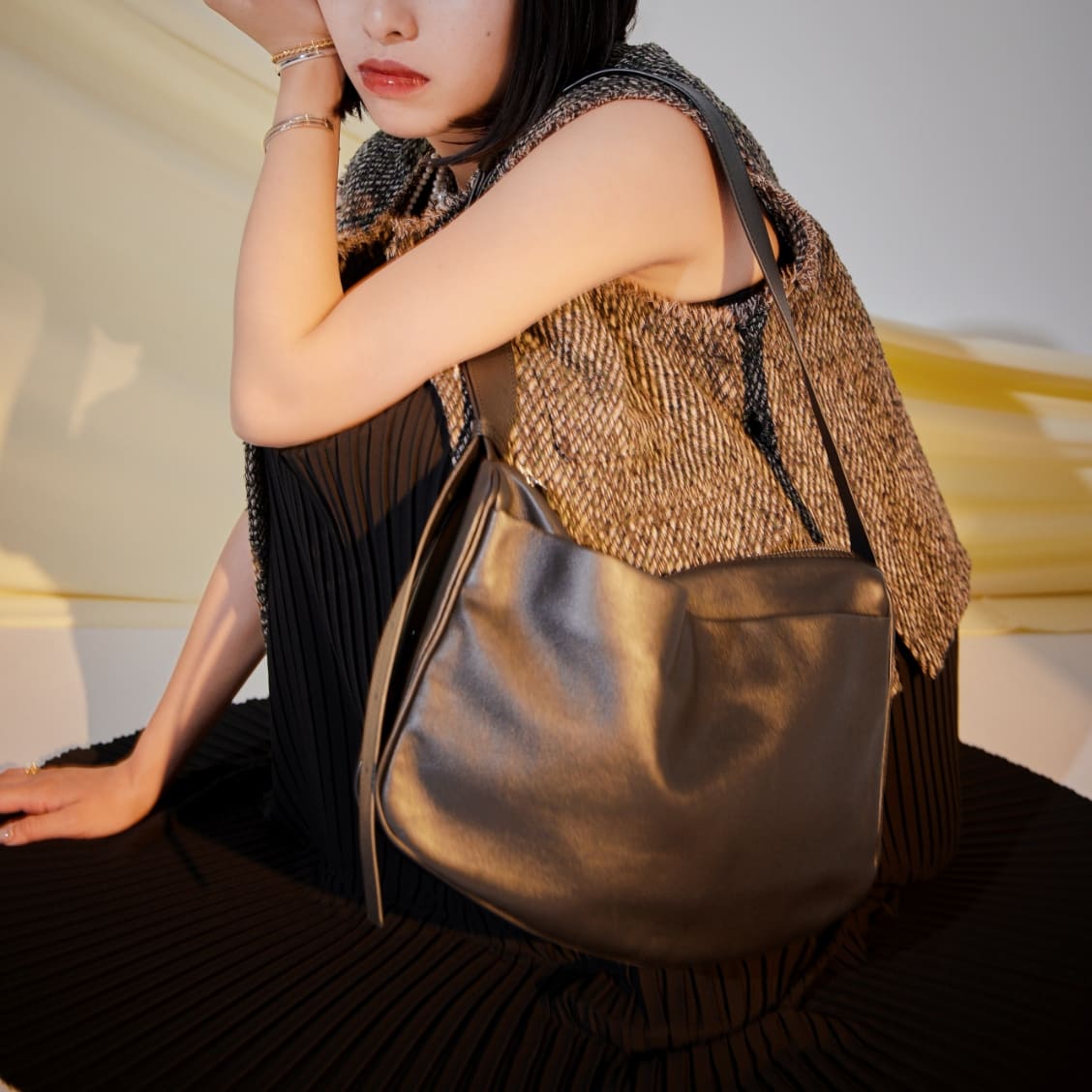 日常に溶け込むシーンレスなバッグです。