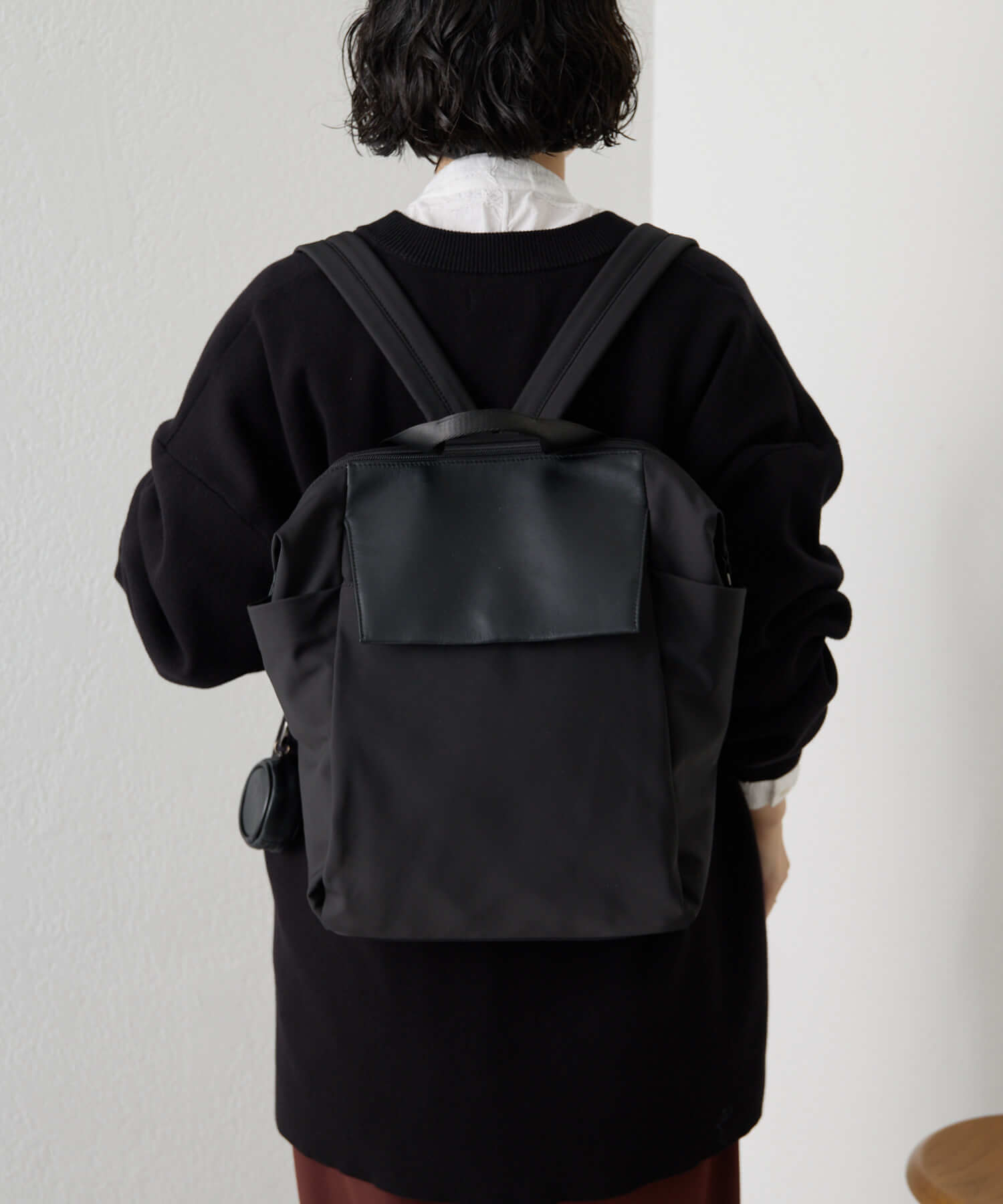 大きめなスマートフォンもスムーズに出し入れできる外ポケット付き。