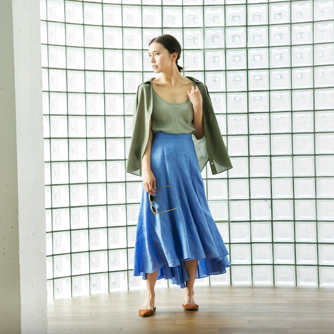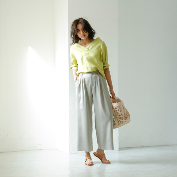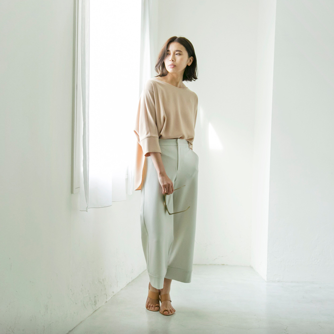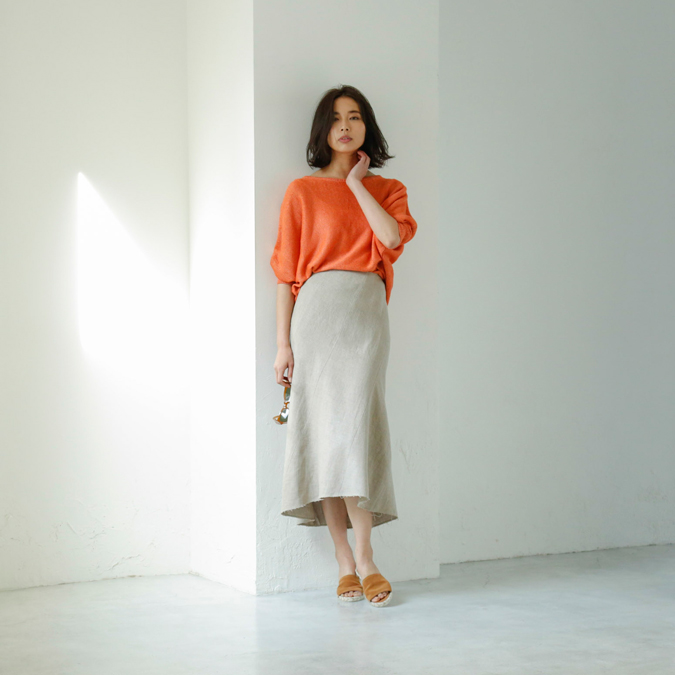 程よく光沢感のあるリネン素材のニットやワンピースなど夏にむけてもおすすめの上質なアイテムが勢揃いいたします。