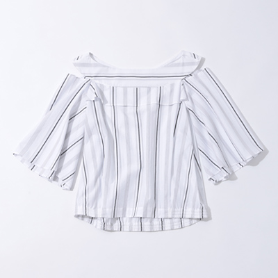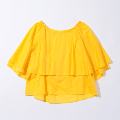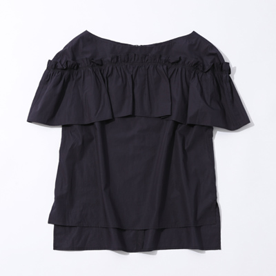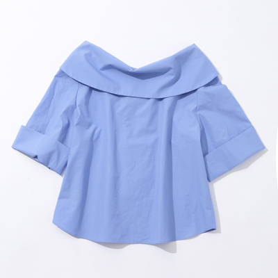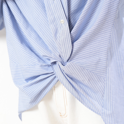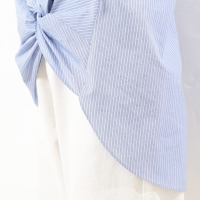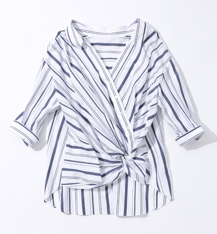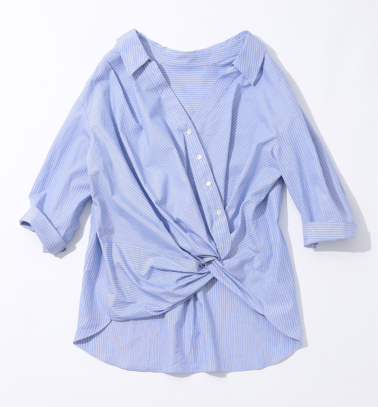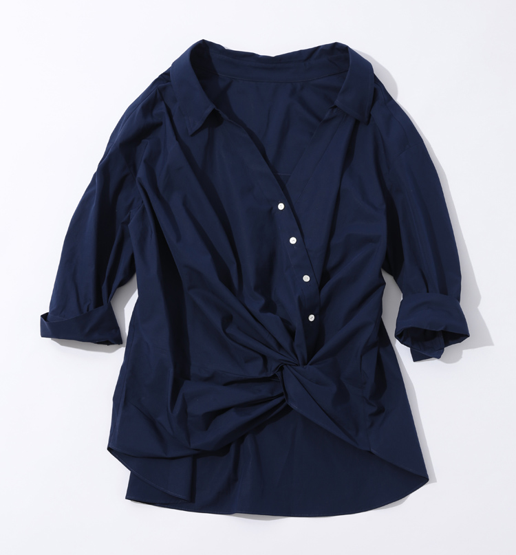 シャツをねじってドレープをよせたデザインが立体感をプラス。