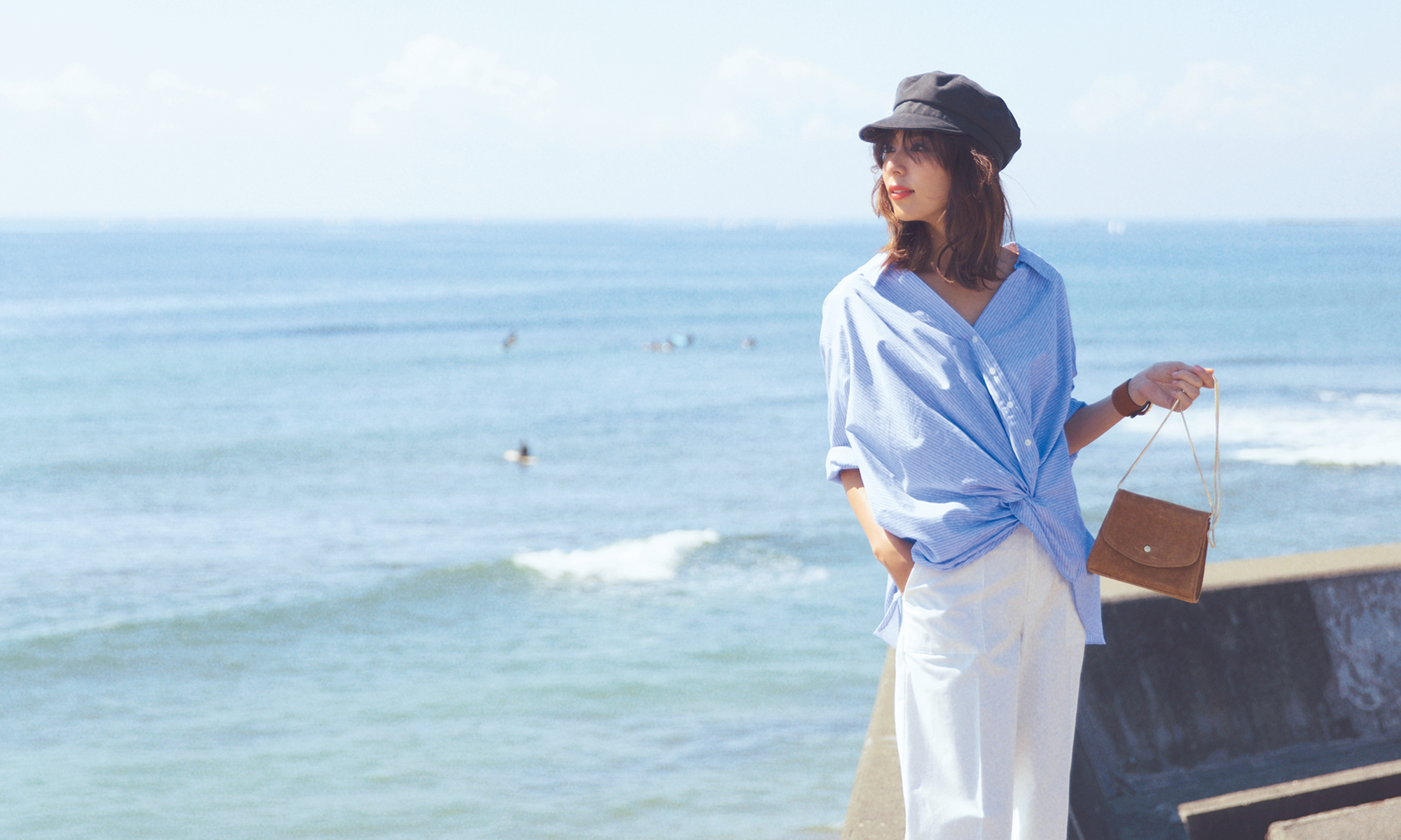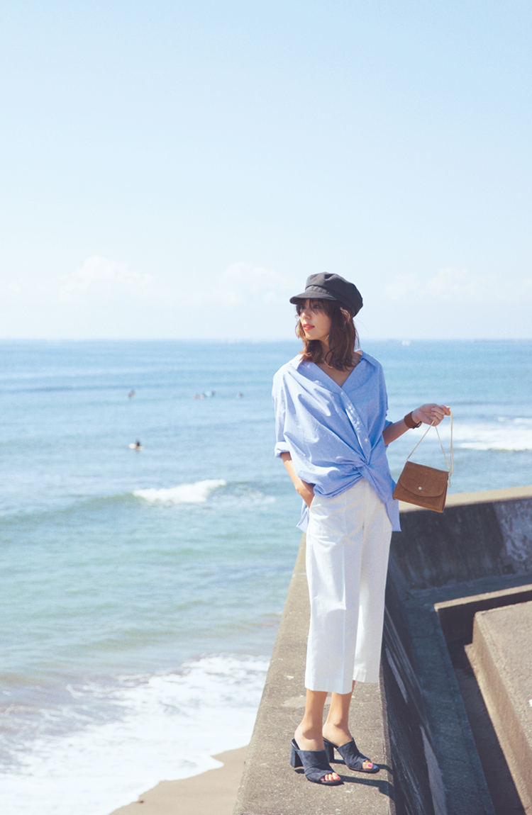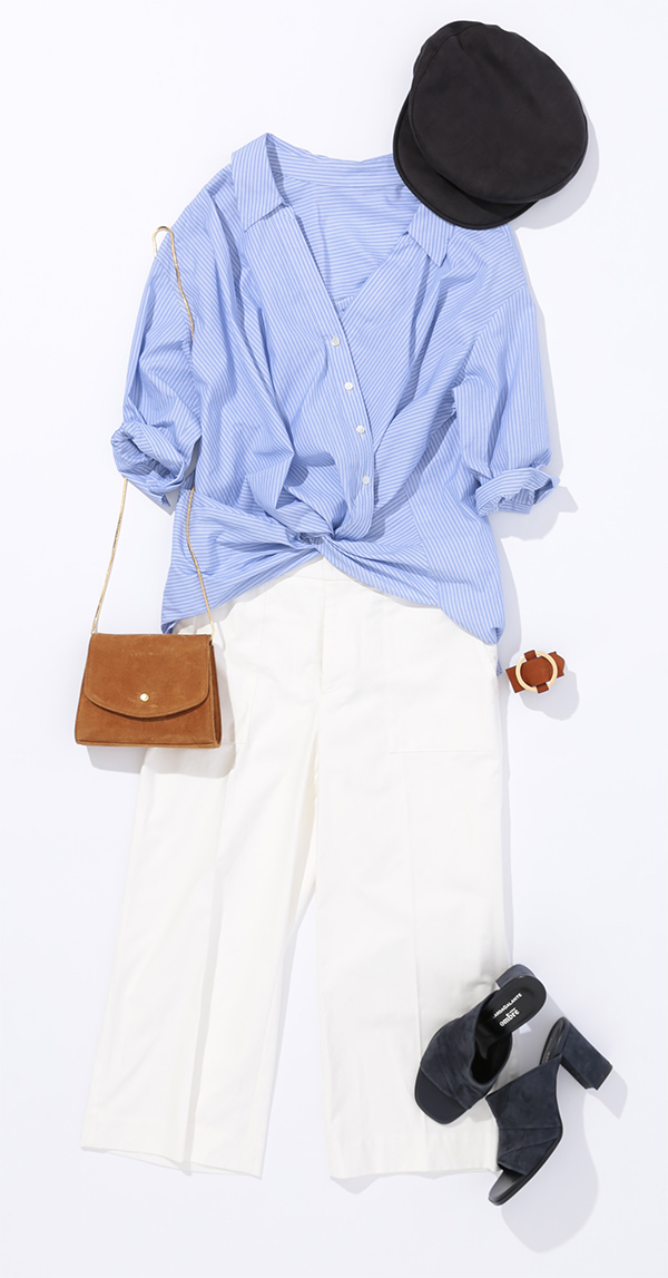 この時期にぴったりな七分袖。ロールアップしてラフに着こなすのがおすすめ。