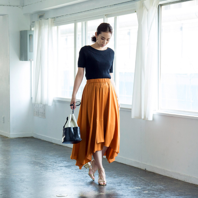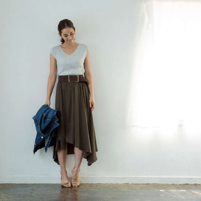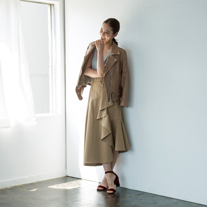 深みのあるカラーで仕上げたフレアスカートや1枚ではもちろんジャケットのインナー使いも便利な柄ブラウスなど