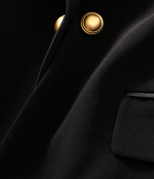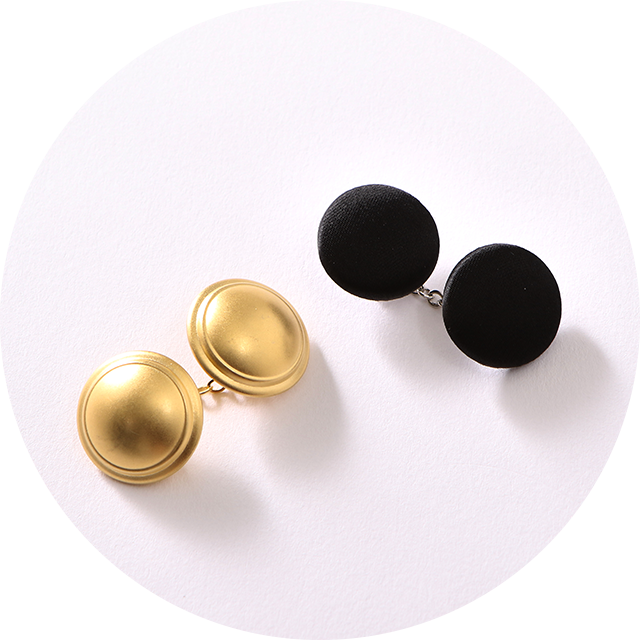 マットゴールド・ブラックサテン2種類のチェーンボタンを採用。