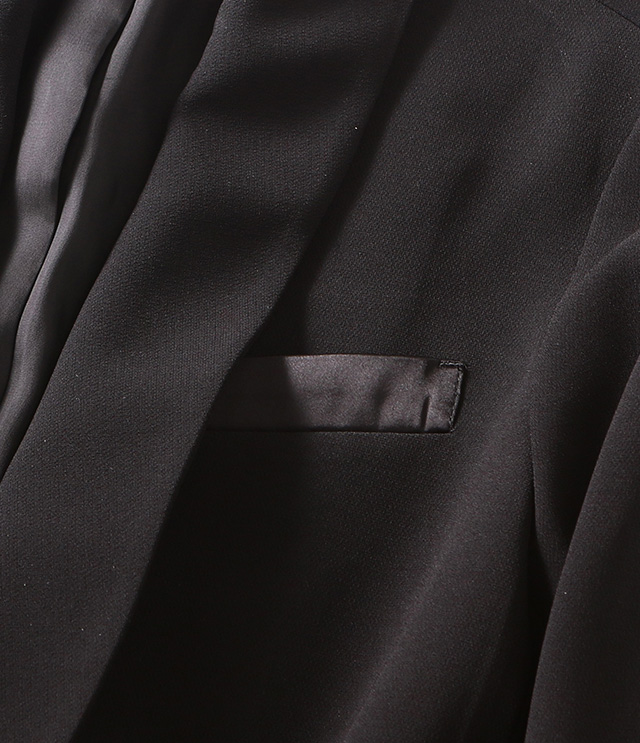 着方によってシックにも、華やかにも見せられるドレスジャケット。タキシードジャケットのデザインをベースに、こだわりのディテールを凝縮。日常に寄り添いつつも、特別感のある一着です。