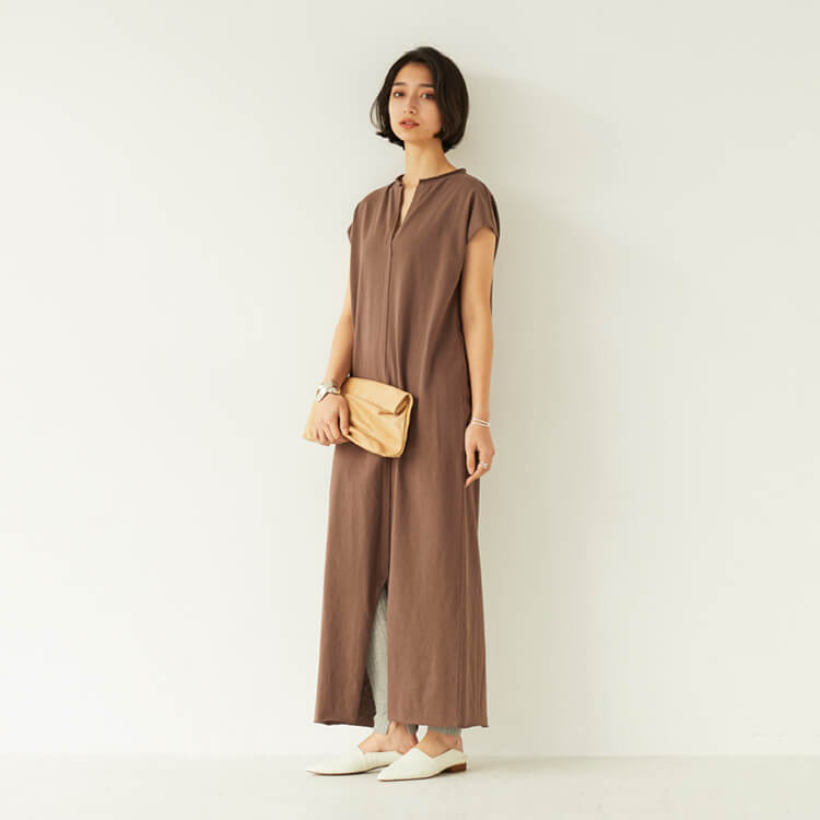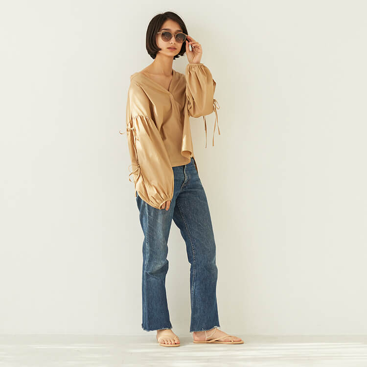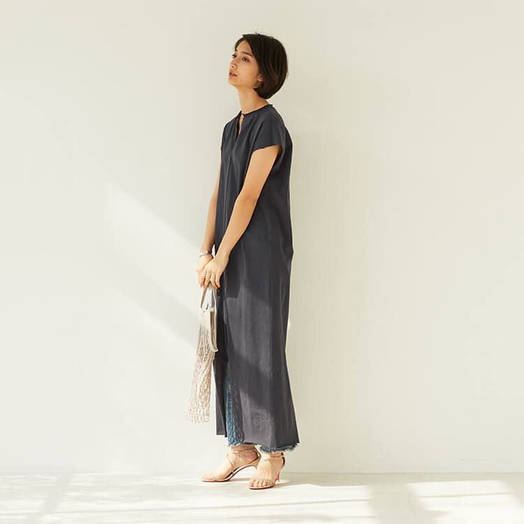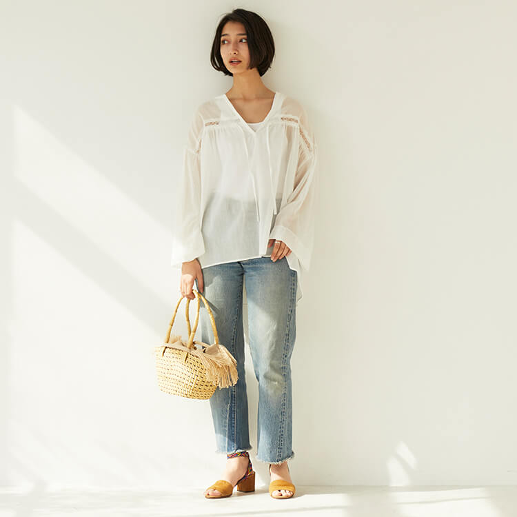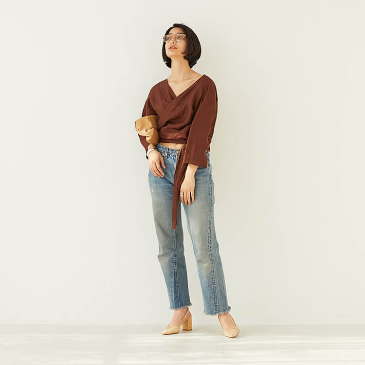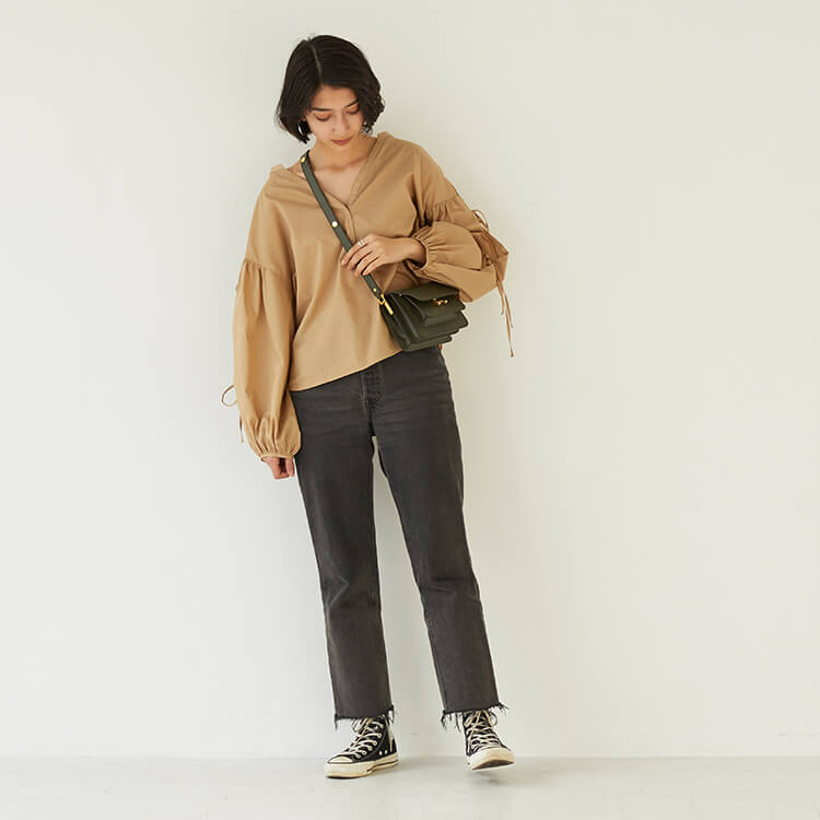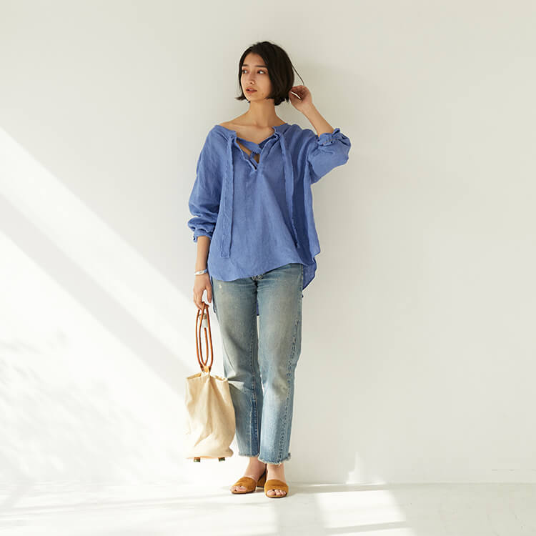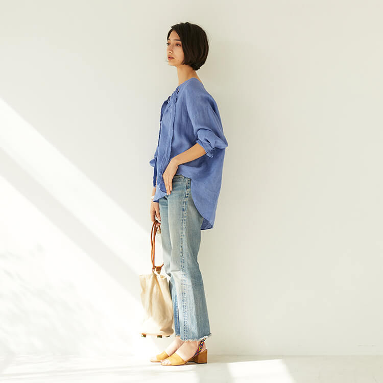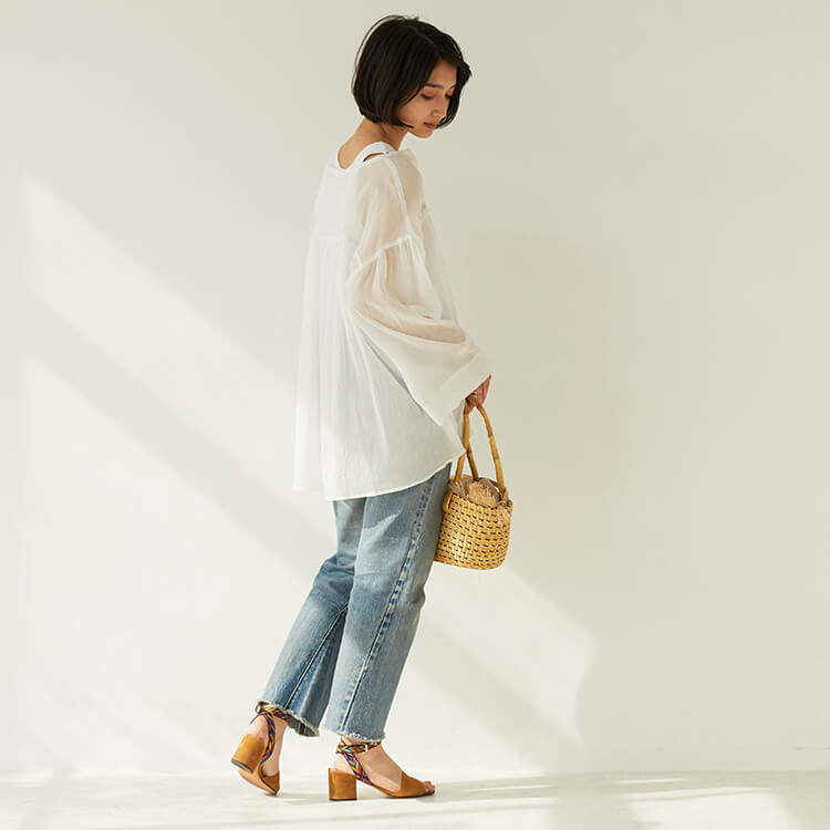 デニムやTシャツなど、ベーシックワードローブに合わせるだけで