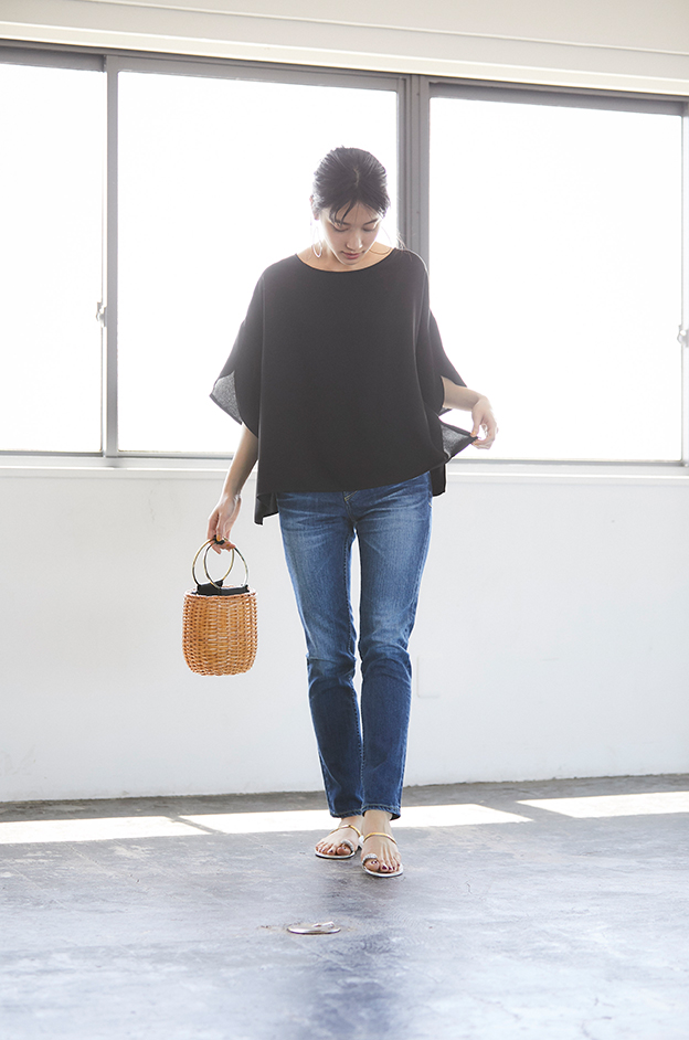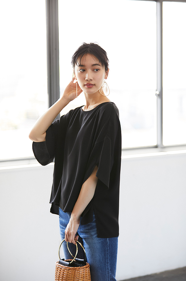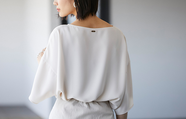 さらに、Tシャツ感覚でデニムやカジュアルなパンツとあわせたりしても、どことなく女性らしく仕上がるのが人気の秘密。「袖のバランスと丈感が絶妙で、体型カバーもしてくれる!」と多くのラブコールをいただく、大人の女性におすすめの一枚。