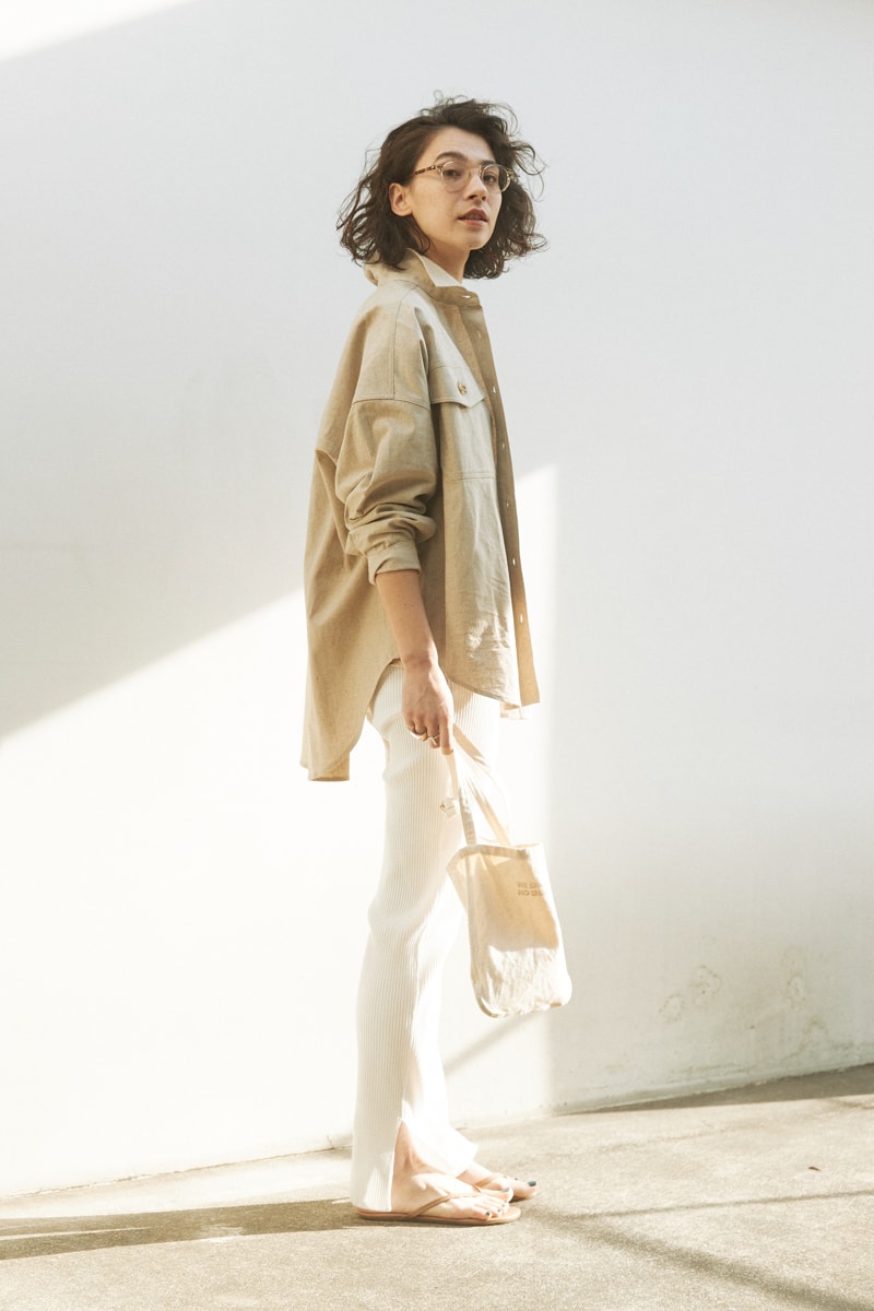 デニムやTシャツなど、ベーシックワードローブに合わせるだけで