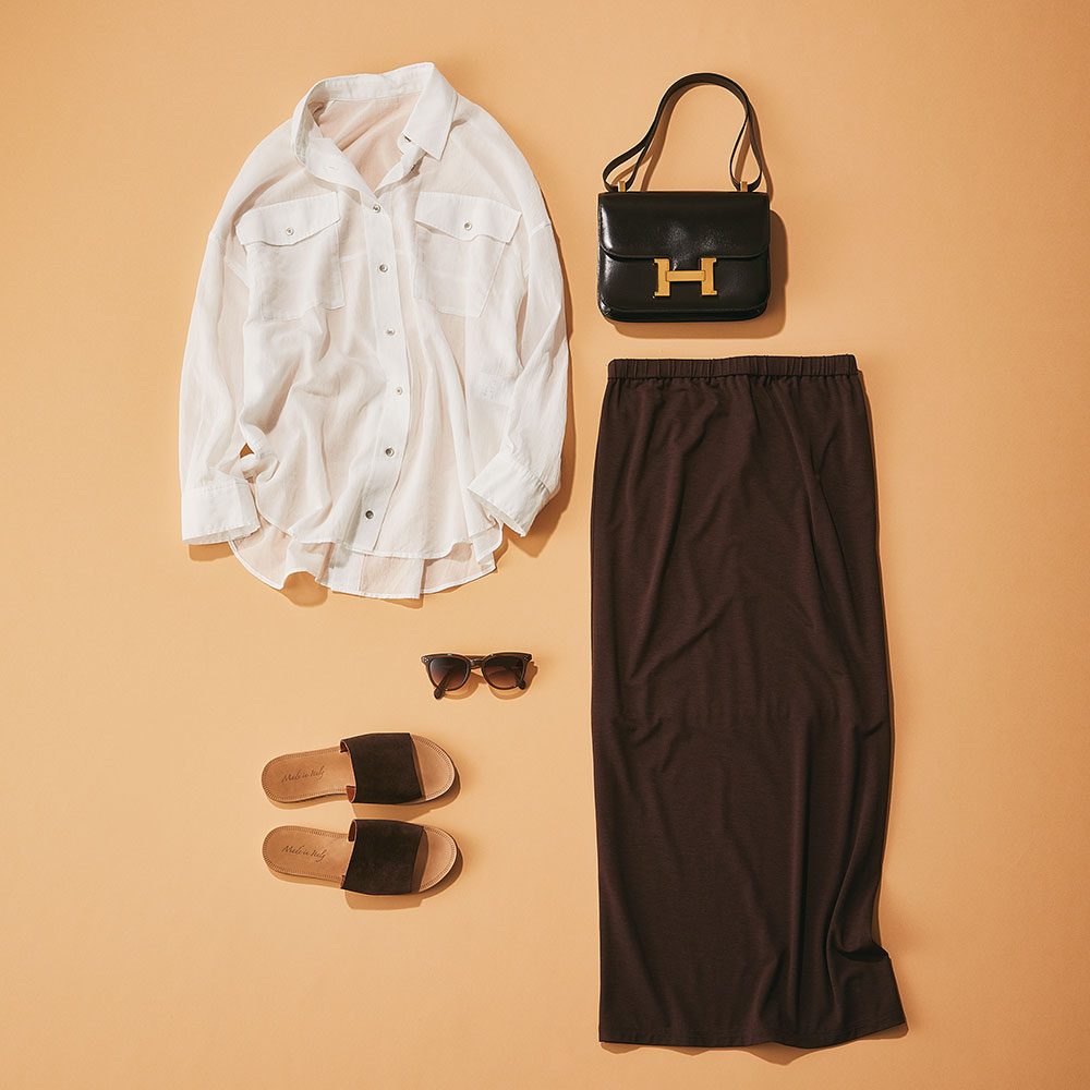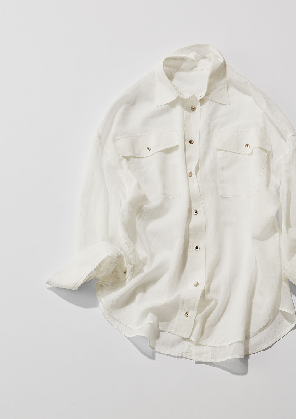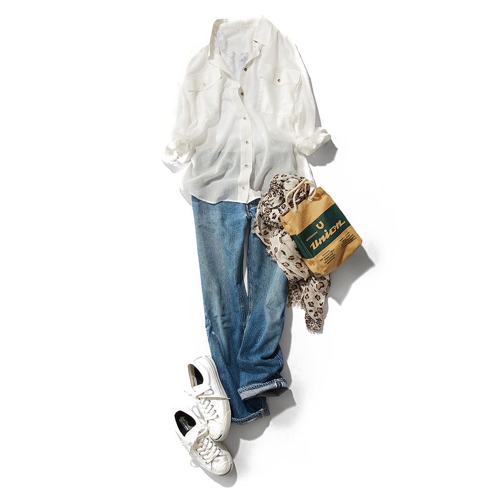 薄手の白シャツは初夏に向けて一枚あると便利。