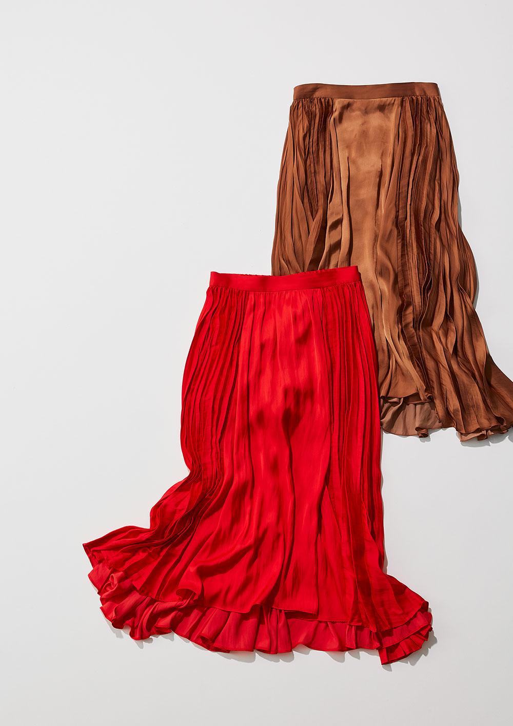 この位のカジュアルさがプリーツスカートをオシャレに見せます。