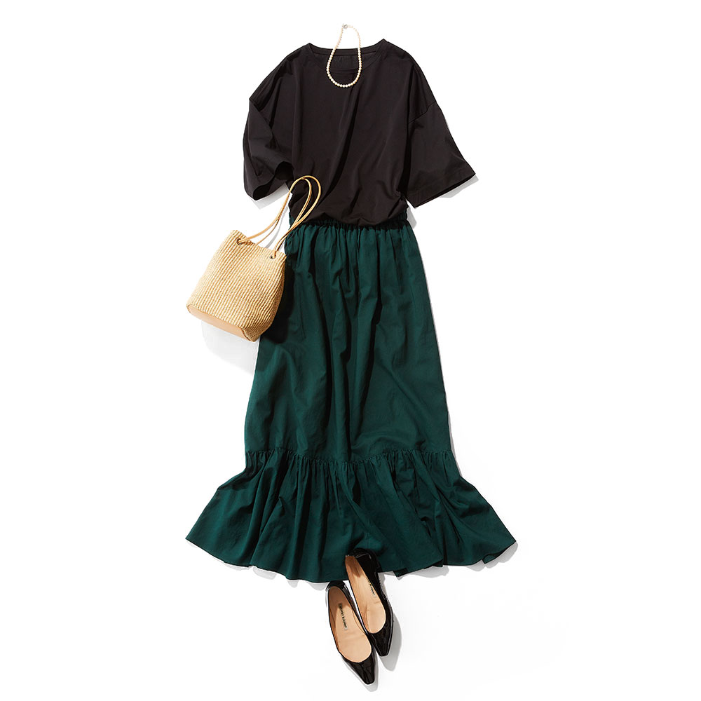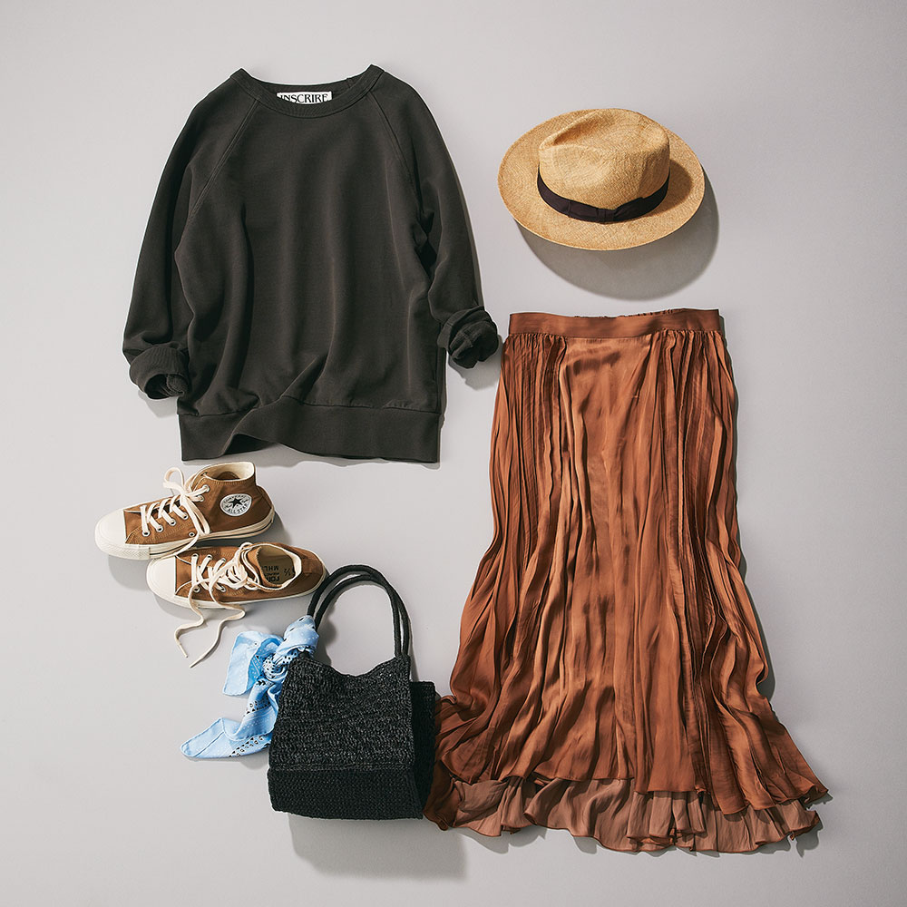 カゴバッグでカジュアルミックスしてもいまどき感がでます。