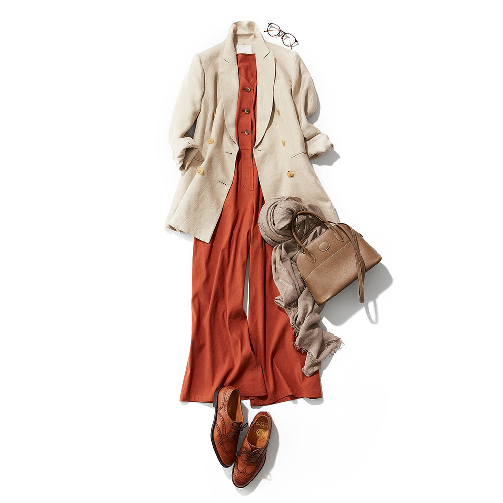 「テラコッタ×ホワイト」はよりフェミニンで大人っぽい色合わせ。