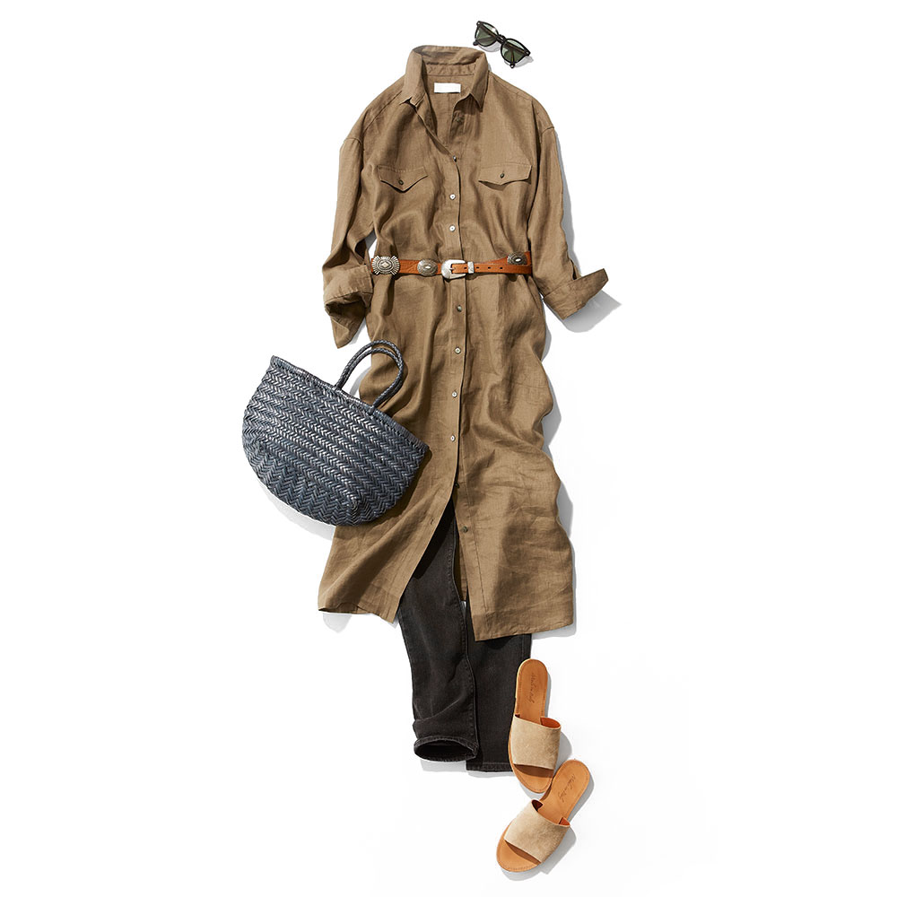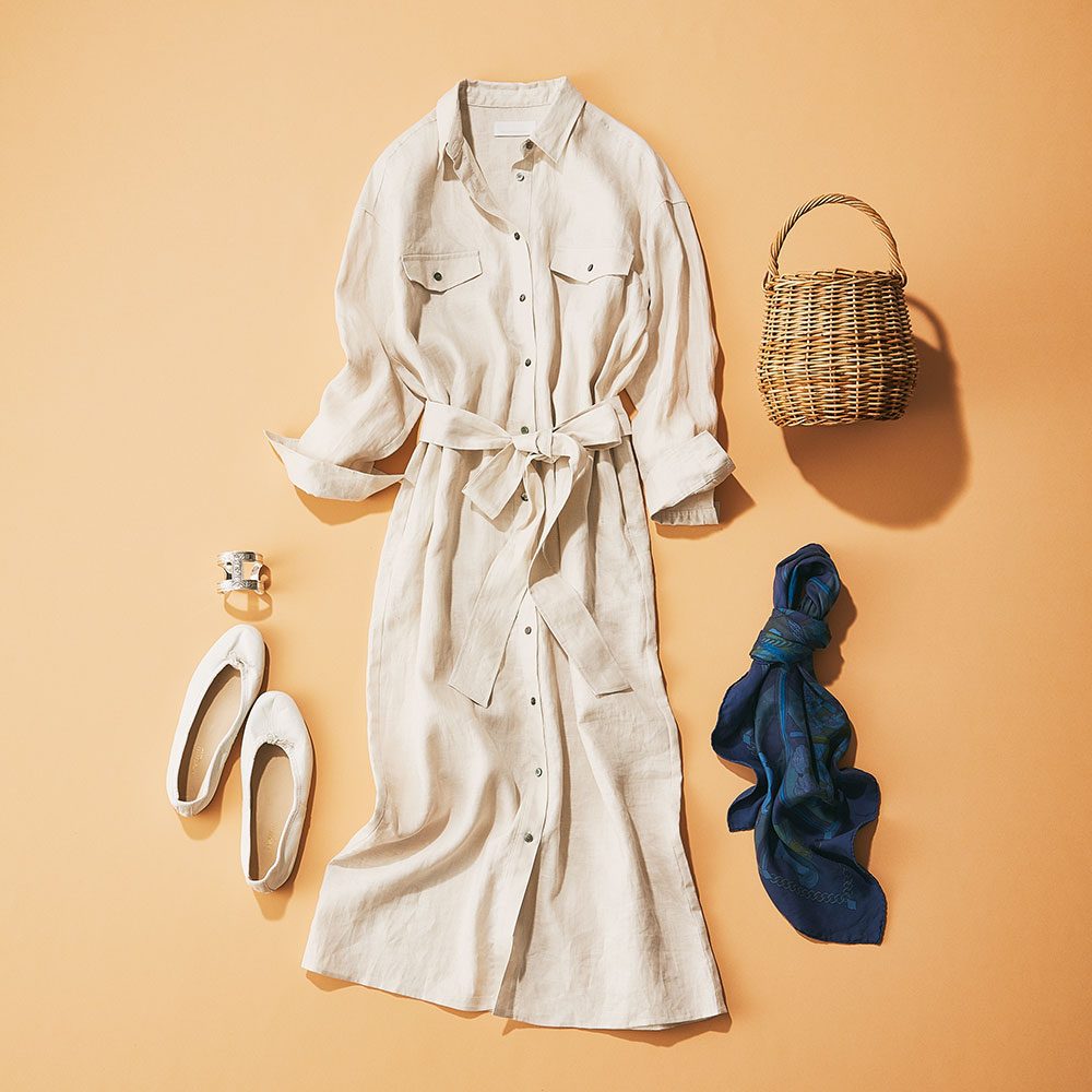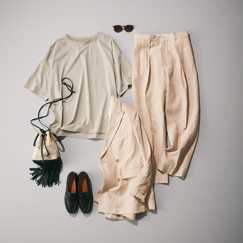 リネン素材は固くなりすぎずラフな印象に仕上がります。