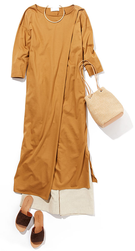 日常だけでなく旅先でも重宝しそう!ビーチサンダルを合わせて海辺で着るのも素敵じゃないですか?クラシカルな麦藁帽子でもスポーティなキャップでも似合いそう。ヒールを合わせれば夜のディナーにも行けるし、荷物をコンパクトにしたい旅行にもってこい!
