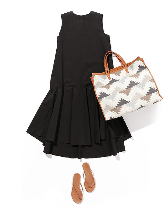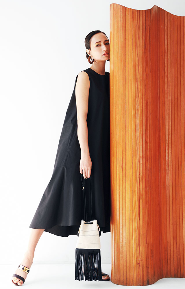 黒いドレスって着る人をシャープに見せがちだけど、これは大人の女性の愛らしさをさり気なく引き出してくれるところがとてもタイプ。モノトーンでモダンに着こなしたいですね。
