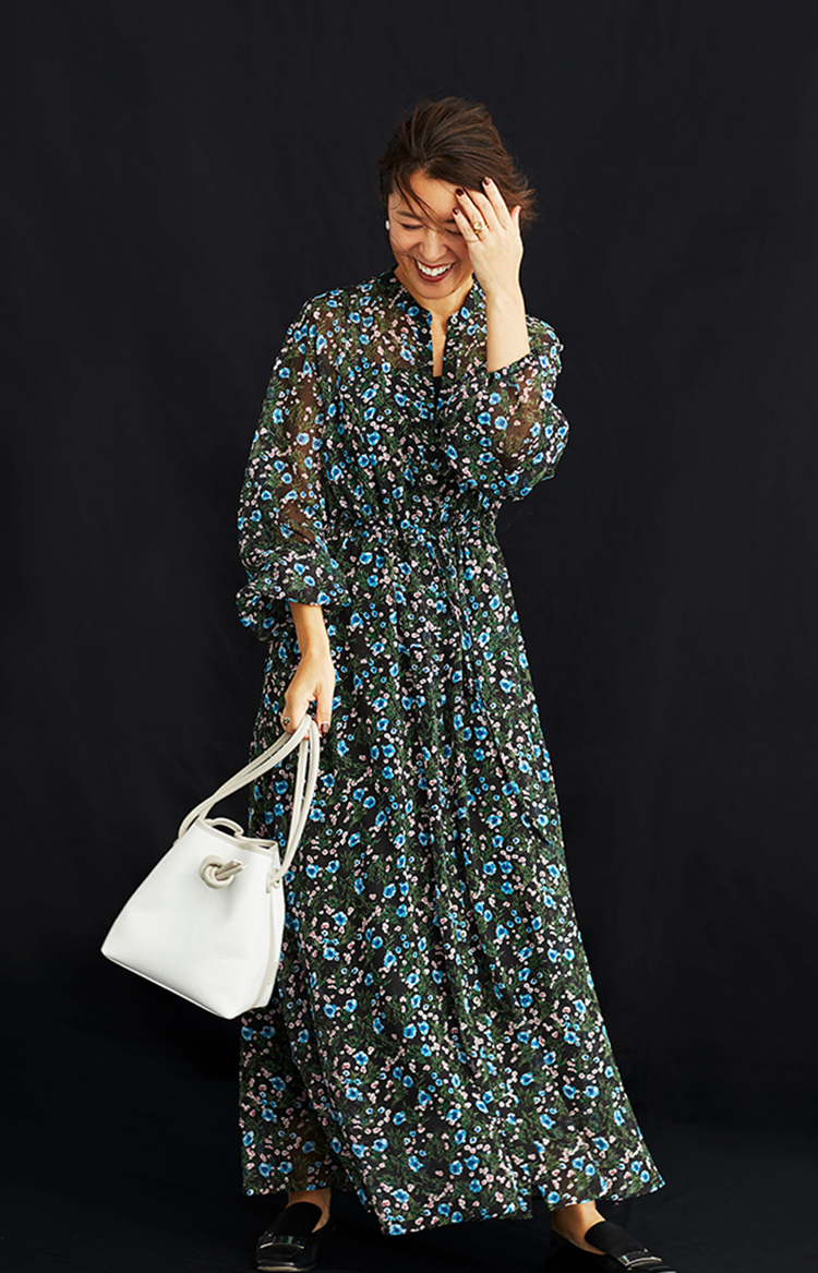 「バッグは、持つ人の人生や、この先の未来を入れて持ち歩く、とてもとても大切なアイテム。四角いバッグは、真面目で堅実なその人が透けて見えるし、小さな小さなバッグは、足取りの軽いミニマル主義な女性を映します。VASICのバッグは、自由で楽しくて、ポジティブな女性像。本当にKANOKOさんそのもので、そこがとても好きです。」Kanoko’s Comment: