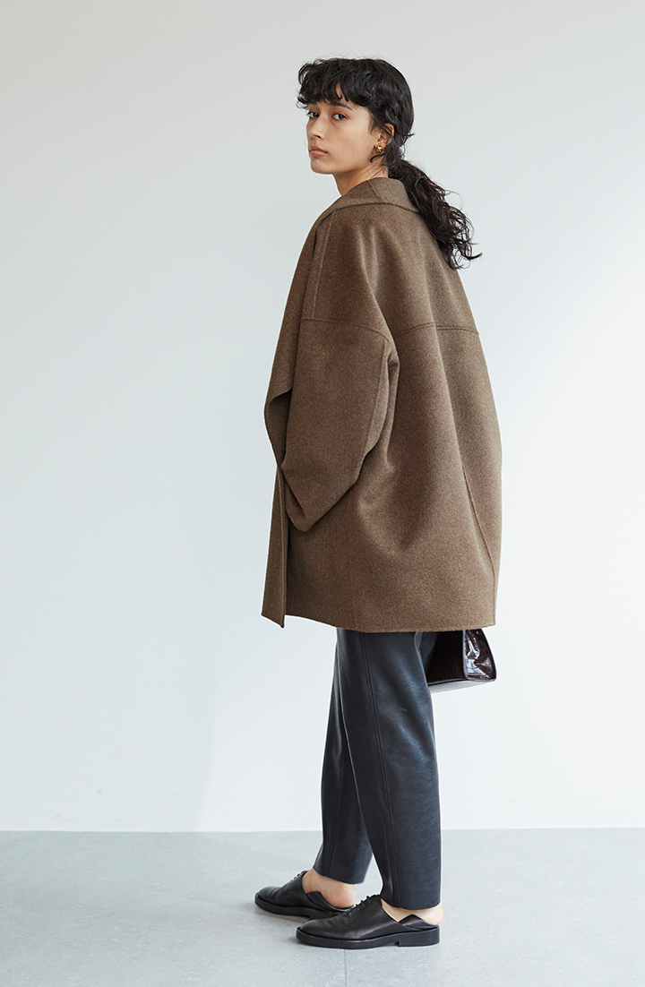 裏地がないから、さらりと羽織れて、余計なかさばりが出ません。冬コートにありがちな「もっさり感」とは無縁。むしろ気負わない「エフォートレス感」が漂い、抜け感を演出できます。