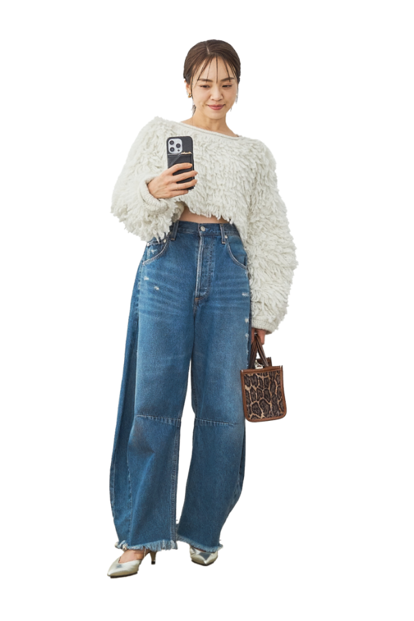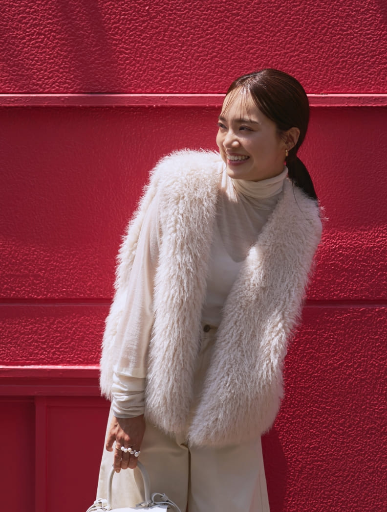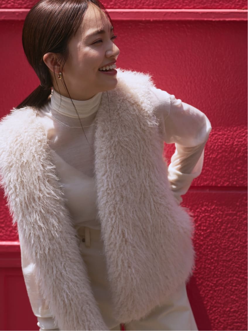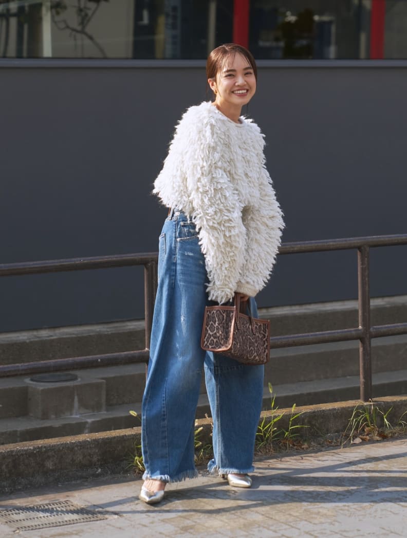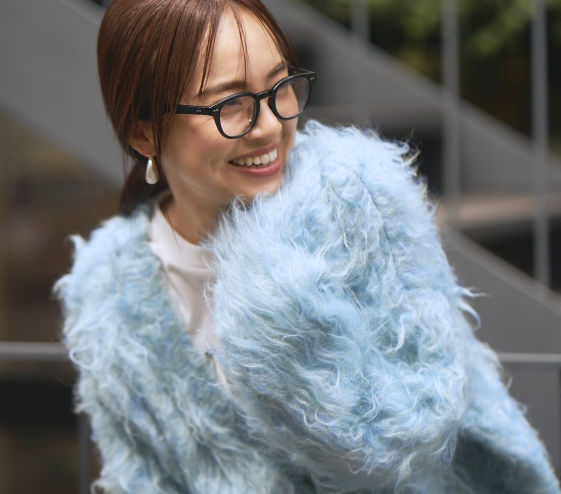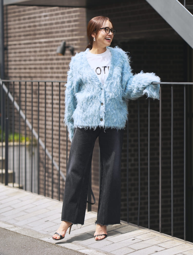 毛足の長い主役ニットを、