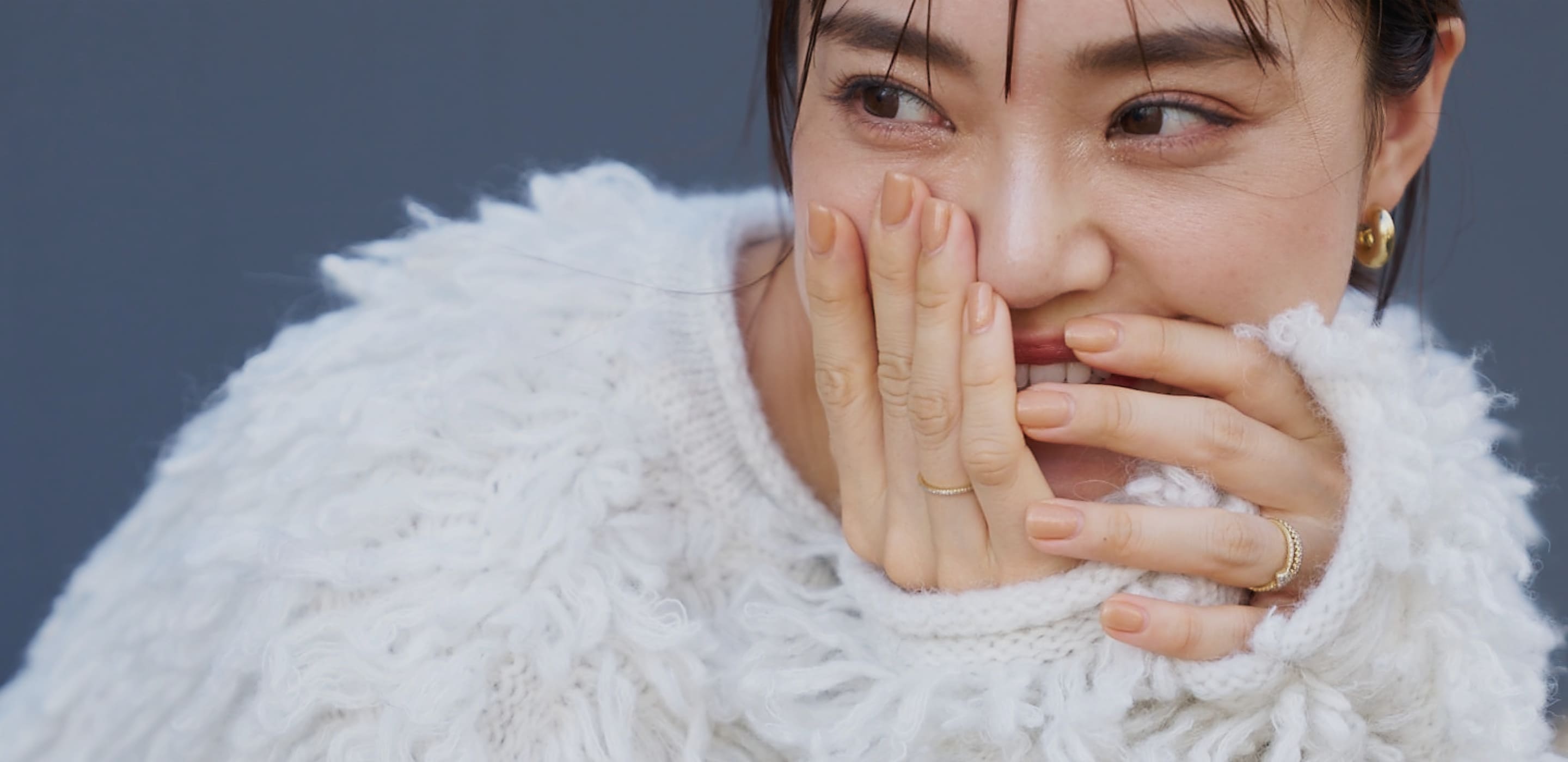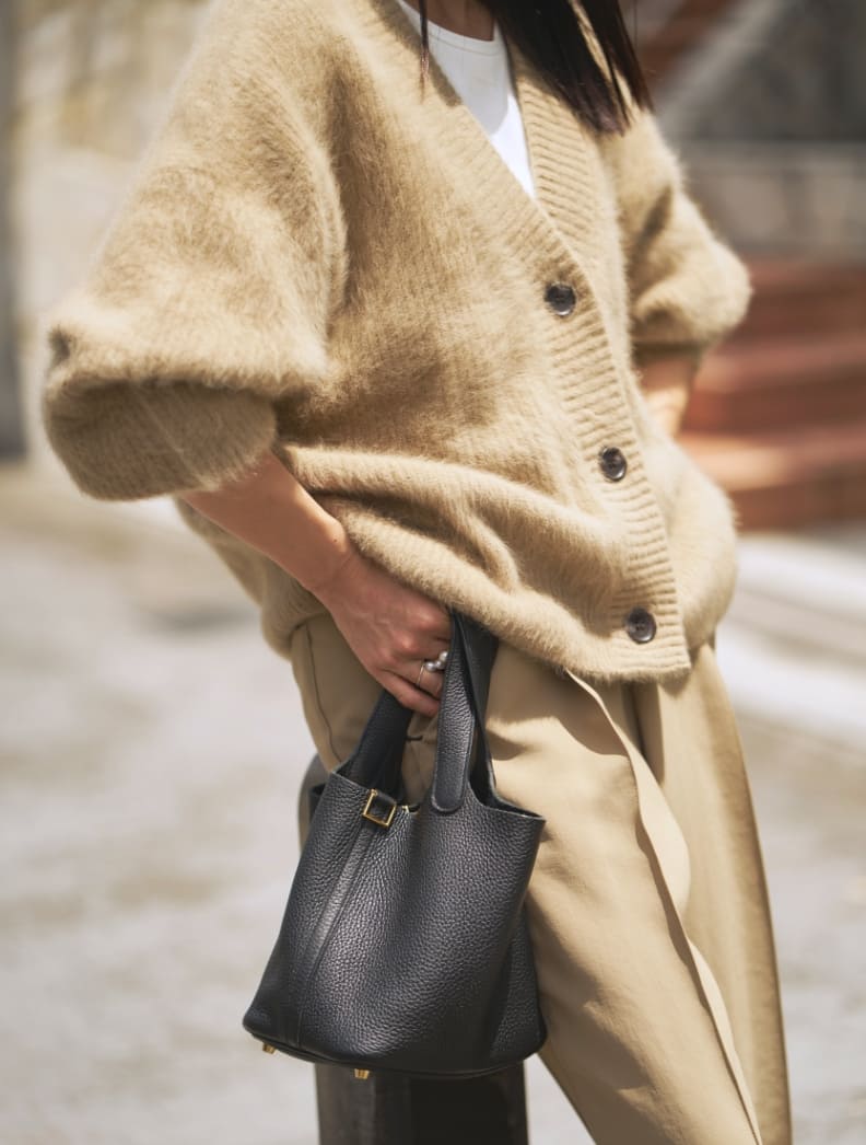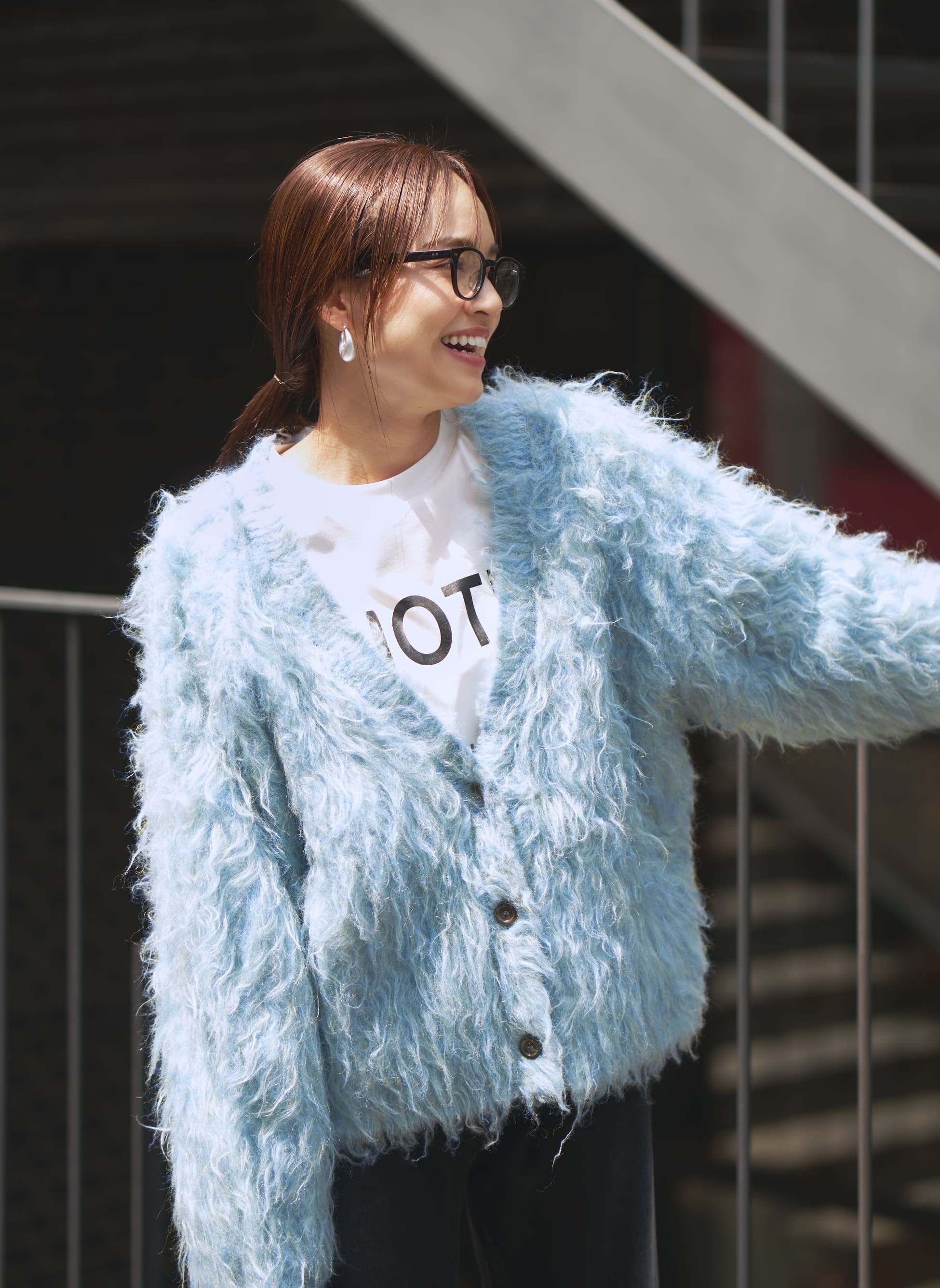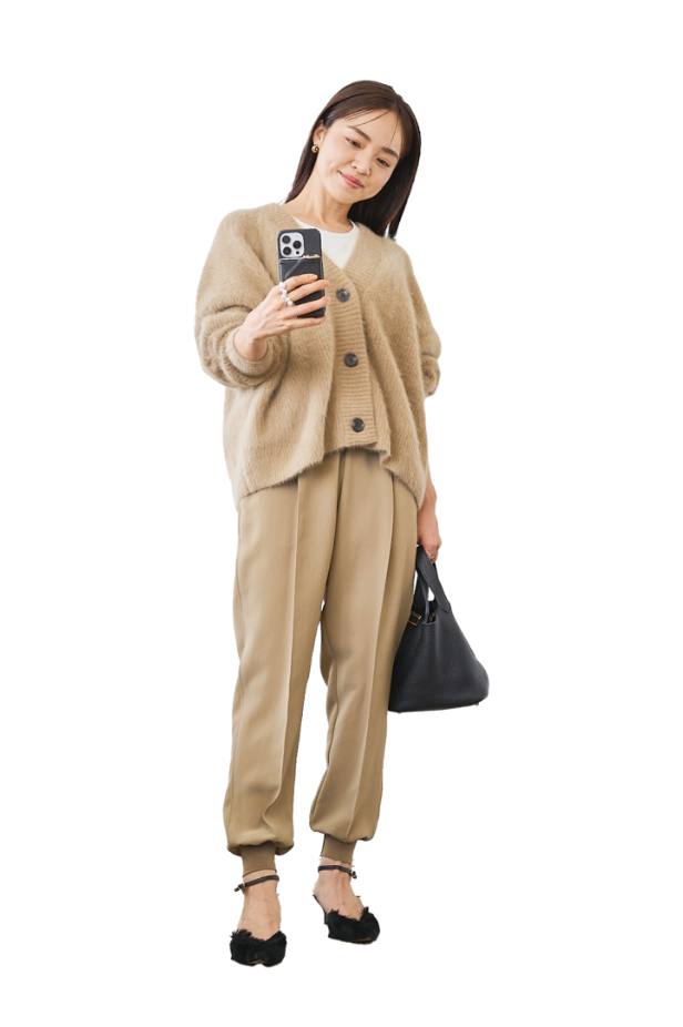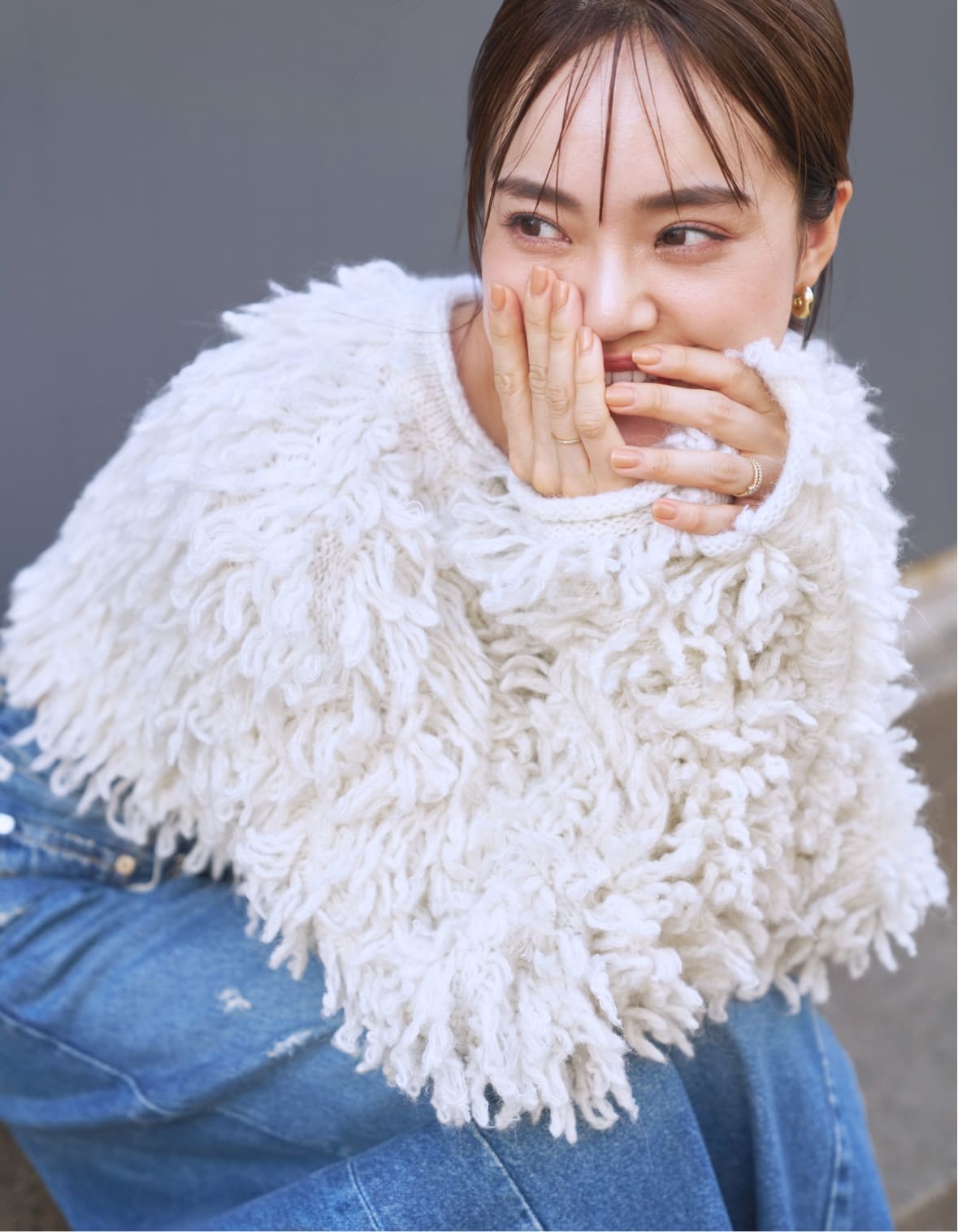 毛足の長い主役ニットを、