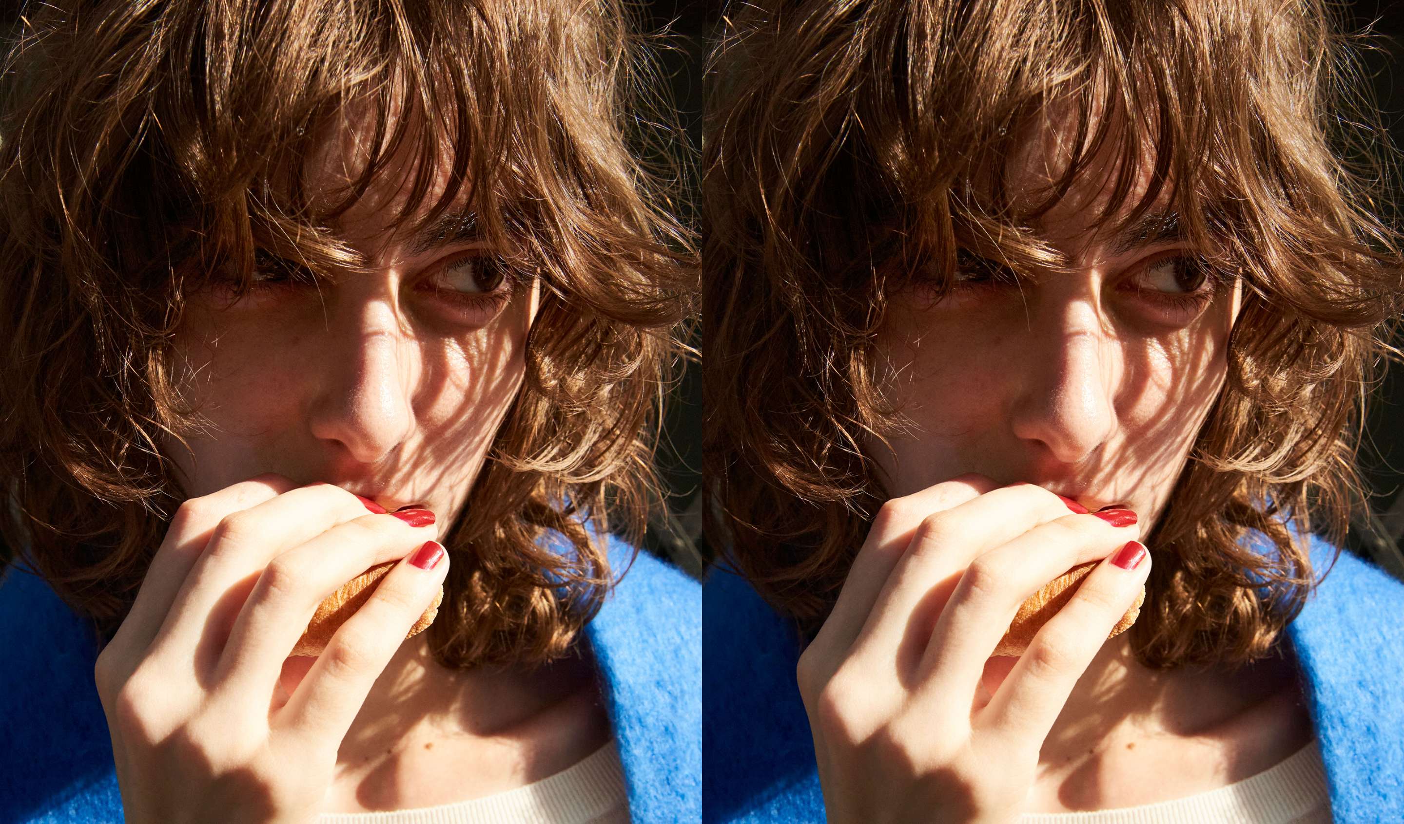 Totally forgot to buy the bread that I was going to eat with boyfriend for breakfast. Threw on my blue stole and rushed on down to the bakery in the chilly air. Got hungry on the way home, so went and took a bite. No one will find out about it, I’m sure, so why not. LOL