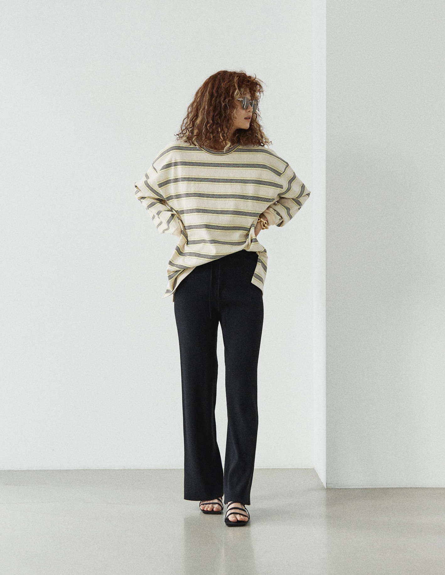 デニムやTシャツなど、ベーシックワードローブに合わせるだけで