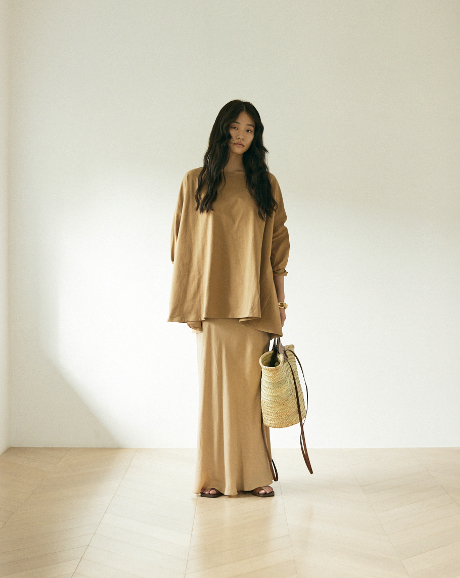 デニムやTシャツなど、ベーシックワードローブに合わせるだけで