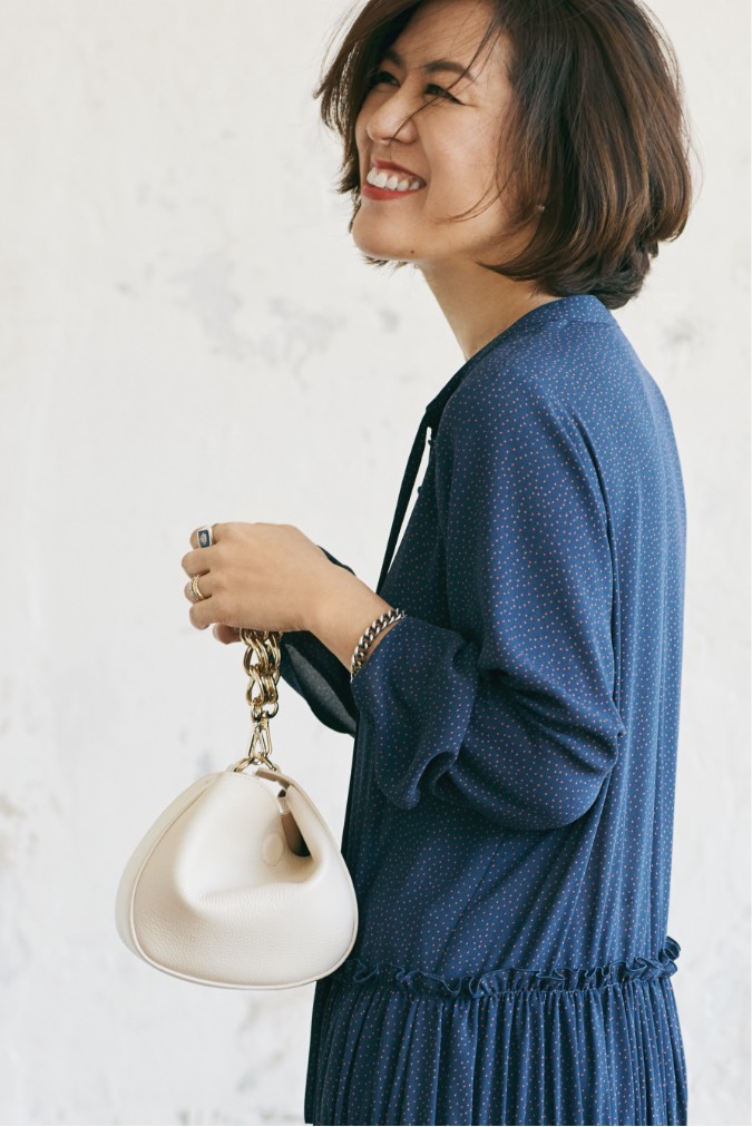 相反するテイストが涼しい顔で共存するからこそ、どんなスタイルにもフィットしてくれるのです。ワンピース、デニム、シャツ――手持ちのすべてと仲良くしてくれるバッグ」。