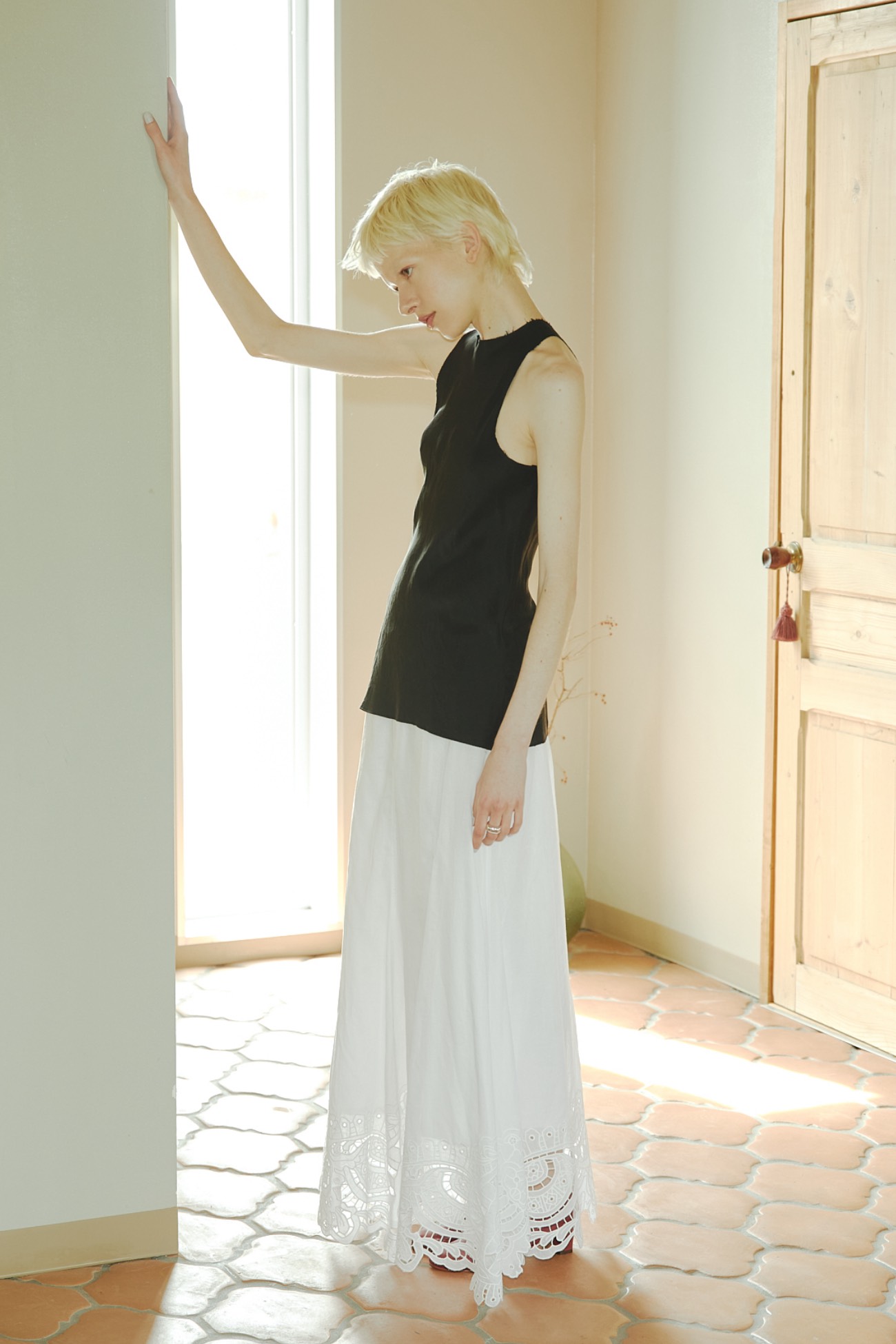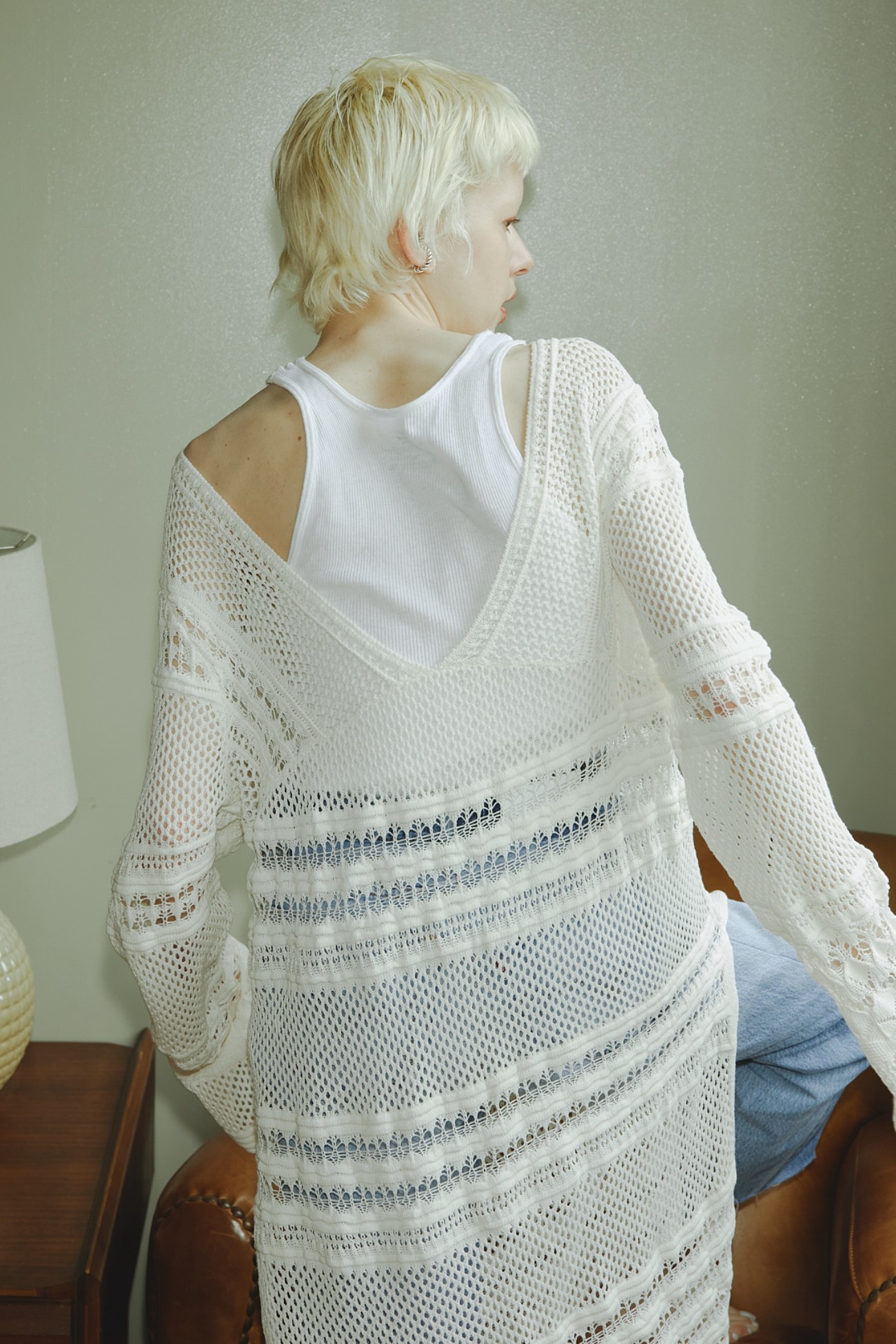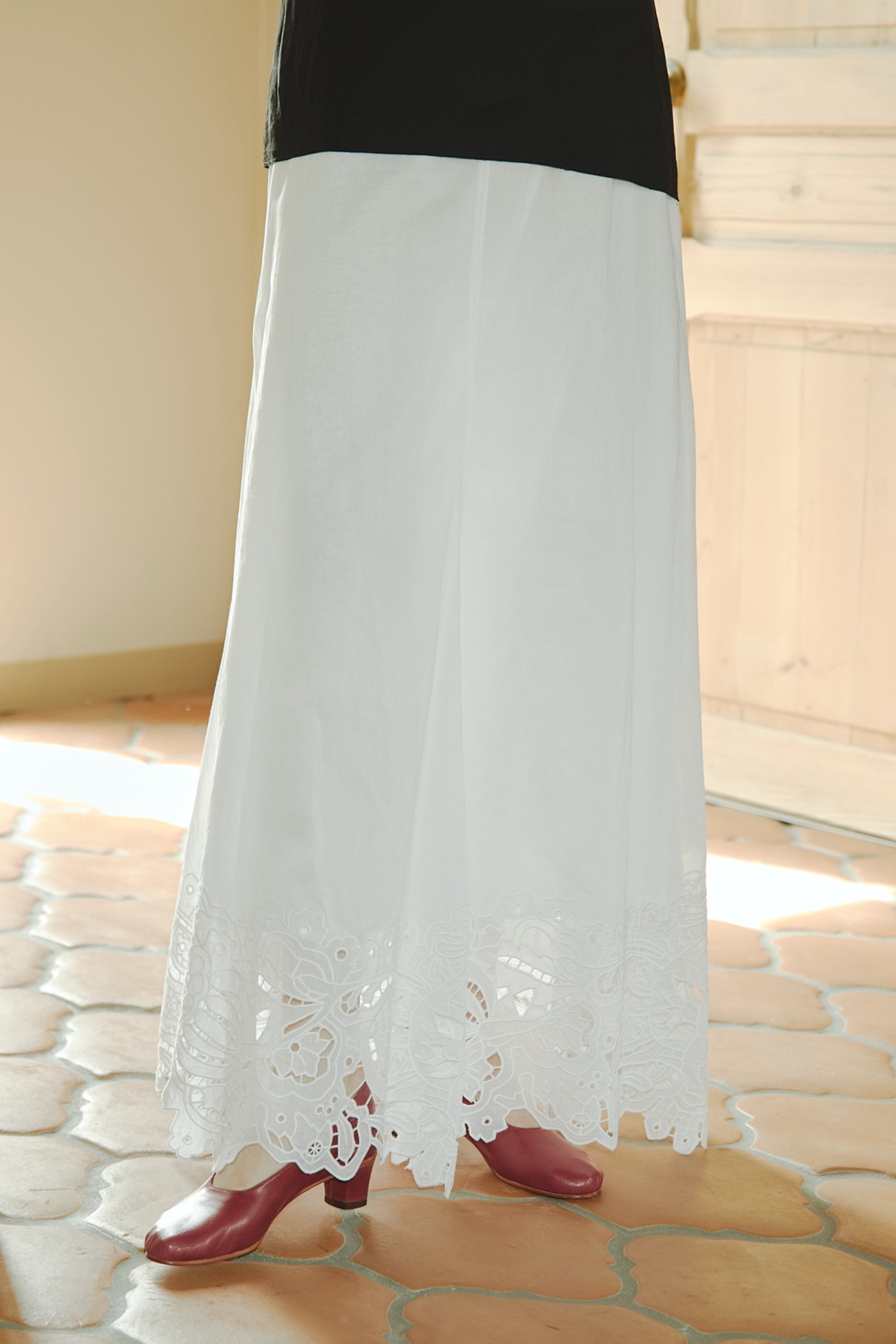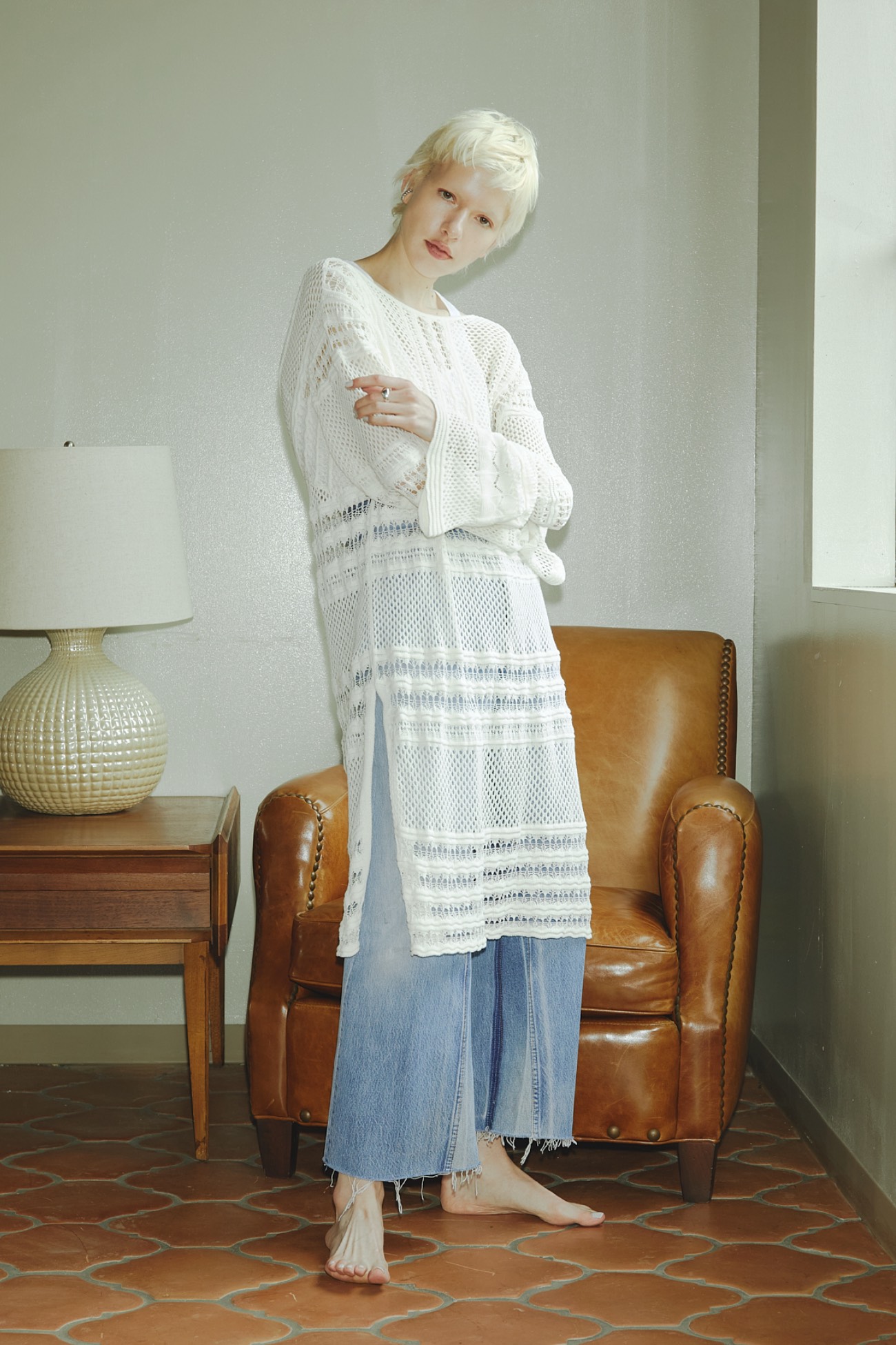 カットレースのブラウスがボーイッシュになりがちなデニムを