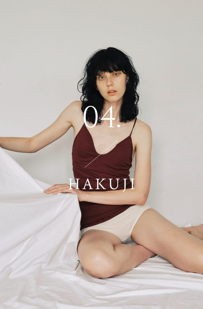 デイリーに馴染むシンプルなウェアでありながら、上質さとスタイリッシュさを併せ持つHAKUJI。