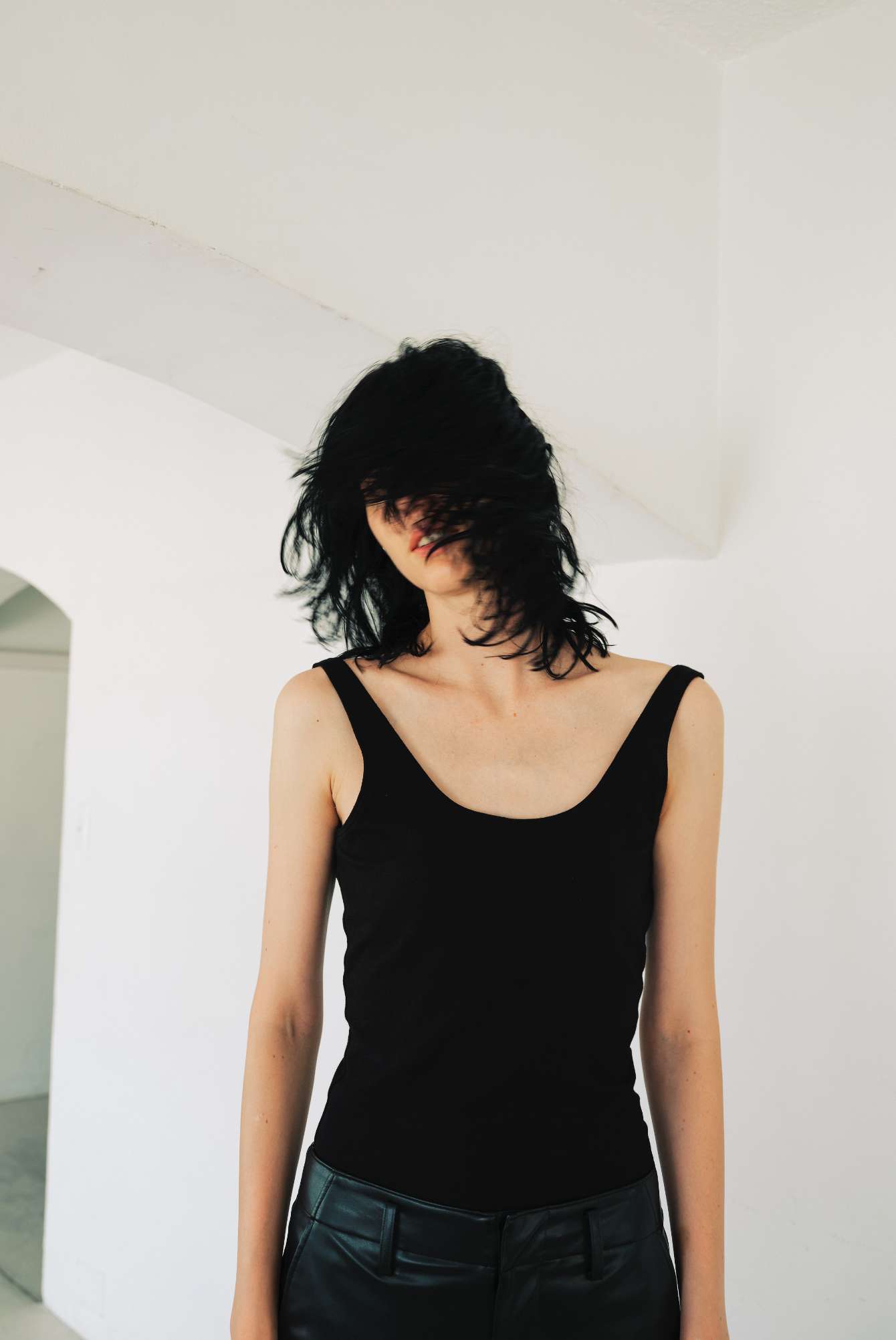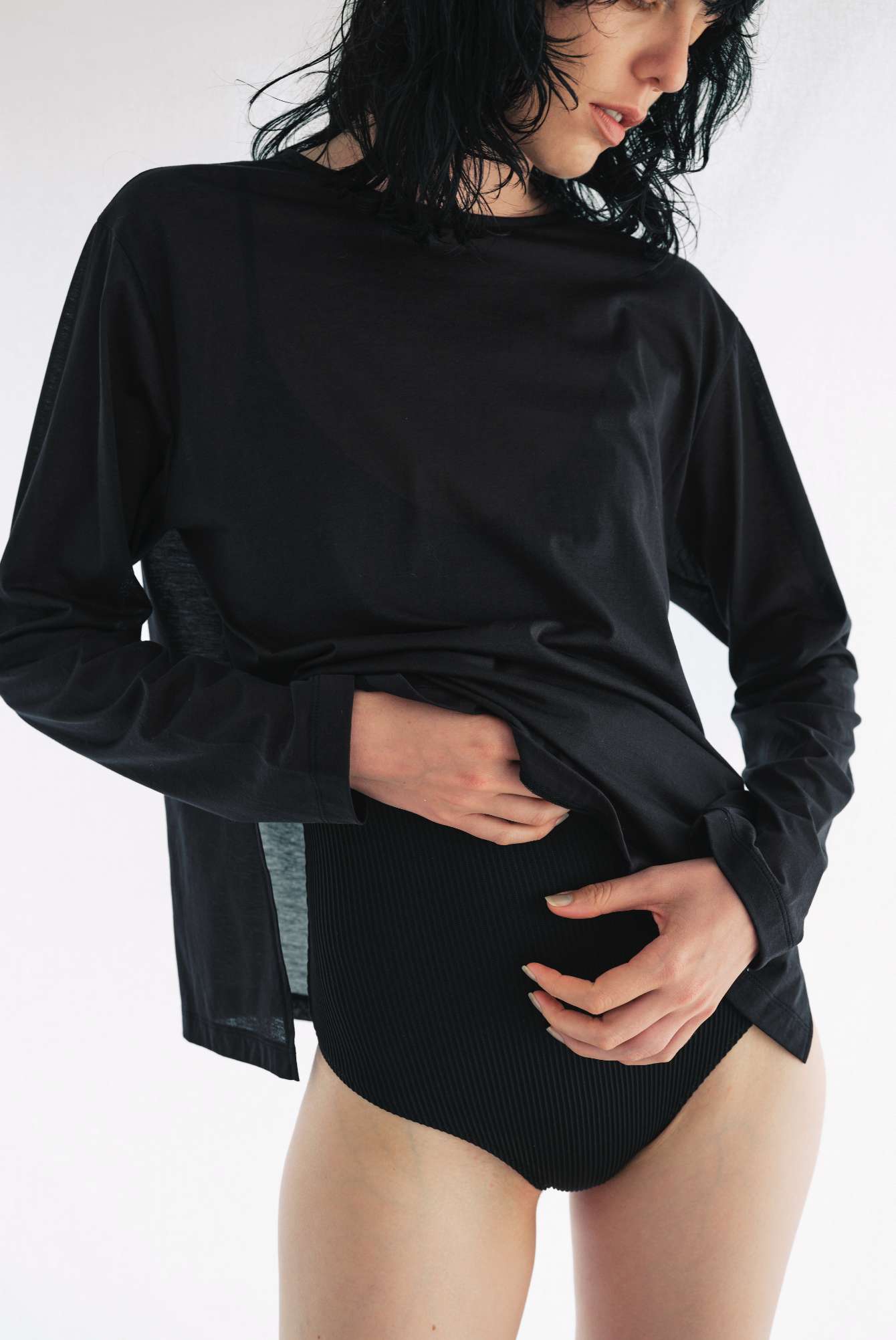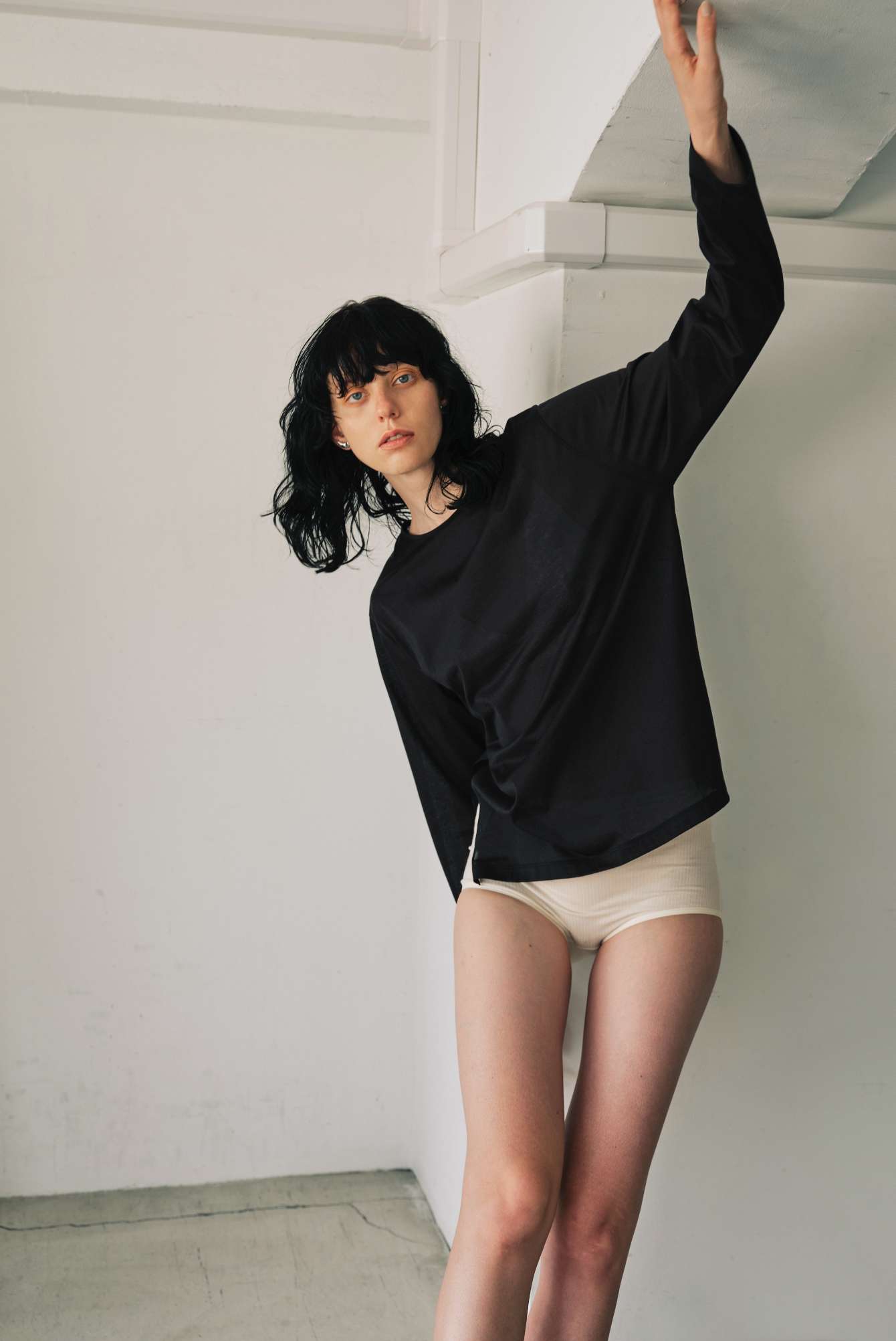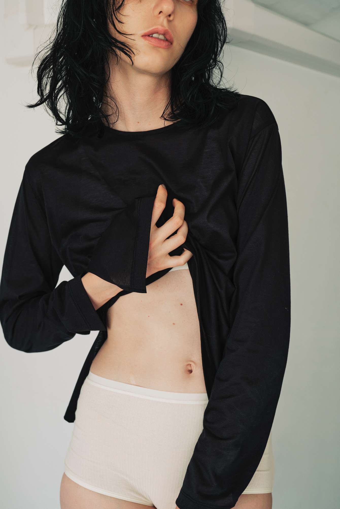 細くてスタイリッシュな肩紐や、クールでありながら女性らしい襟ぐりのカッティングなど、“ファッションの内側”であると同時に“ファッションの一部”であることを感じさせる、洗練されたデザイン。