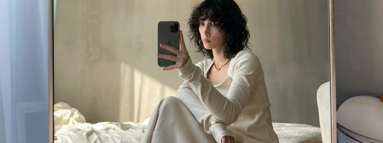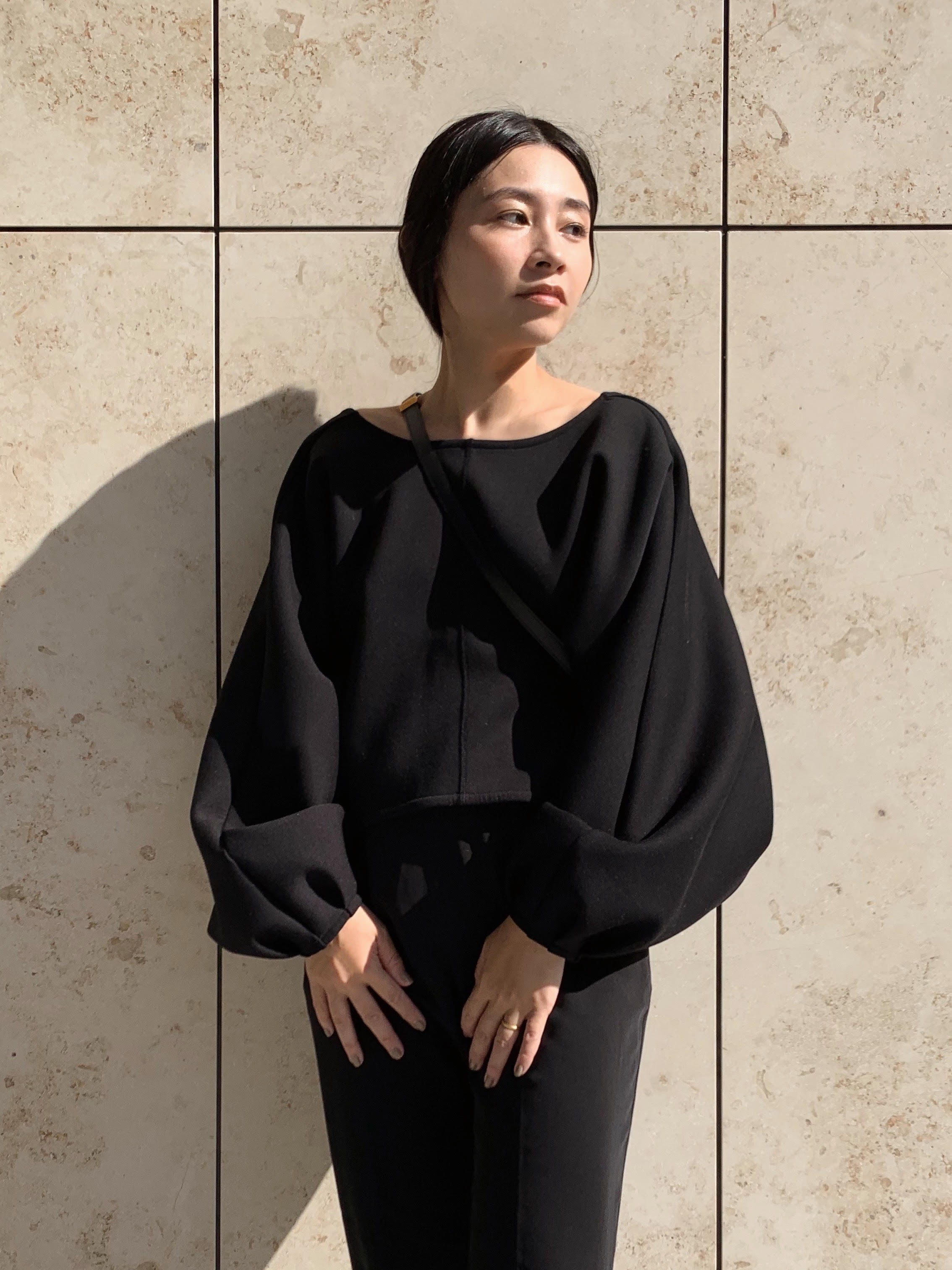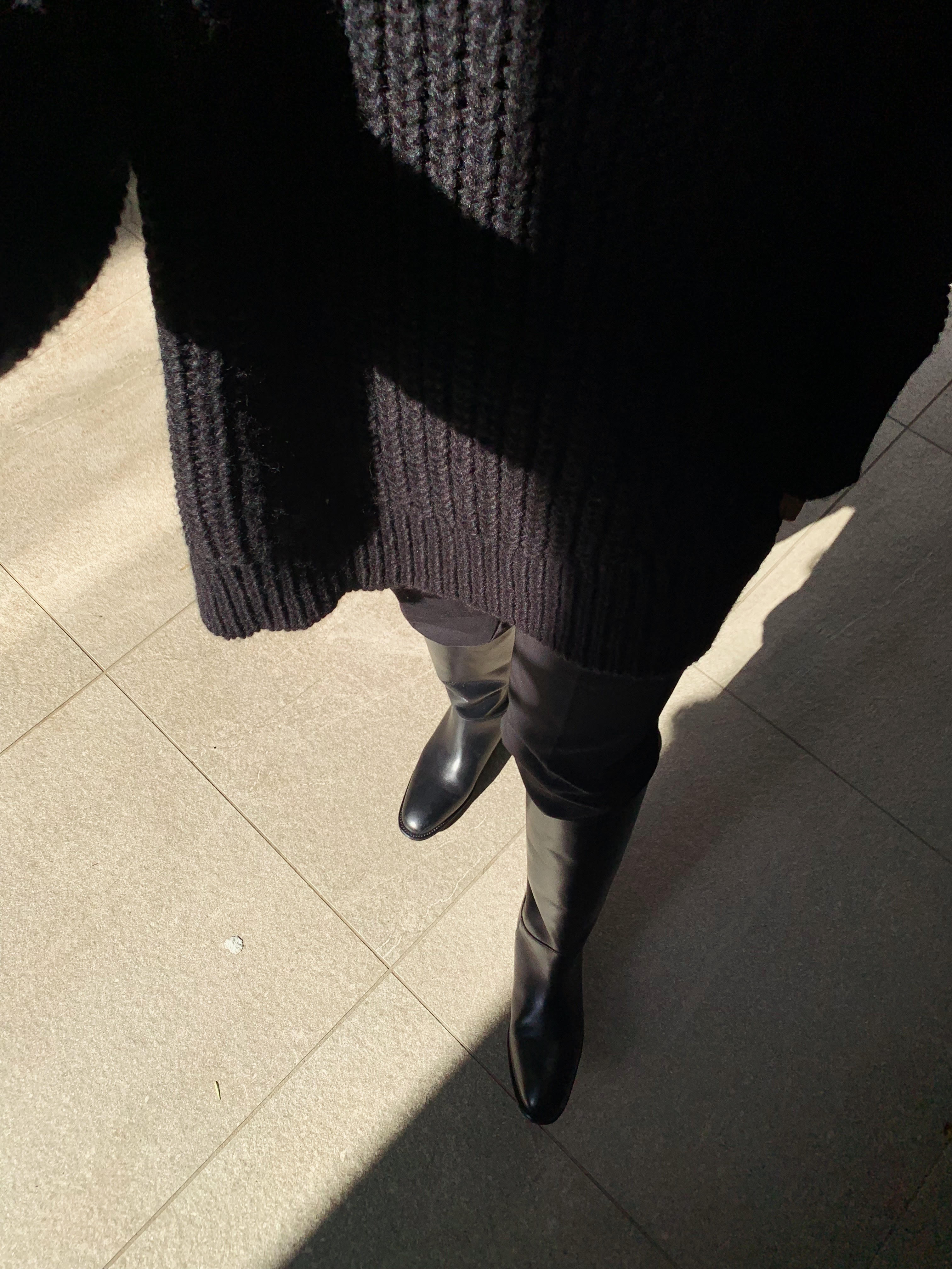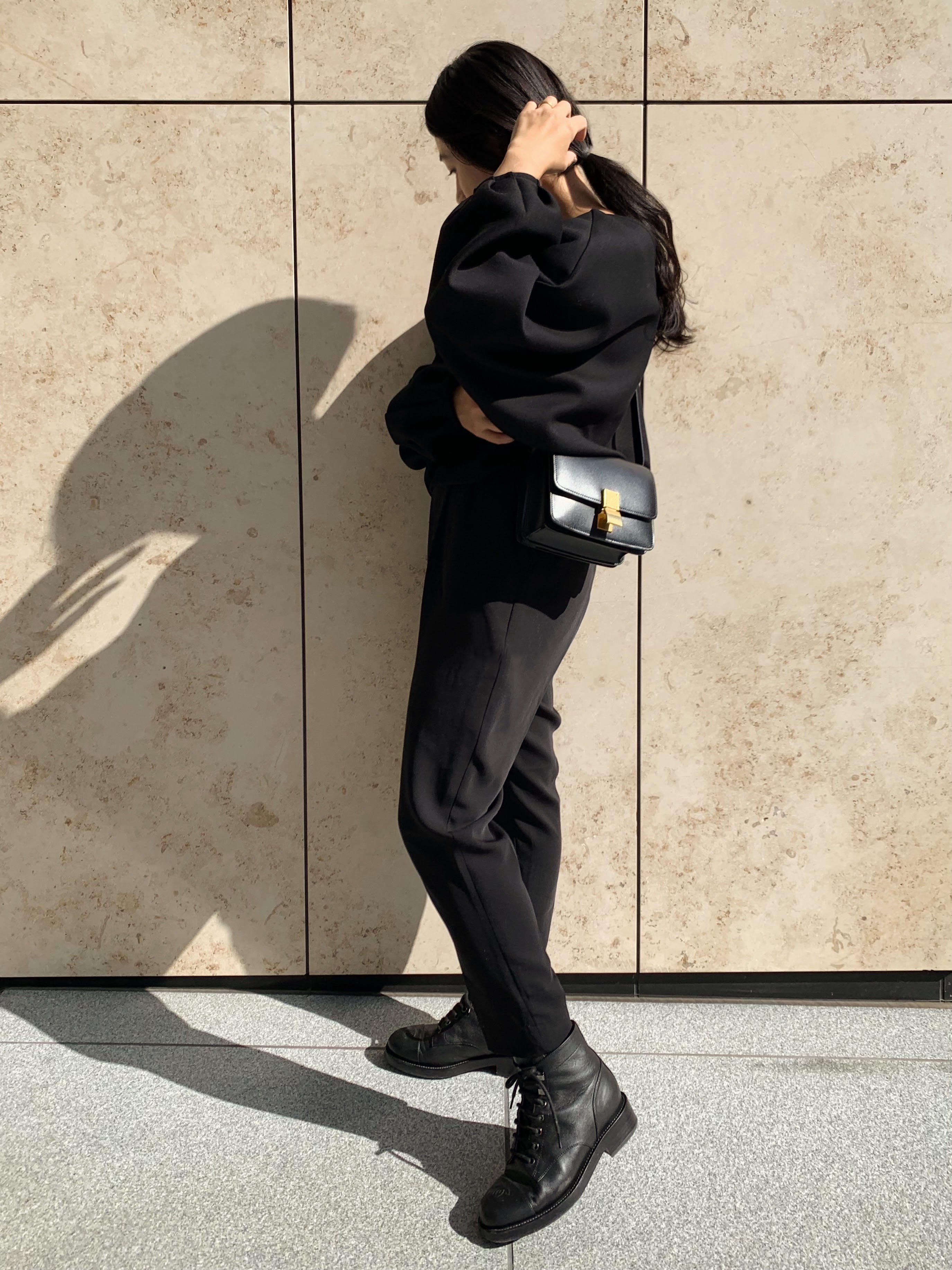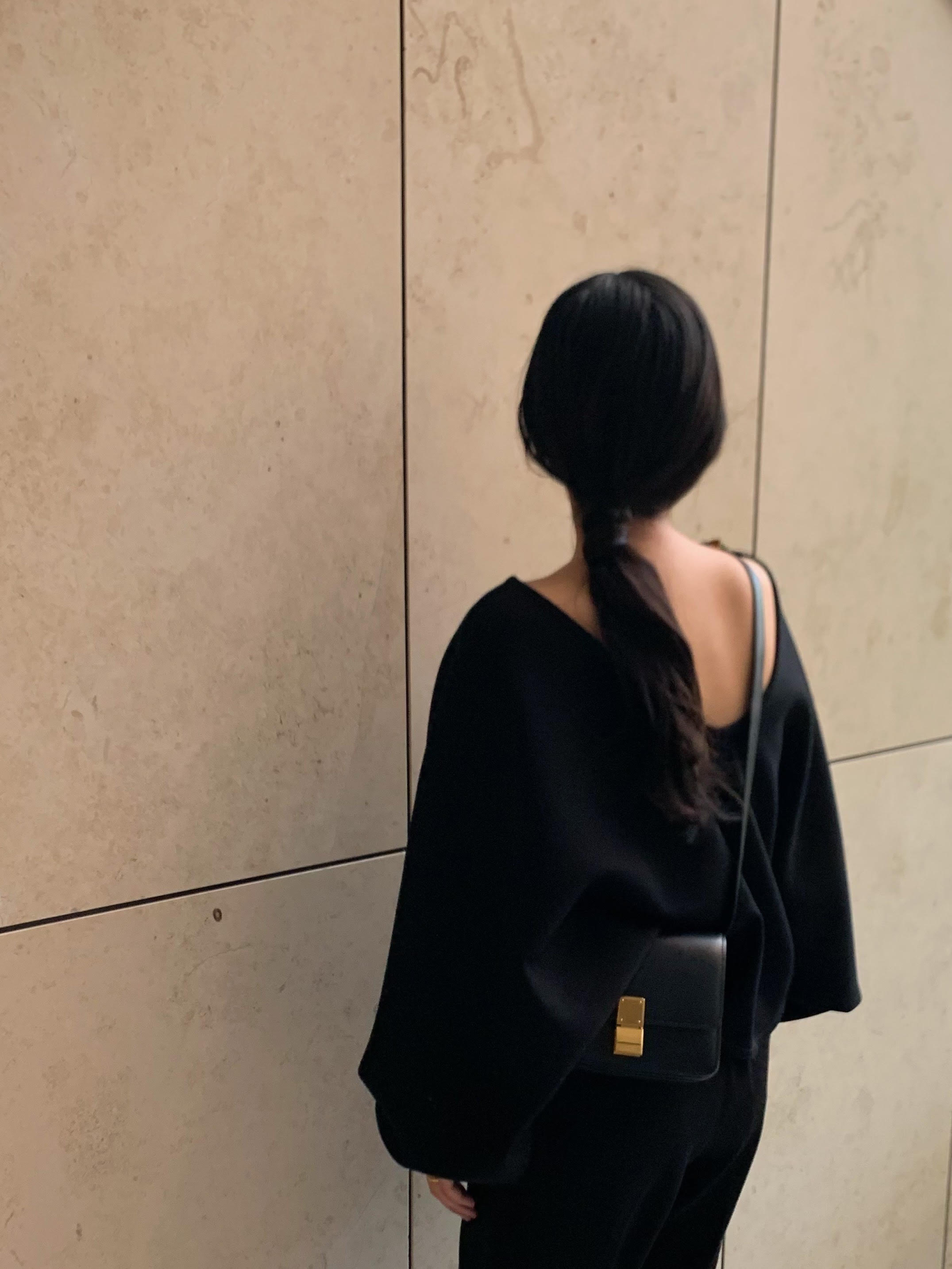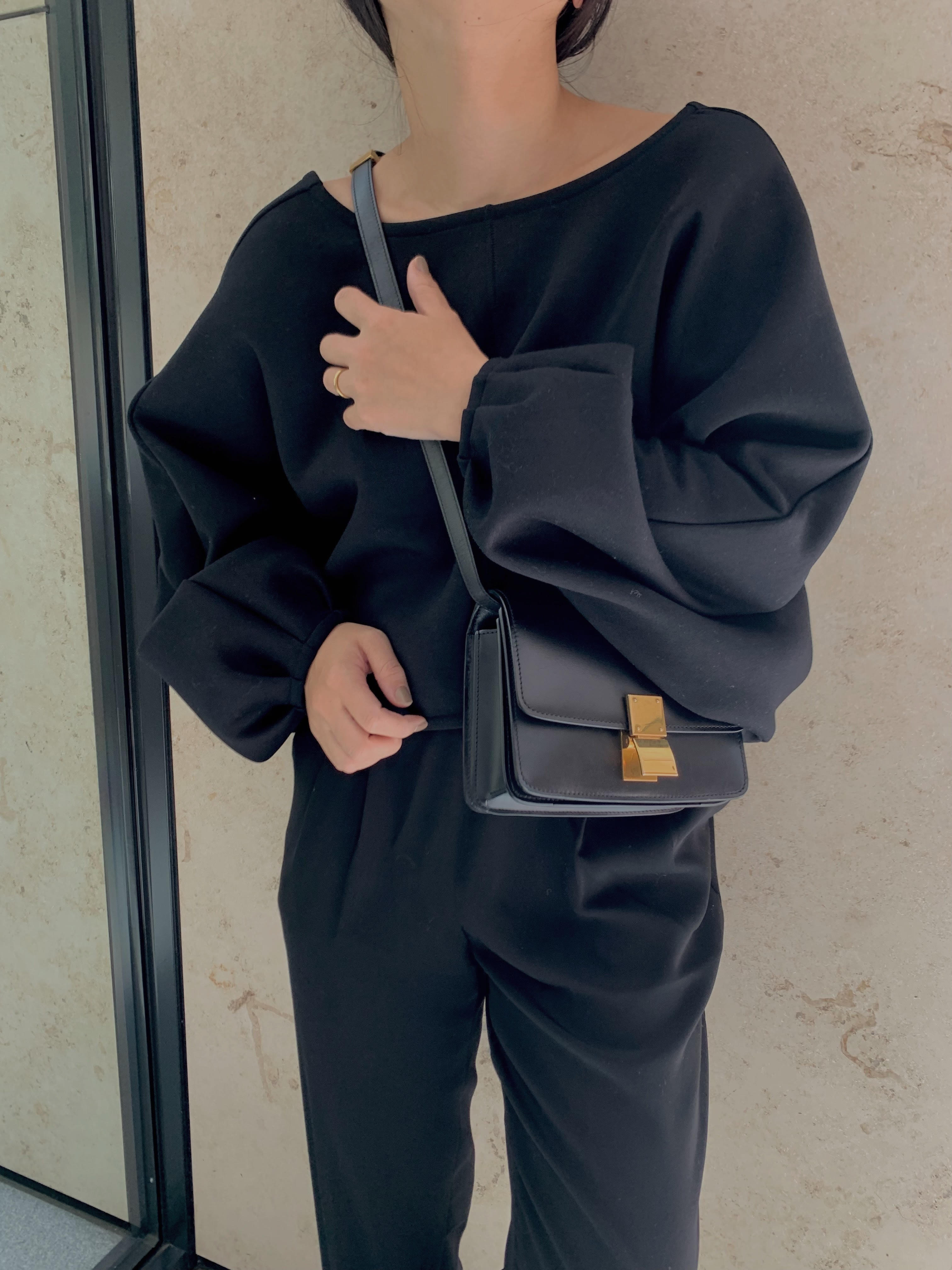 ラインが綺麗なので小物はカジュアルにしてクール感をプラス。