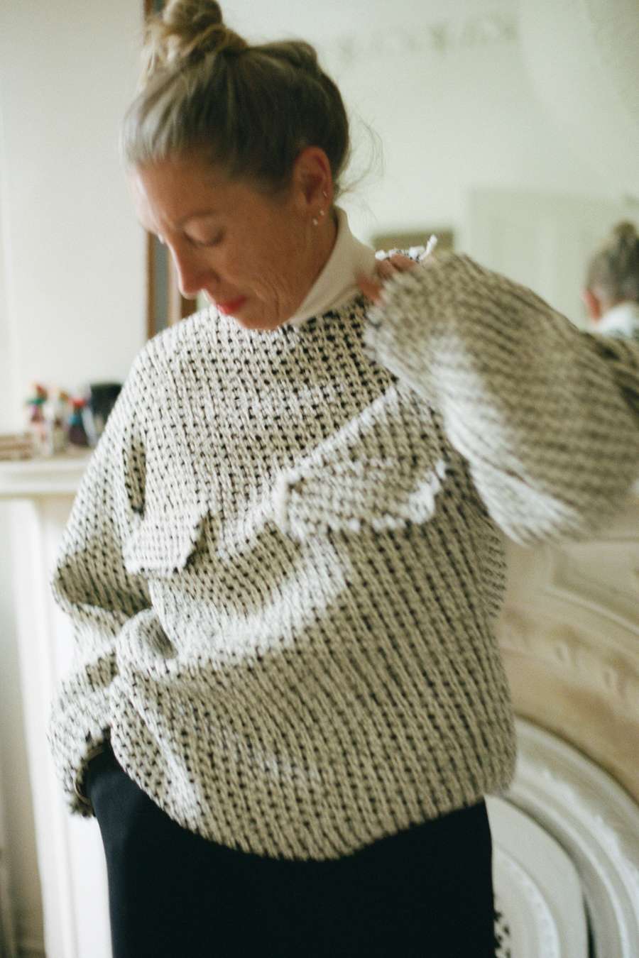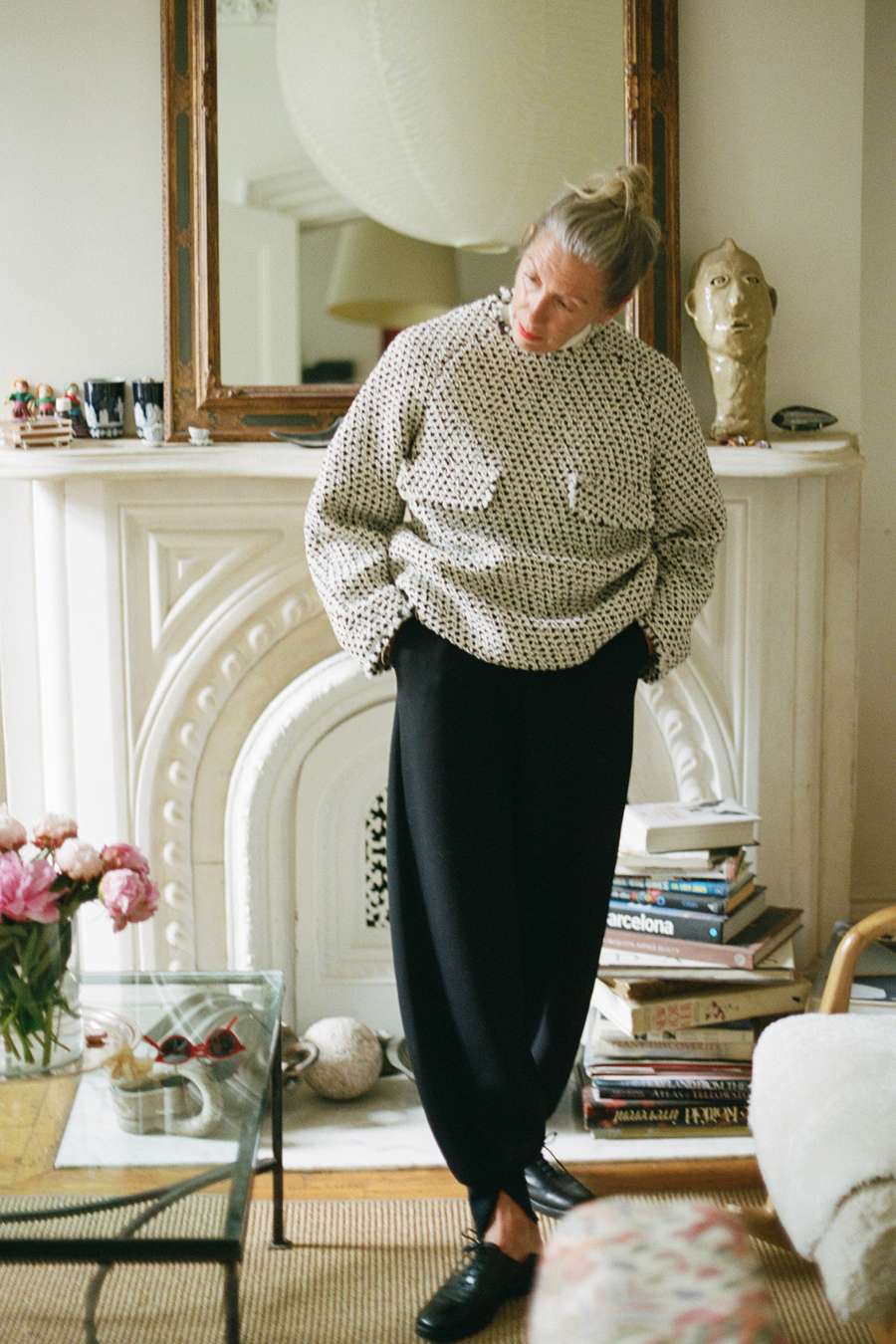 Featuring tweed fabrics, pearls, and wide silhouettes,