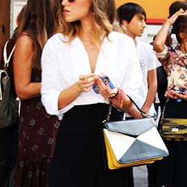 涼やかな夏の装いから、秋モードへシフトしていく時期に意識したいのは「色」。秋に入っても、まだ暑い日が続くから、季節を橋渡しするようなカラーチョイスを心がけたいところ。さわやか色とあでやか色の両方を使いこなすカラーバリエーションが装いの大人感を濃くします。グローバルな着こなし上手たちの街角スナップを参考にしながら、ブルー、レッド、ピンクの新色が出そろい始めた「ガリャルダガランテ」のアイテムを上手にまとうコーディネート術を押さえていきましょう。