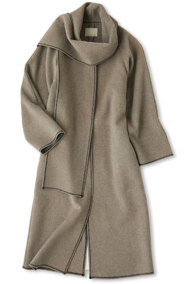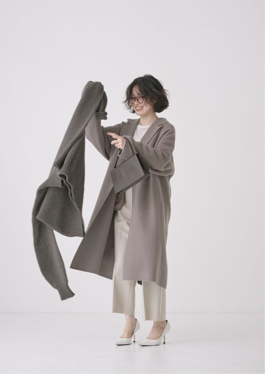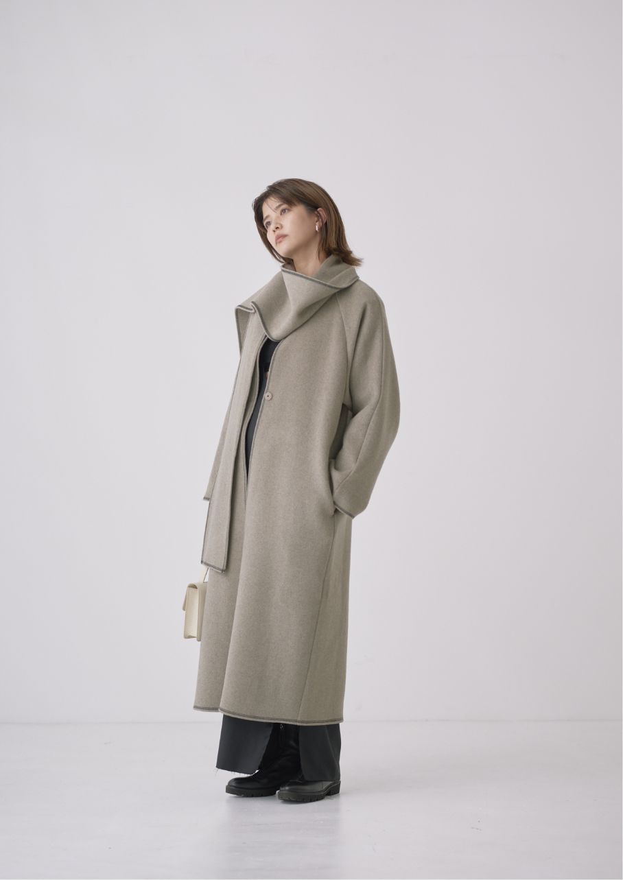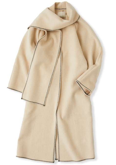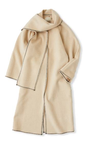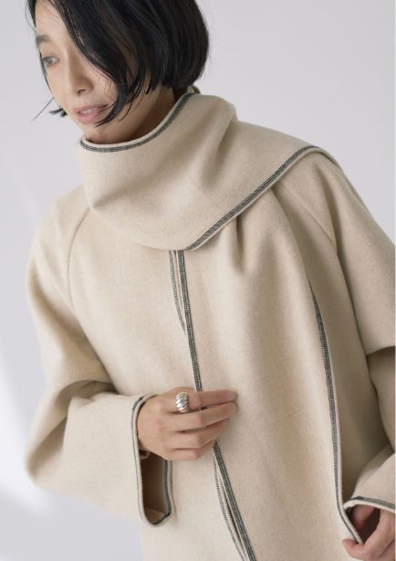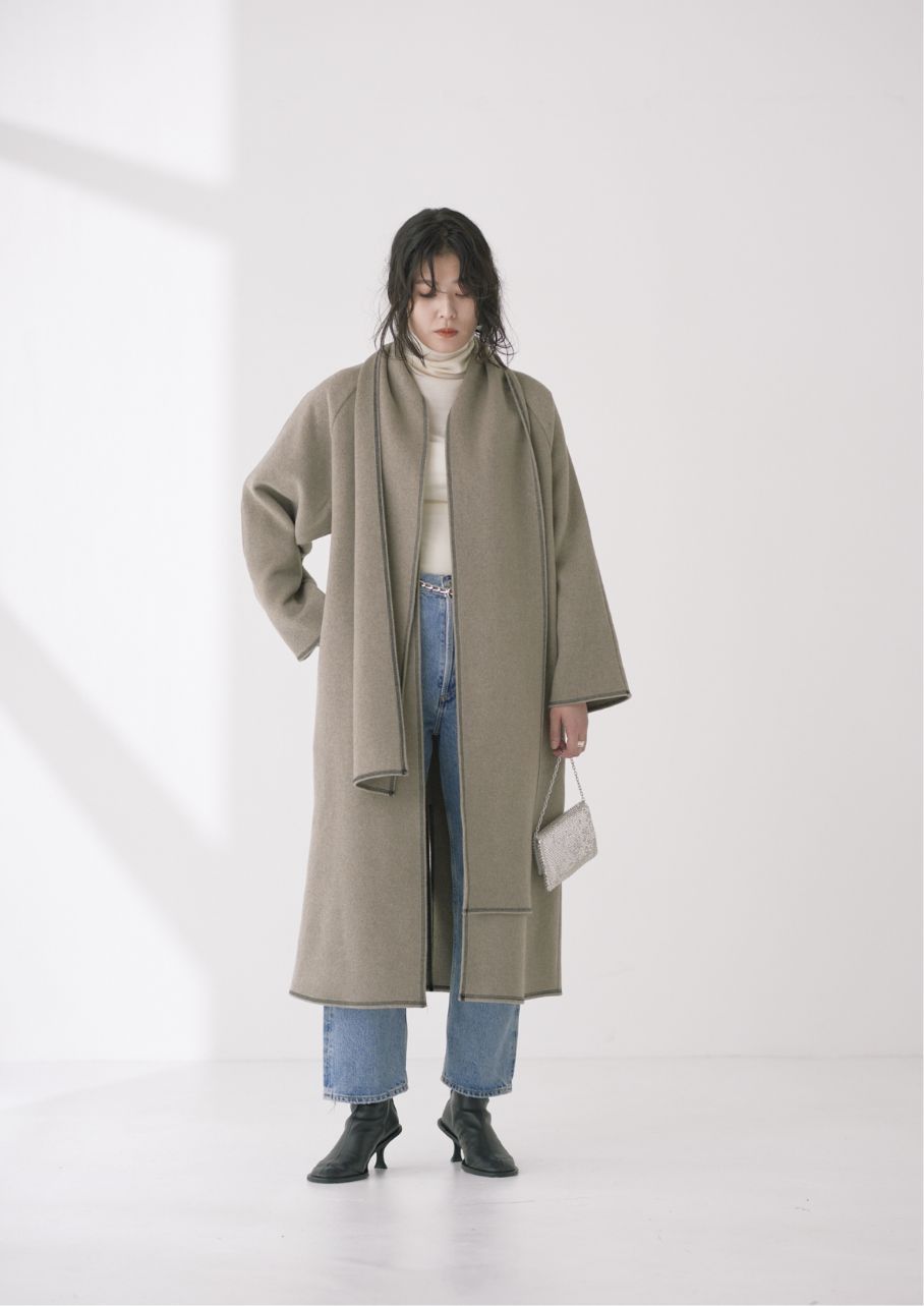 ストールにもなる襟のデザインとステッチが絶妙な抜け感をプラスしてくれます。