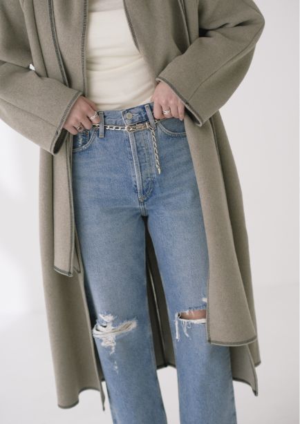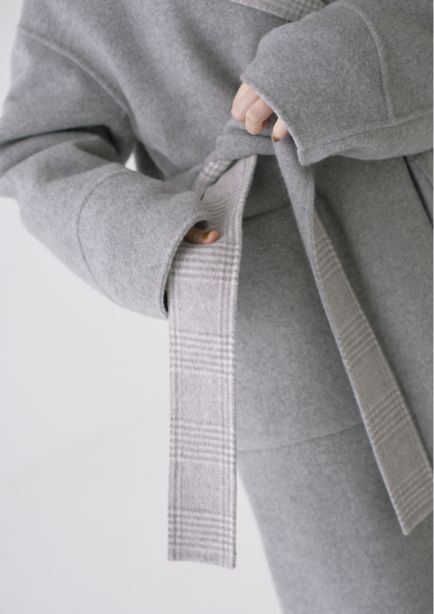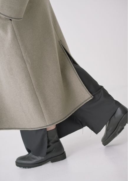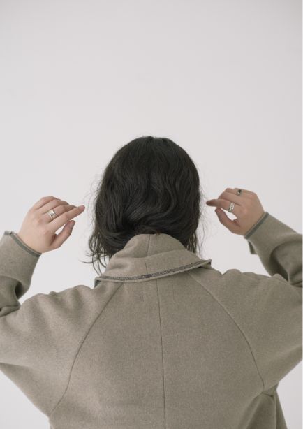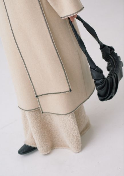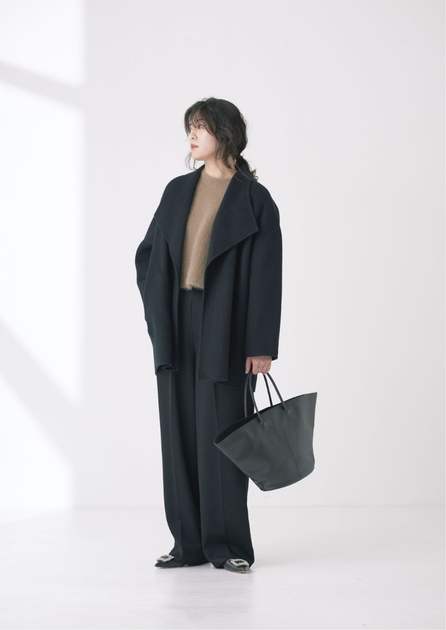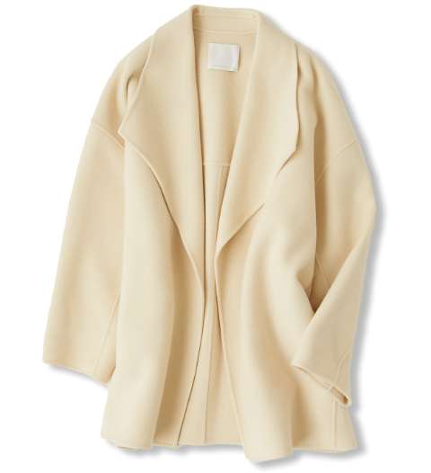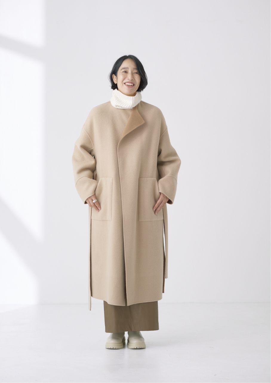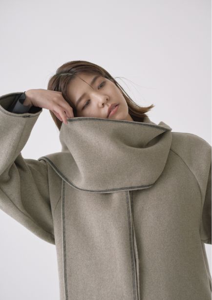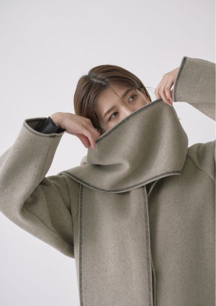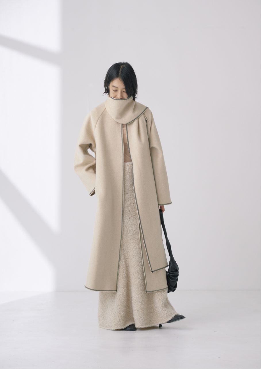 ストールにもなる襟のデザインとステッチが絶妙な抜け感をプラスしてくれます。