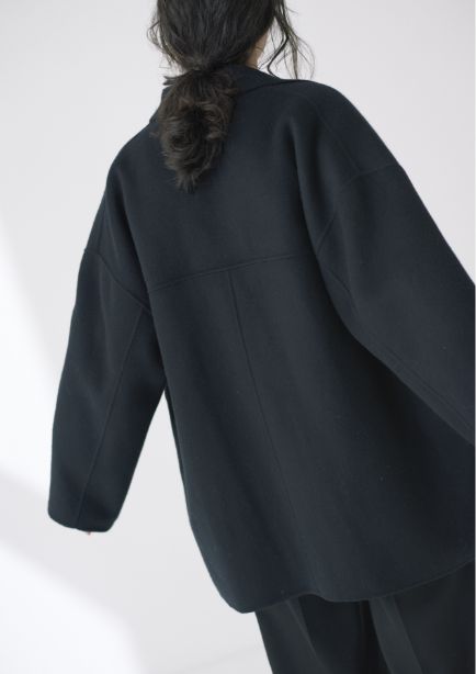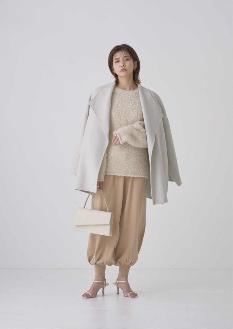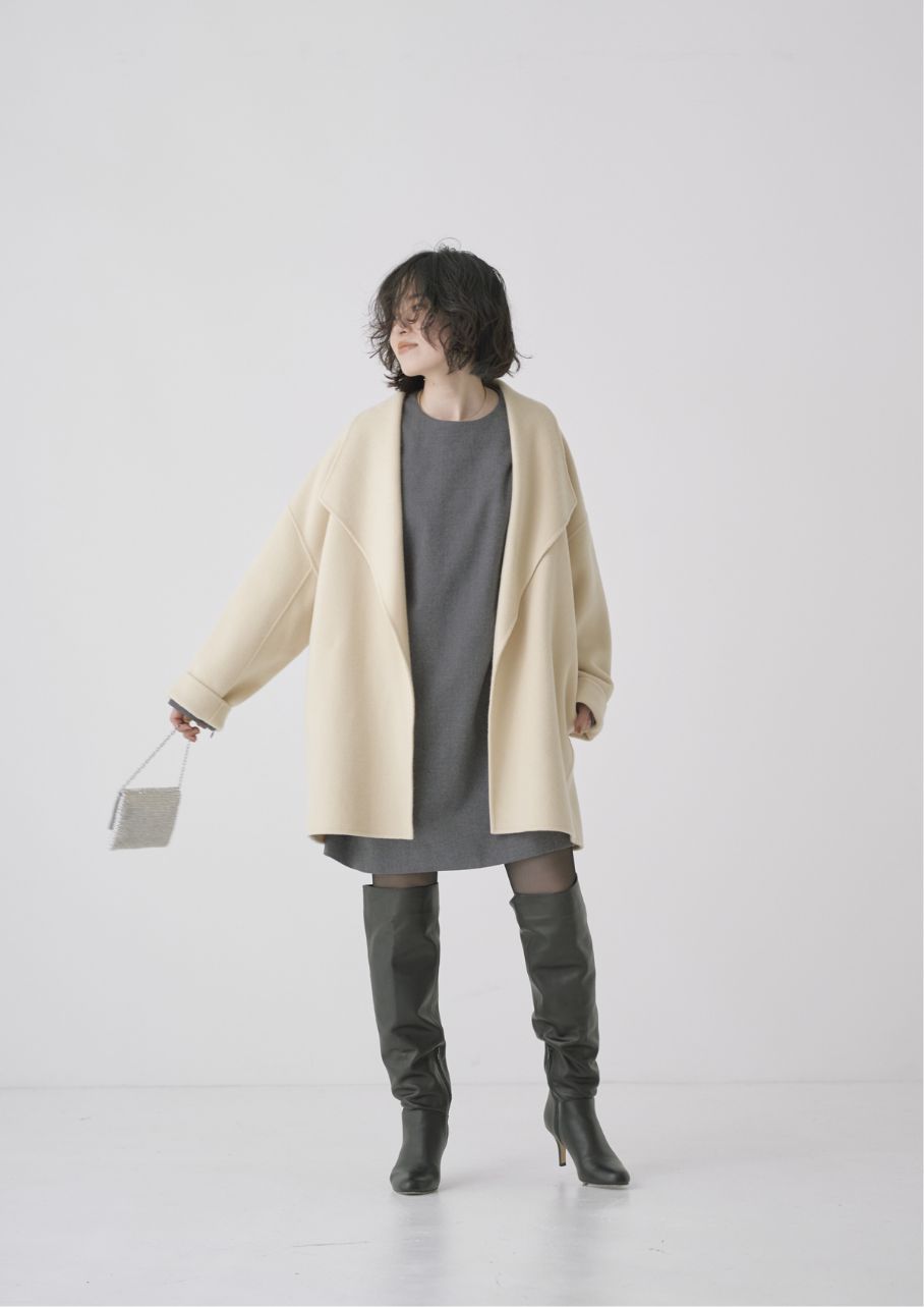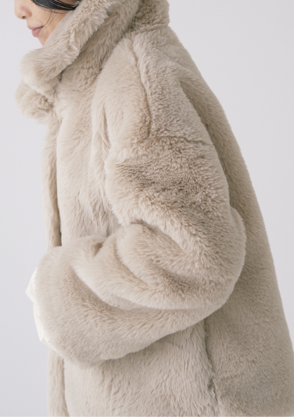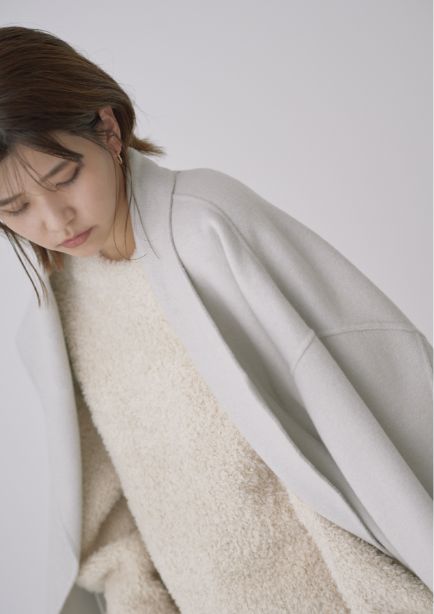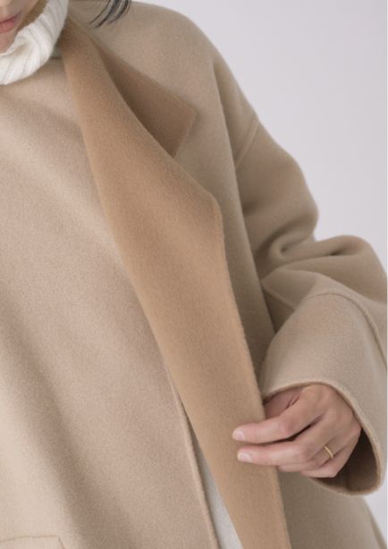 希少な細糸を使用した生地に両面ビーバー加工を施し、しなやかで柔らかなタッチのリバーショートコート。