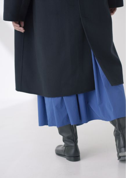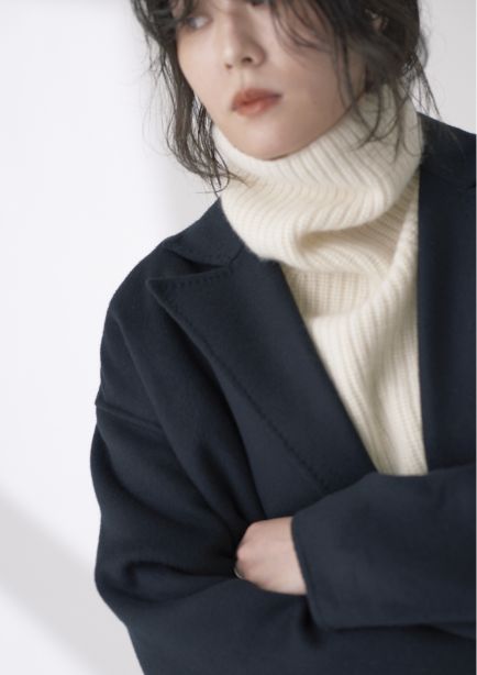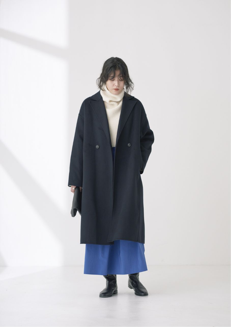 しなやかな落ち感とソフトなタッチがウールライクな"GALLARDAGALANTE NAVY"のコート。